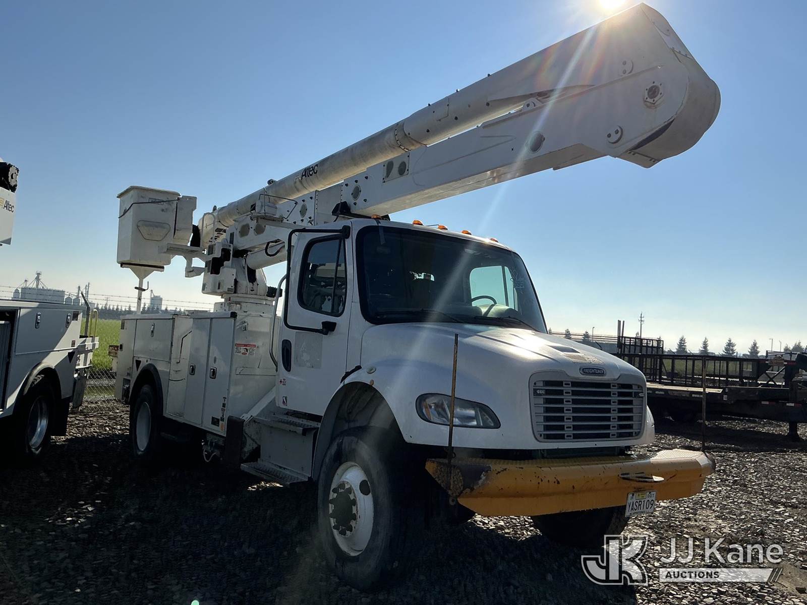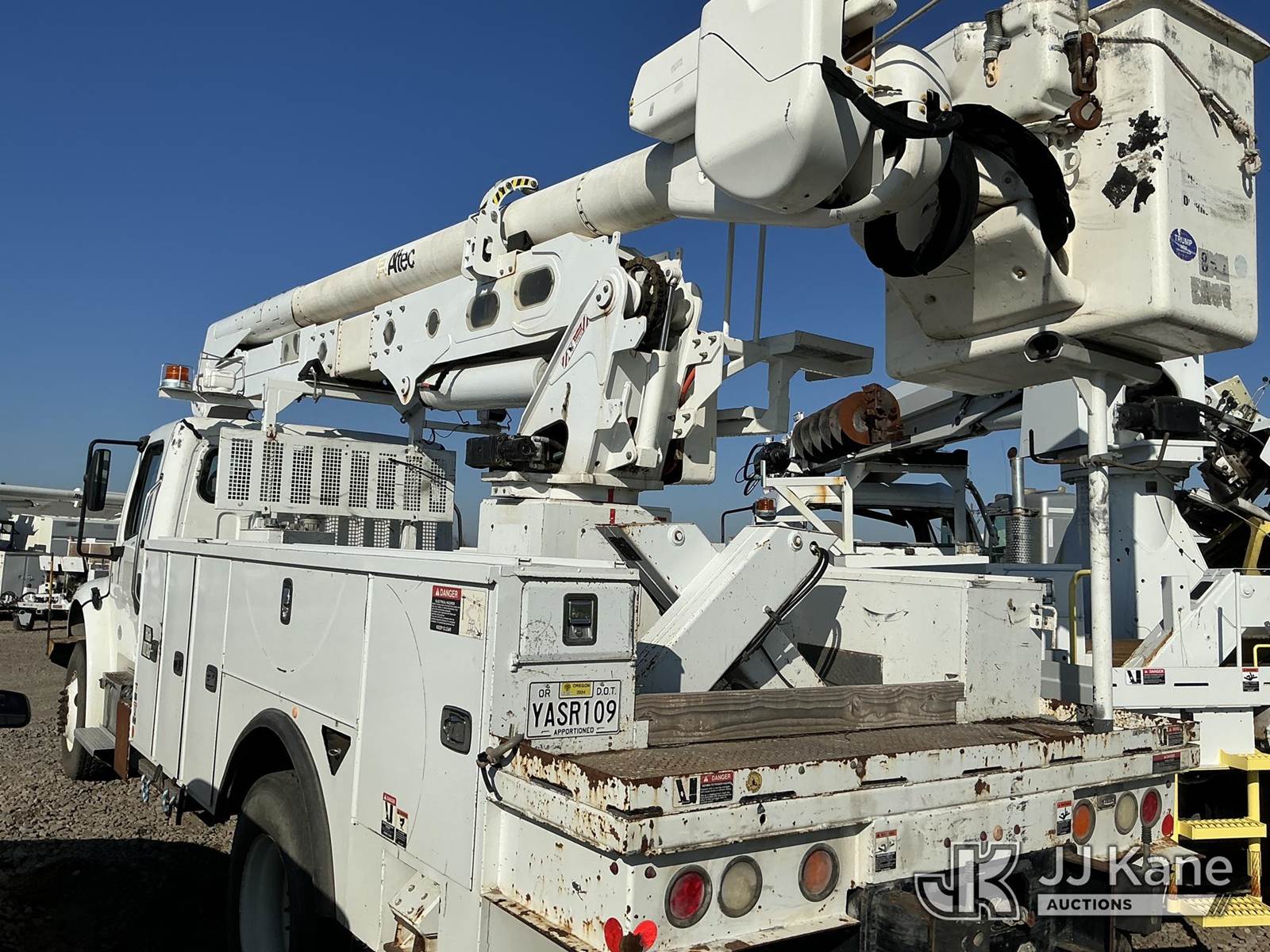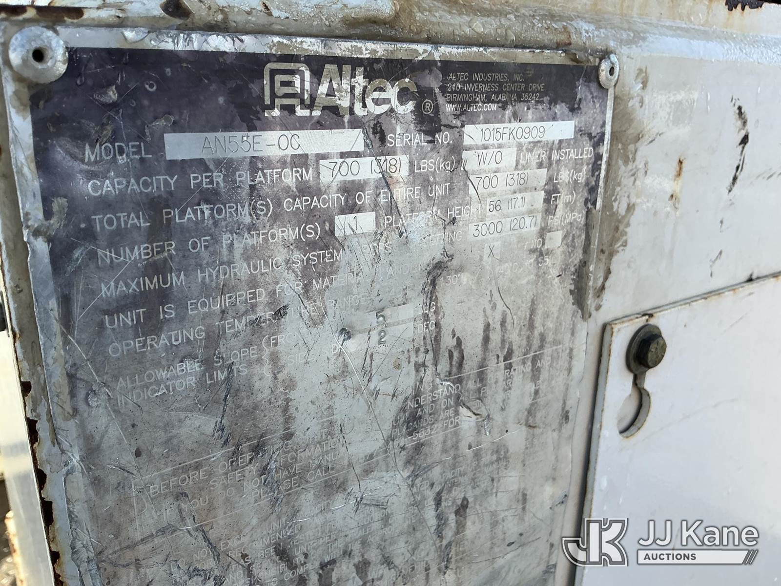 Altec AN55-OC, 60 ft, Material Handling Bucket Truck s/n 1015FK0909, with single-man bucket, rear mounted on 2016 Freightliner M2 106 4x4 Utility Truck, Cummins ISB 6.7L Auto, diesel, A/C, (117,617 miles) Back Fenceline next to trailers (Non Running, Condition Unknown, Driveshaft Not Installed) This is a Titled Item NOTE: This unit is being sold AS IS/WHERE IS via Timed Auction and is located in Dixon, CA. Inspection & preview days for this unit are the 2 business days prior to the first day of items closing for this auction, item is located at 8668 Sparling Ln Dixon, CA 95620 and hours of operations are 8a-4p. For pre-sale questions, please contact JJ Kane Staff at (707) 678-8060 (dixon@jjkane.com). Dealer License Number 45696. (Manuals provided in cab) (Buyer is responsible for removal. Assistance by consignor or JJ Kane Auctions is not assured.)