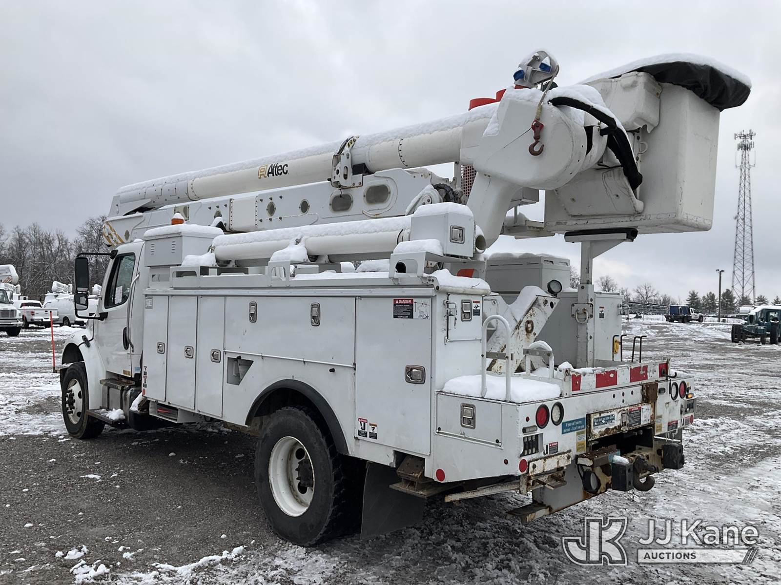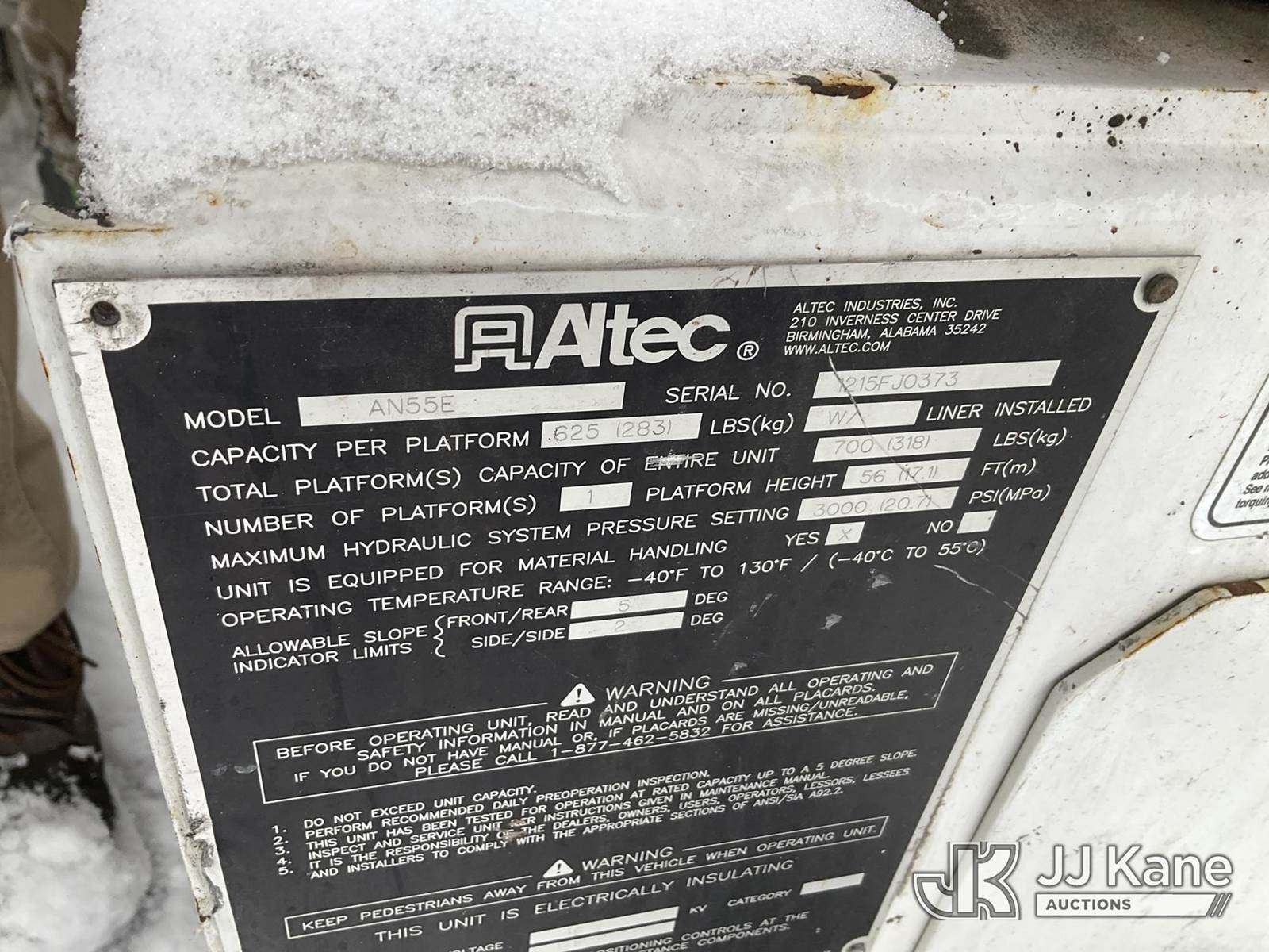 Altec AN55E, 60 ft, Material Handling Bucket Truck s/n 1215FJ0373, with two-man bucket, four hyd. outriggers, rear mounted on 2016 Freightliner M2 106 Utility Truck, 6.7L L6 DIESEL Auto, 4X2, diesel, A/C, (20,495 miles) (Runs, Moves & Upper Operates) (Rust Damage) (Reads 12,319 hours) This is a Titled Item NOTE: This unit is being sold AS IS/WHERE IS via Timed Auction and is located in Verona, KY. Inspection & preview days for this unit are the 2 business days prior to the first day of items closing for this auction, item is located at 2841 Verona-Mudlick Rd Ste B Verona, KY 41092 and hours of operations are 8a-4p. For pre-sale questions, please contact Office Staff @ (502) 612-5080. Auctioneer Michael Whitebread / License # 256617. (Manuals provided in cab) (Buyer is responsible for removal. Assistance by consignor or JJ Kane Auctioneers is not assured.)