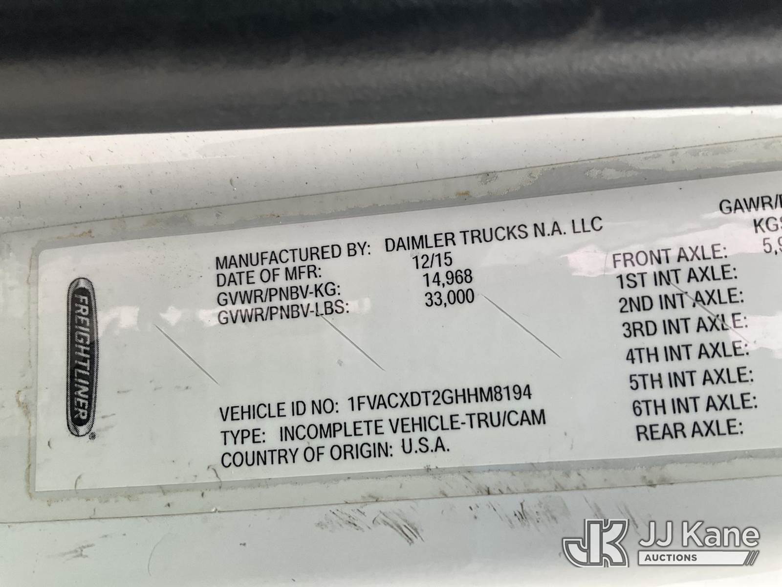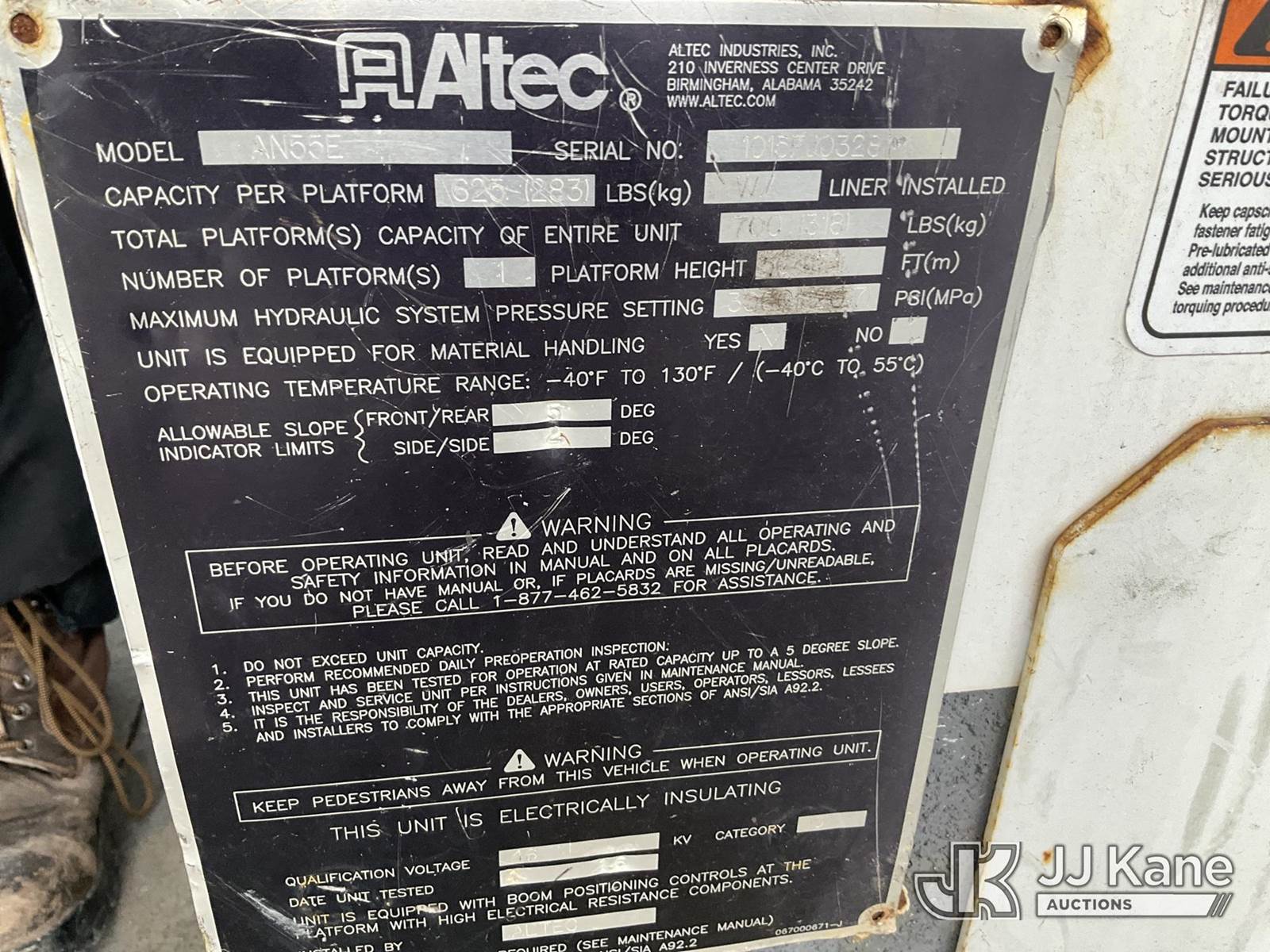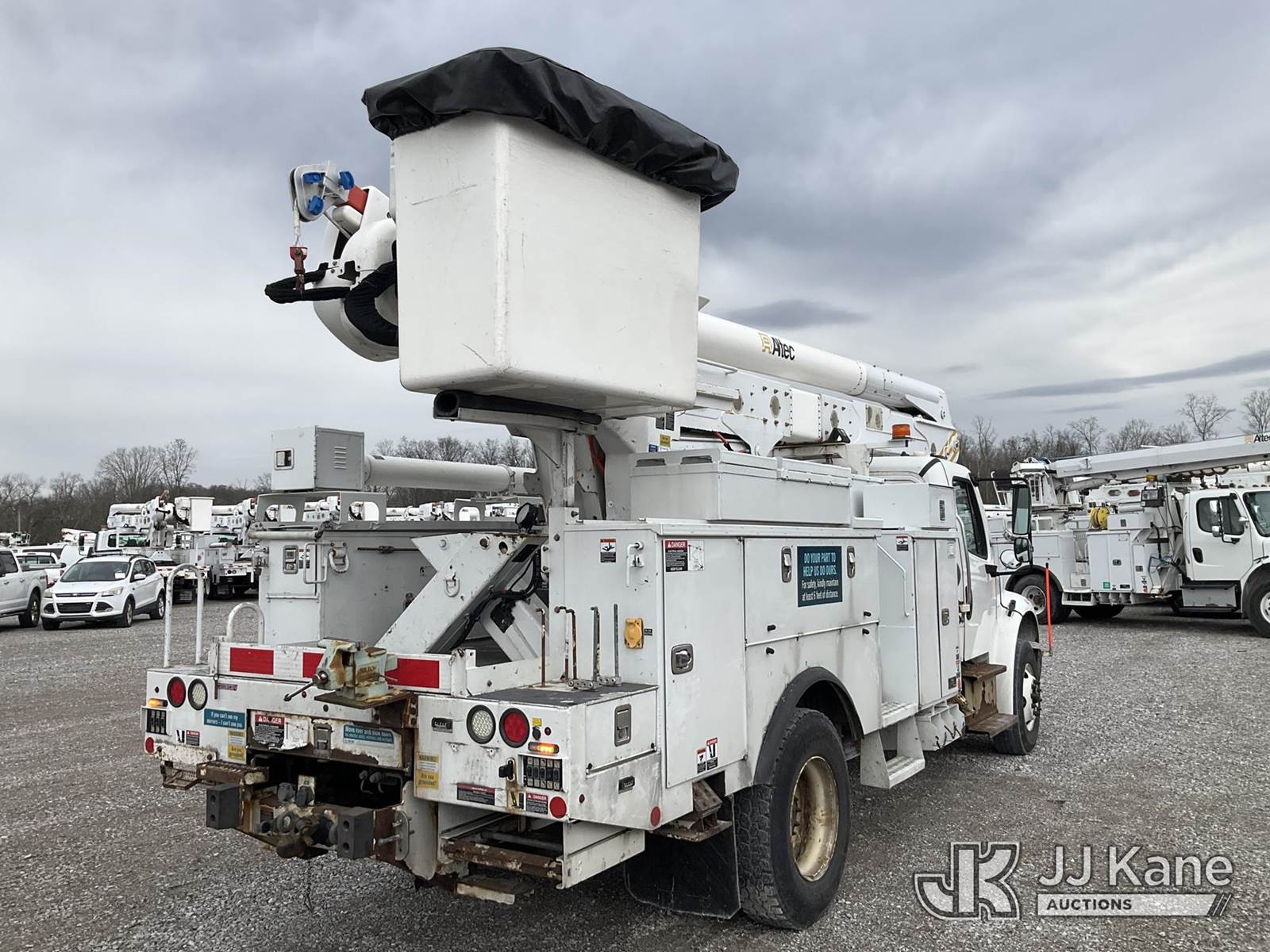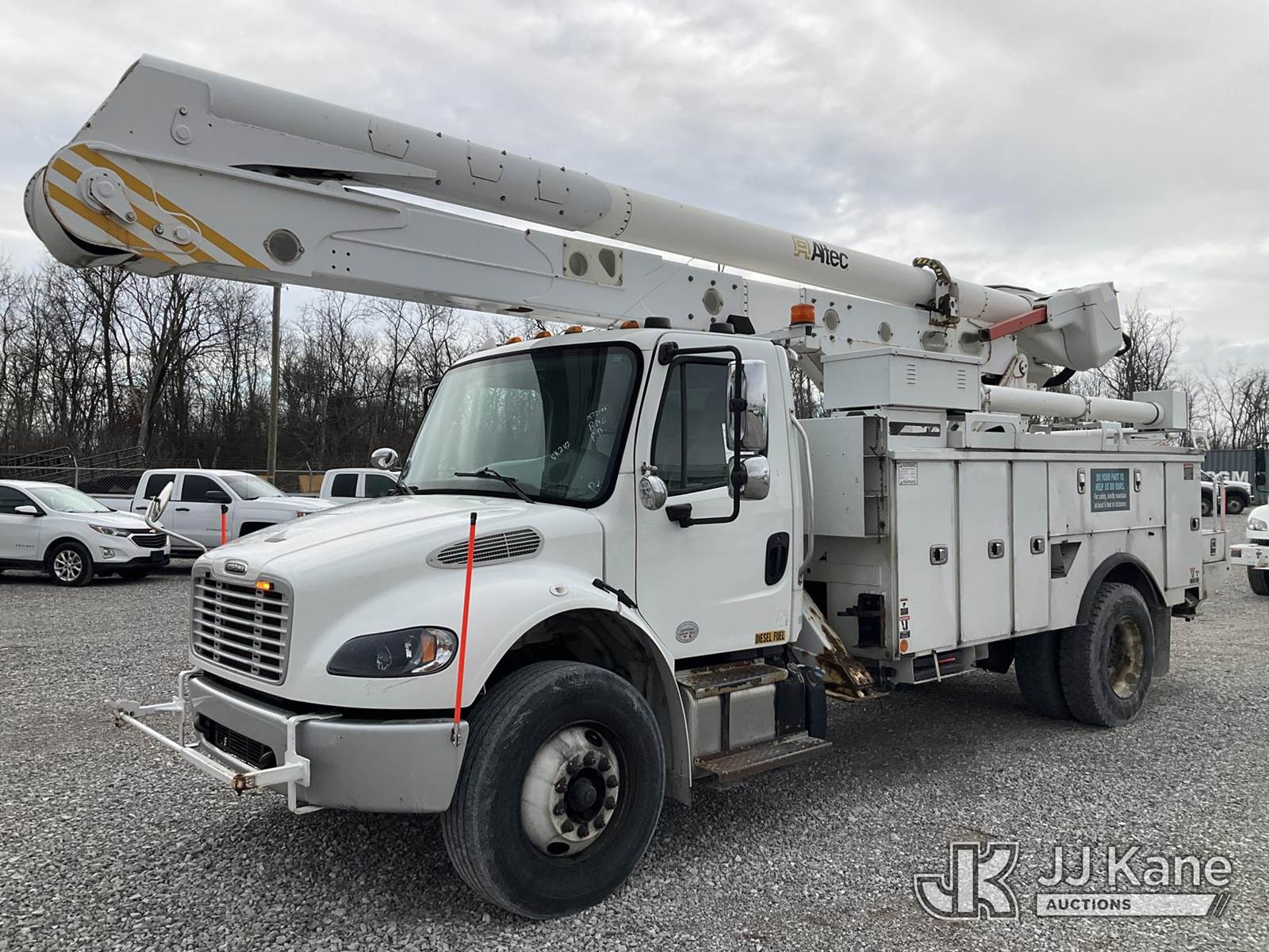 Altec AN55E, 60 ft, Material Handling Bucket Truck s/n 1015FJ0328, with two-man bucket & 4 hyd outriggers, rear mounted on 2016 Freightliner M2 106 Utility Truck, 6.7L L6 diesel, Auto, 4X2, A/C, (164,839 miles) (Runs, Moves & Upper Operates) (Rust Damage) (Reads 10,906 hours) This is a Titled Item NOTE: This unit is being sold AS IS/WHERE IS via Timed Auction and is located in Verona, KY. Inspection & preview days for this unit are the 2 business days prior to the first day of items closing for this auction, item is located at 2841 Verona-Mudlick Rd Ste B Verona, KY 41092 and hours of operations are 8a-4p. For pre-sale questions, please contact Office Staff @ (502) 612-5080. Auctioneer Michael Whitebread / License # 256617. (Manuals provided in cab) (Buyer is responsible for removal. Assistance by consignor or JJ Kane Auctions is not assured.)