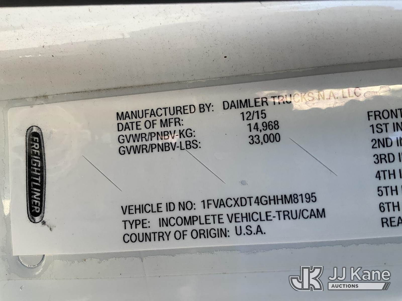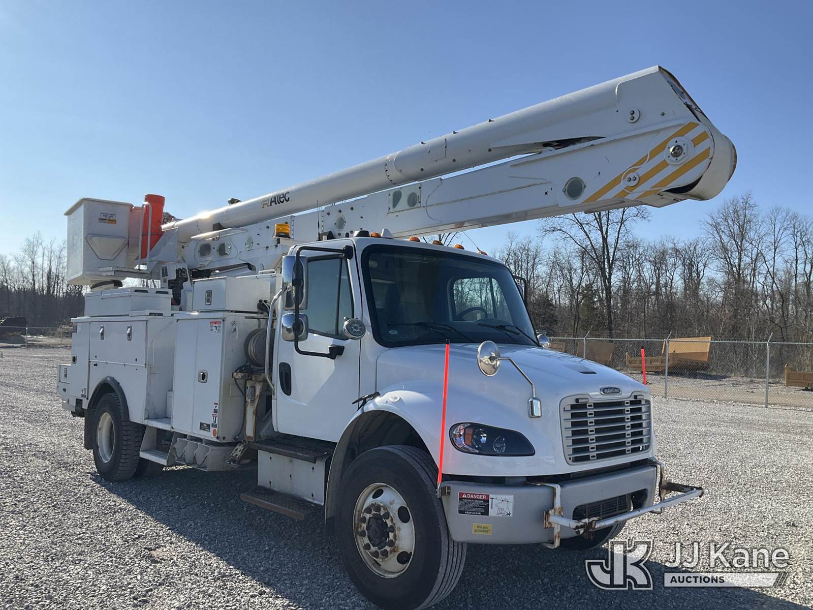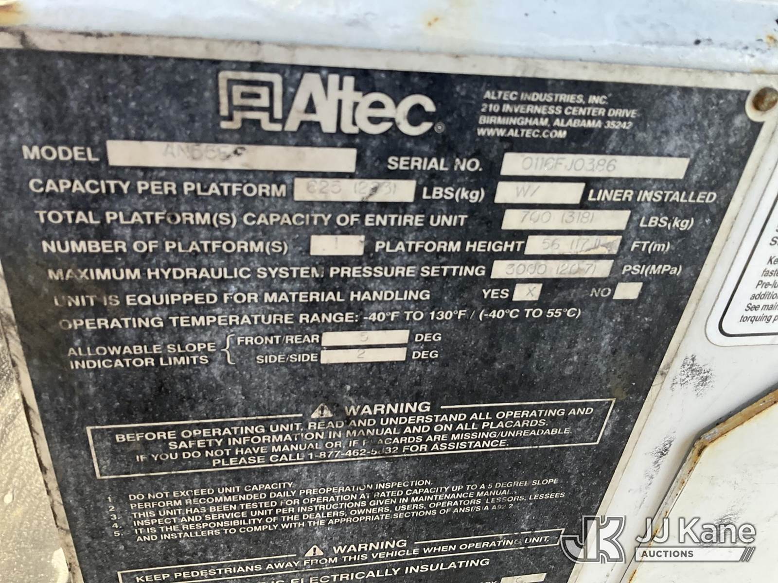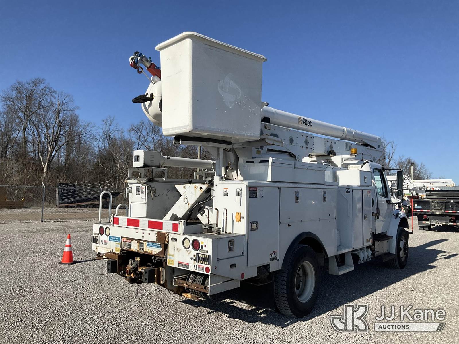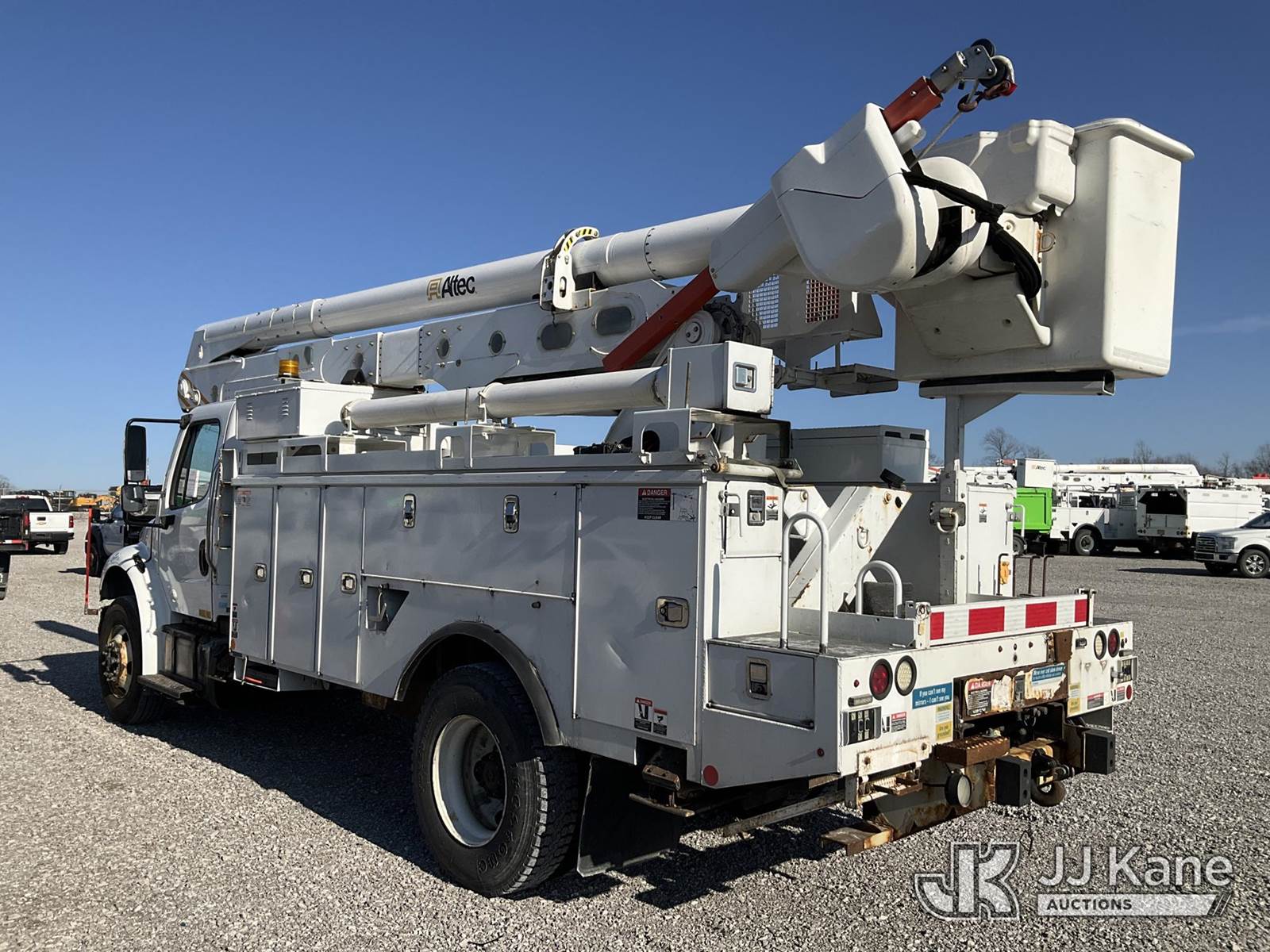 Altec AN55E, 61 ft, Material Handling Bucket Truck s/n 0116FJ0386, with two-man bucket, rear mounted on 2016 Freightliner M2 106 Utility Truck, 6.7L L6 diesel, Auto, 4X2, A/C, (134,969 miles) (Runs, Moves & Upper Operates) (Rust Damage) (Reads 13,748 hours) This is a Titled Item NOTE: This unit is being sold AS IS/WHERE IS via Timed Auction and is located in Verona, KY. Inspection & preview days for this unit are the 2 business days prior to the first day of items closing for this auction, item is located at 2841 Verona-Mudlick Rd Ste B Verona, KY 41092 and hours of operations are 8a-4p. For pre-sale questions, please contact Office Staff @ (502) 612-5080. Auctioneer Michael Whitebread / License # 256617. (Manuals provided in cab) (Buyer is responsible for removal. Assistance by consignor or JJ Kane Auctions is not assured.)