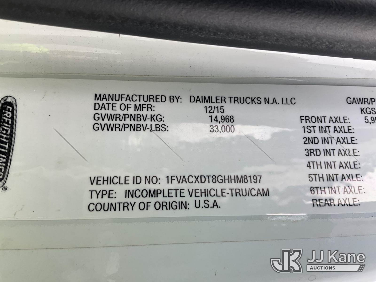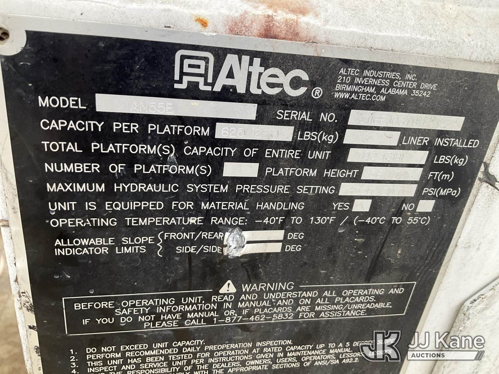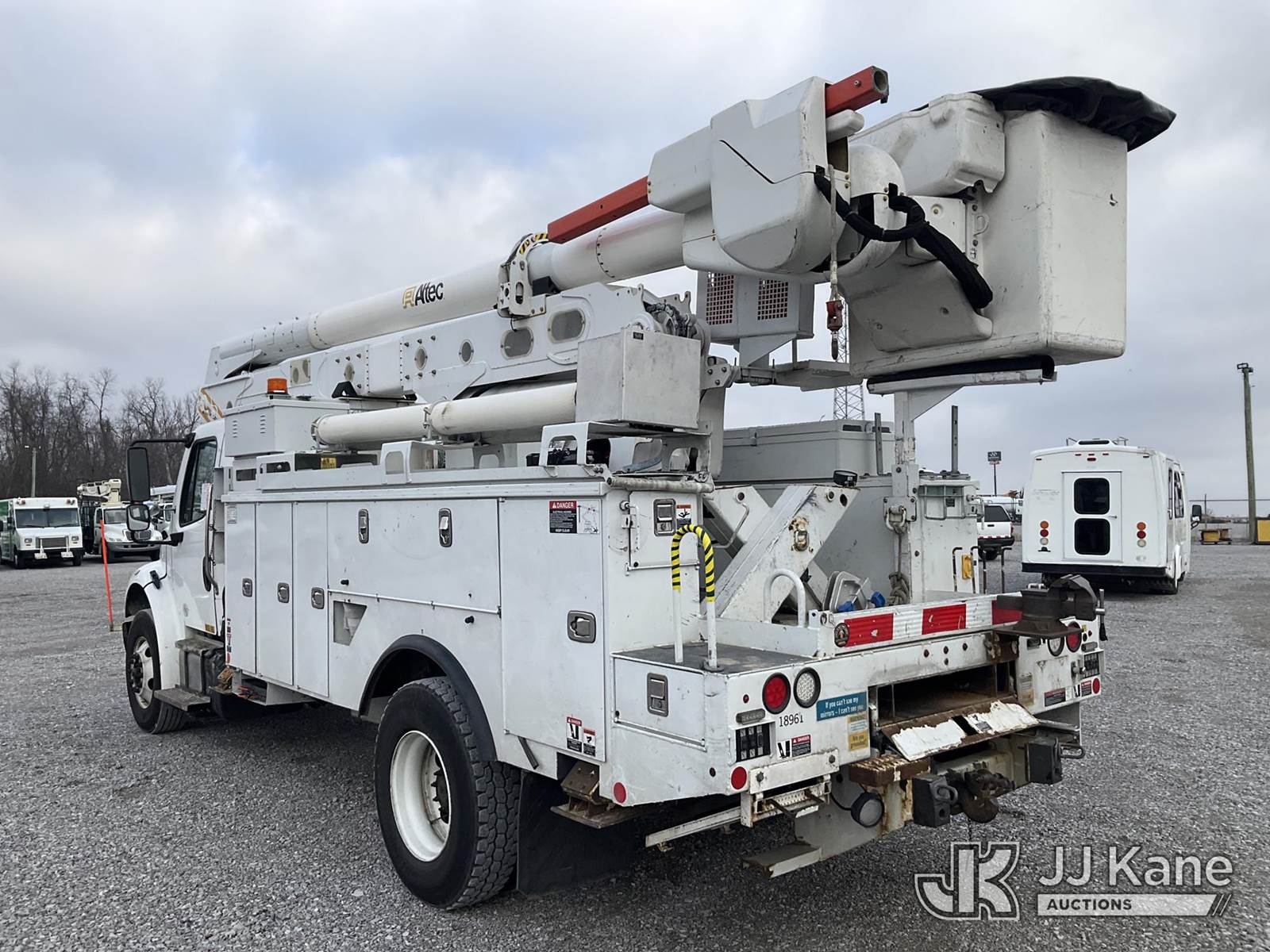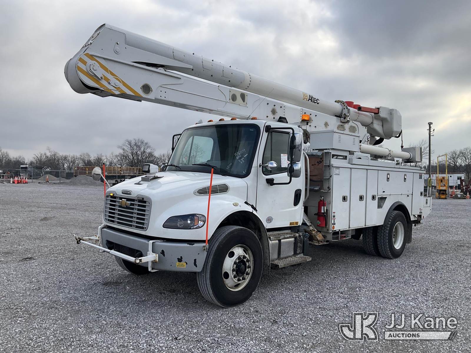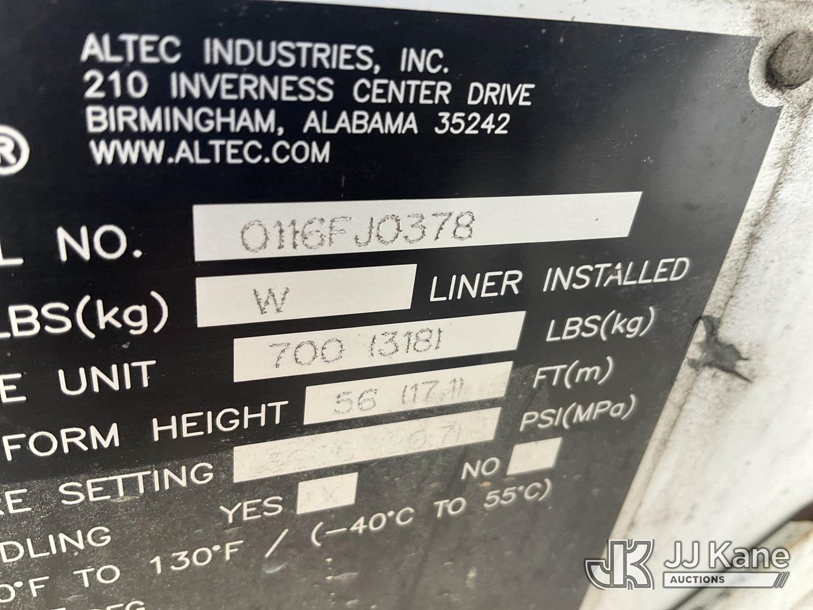 Altec AN55E, 61 ft, Material Handling Bucket Truck s/n 0116FJ0378, with two-man bucket & 4 hyd outriggers, rear mounted on 2016 Freightliner M2 106 Utility Truck, 6.7L L6 diesel, Auto, 4X2, A/C, (100,417 miles) (Runs, Moves & Upper Operates) (Check Engine Light On, Engine Noise, Rust Damage) (Reads 7,285 hours) This is a Titled Item NOTE: This unit is being sold AS IS/WHERE IS via Timed Auction and is located in Verona, KY. Inspection & preview days for this unit are the 2 business days prior to the first day of items closing for this auction, item is located at 2841 Verona-Mudlick Rd Ste B Verona, KY 41092 and hours of operations are 8a-4p. For pre-sale questions, please contact Office Staff @ (502) 612-5080. Auctioneer Michael Whitebread / License # 256617. (Manuals provided in cab) (Buyer is responsible for removal. Assistance by consignor or JJ Kane Auctions is not assured.)