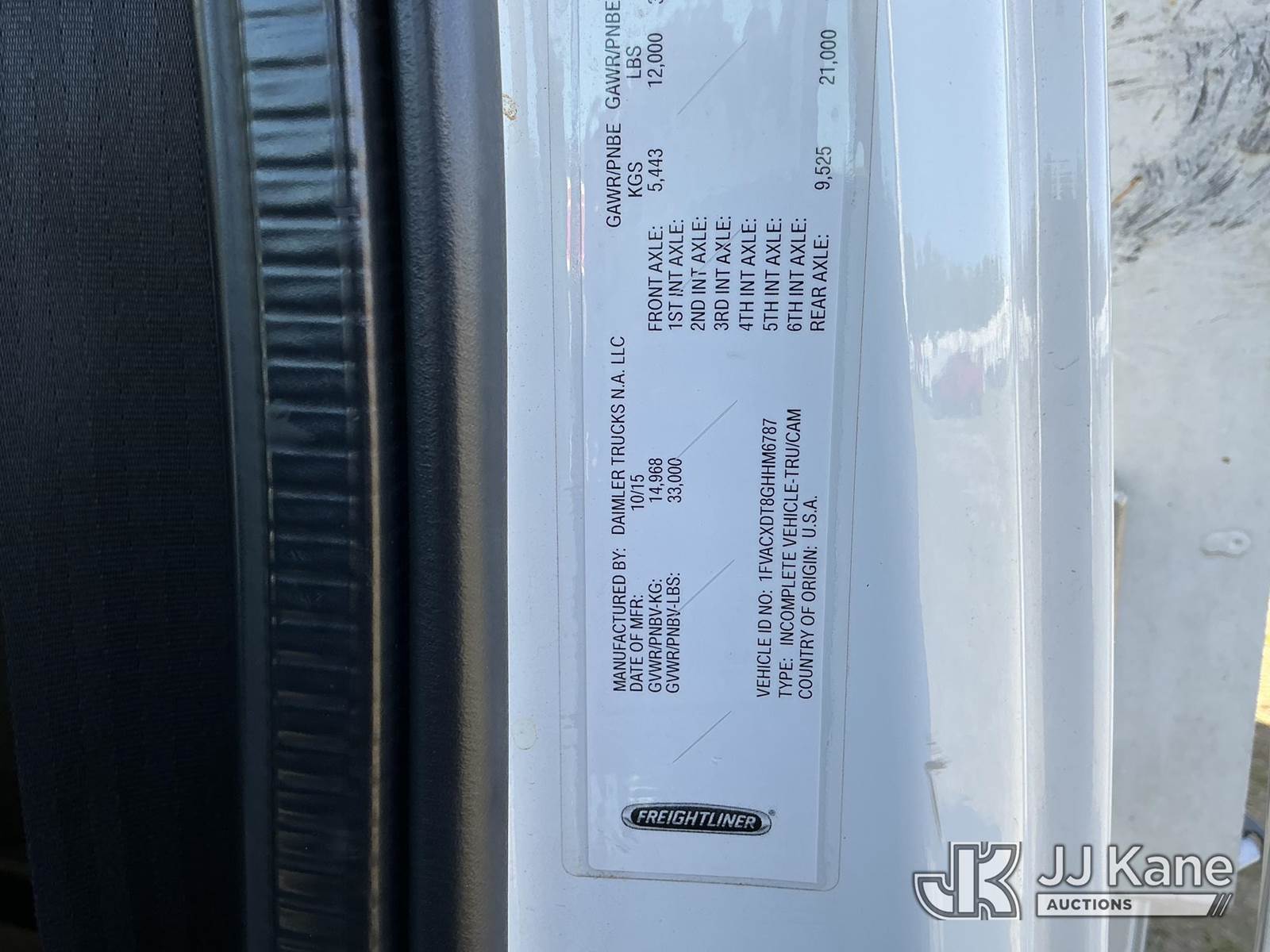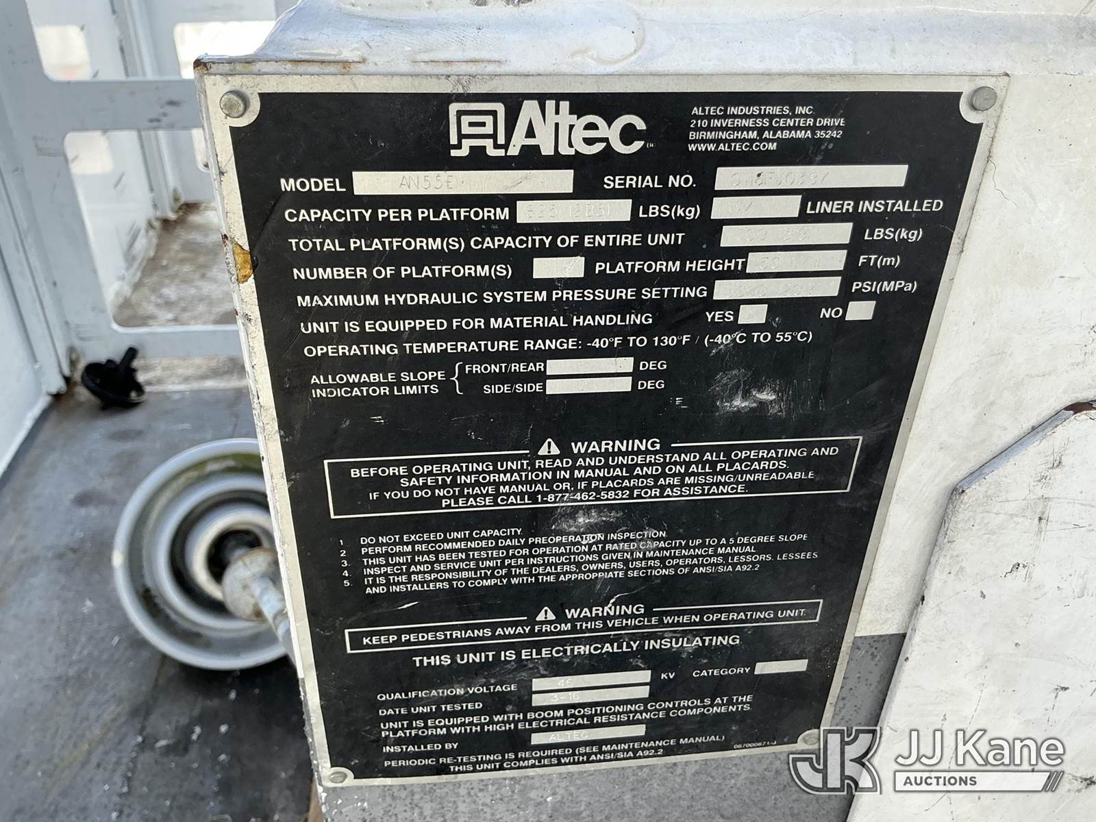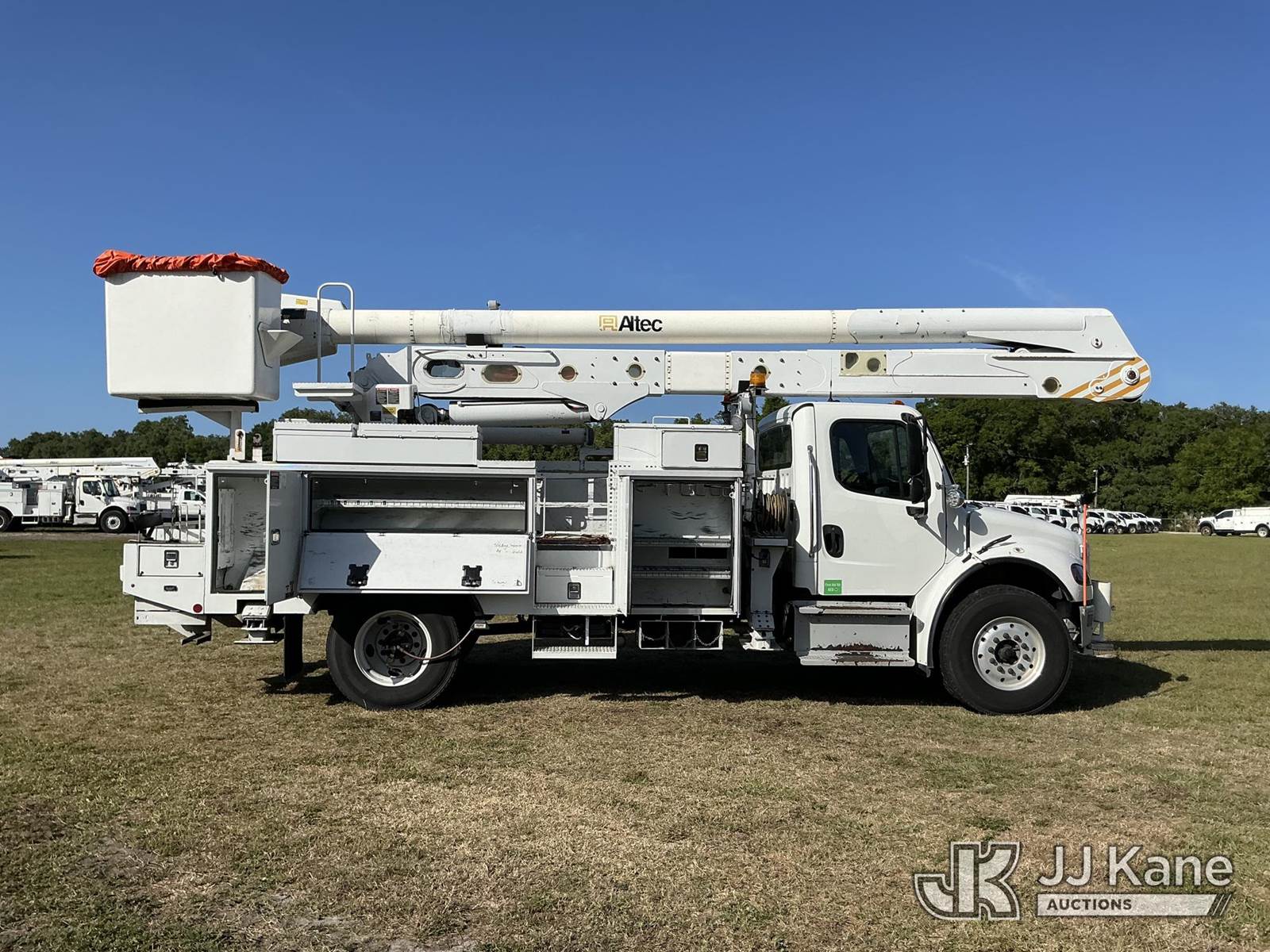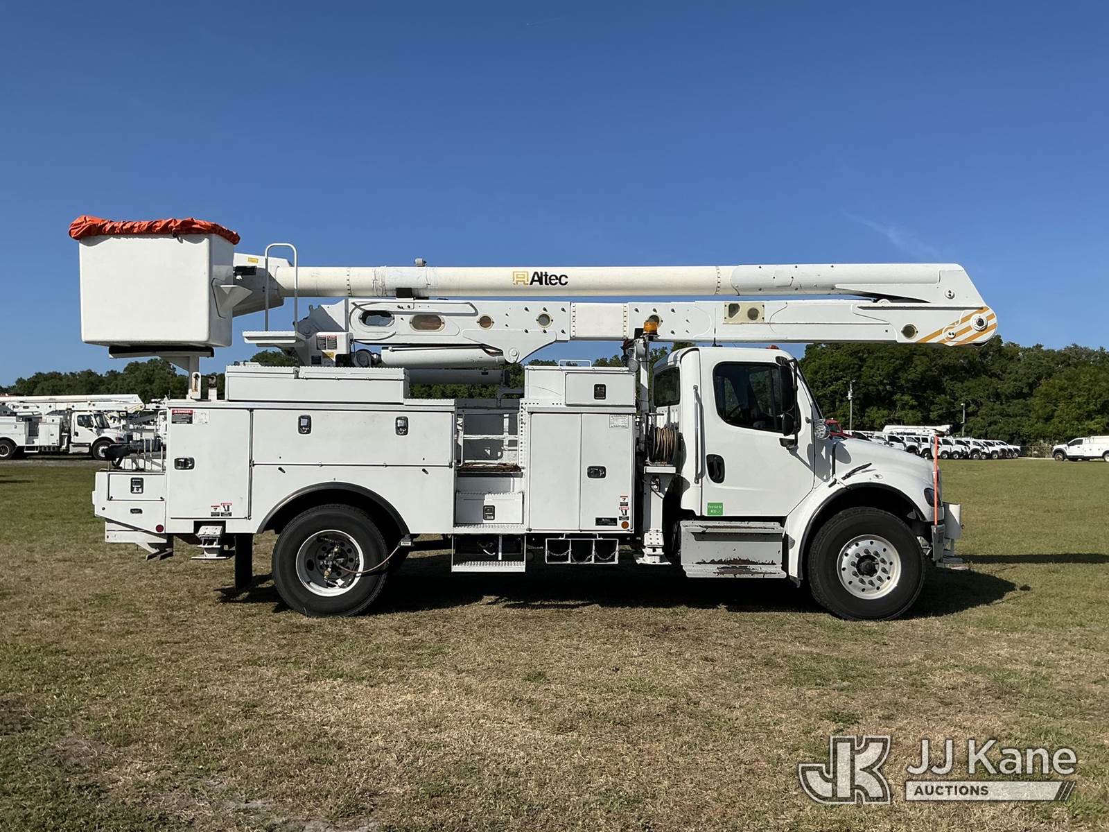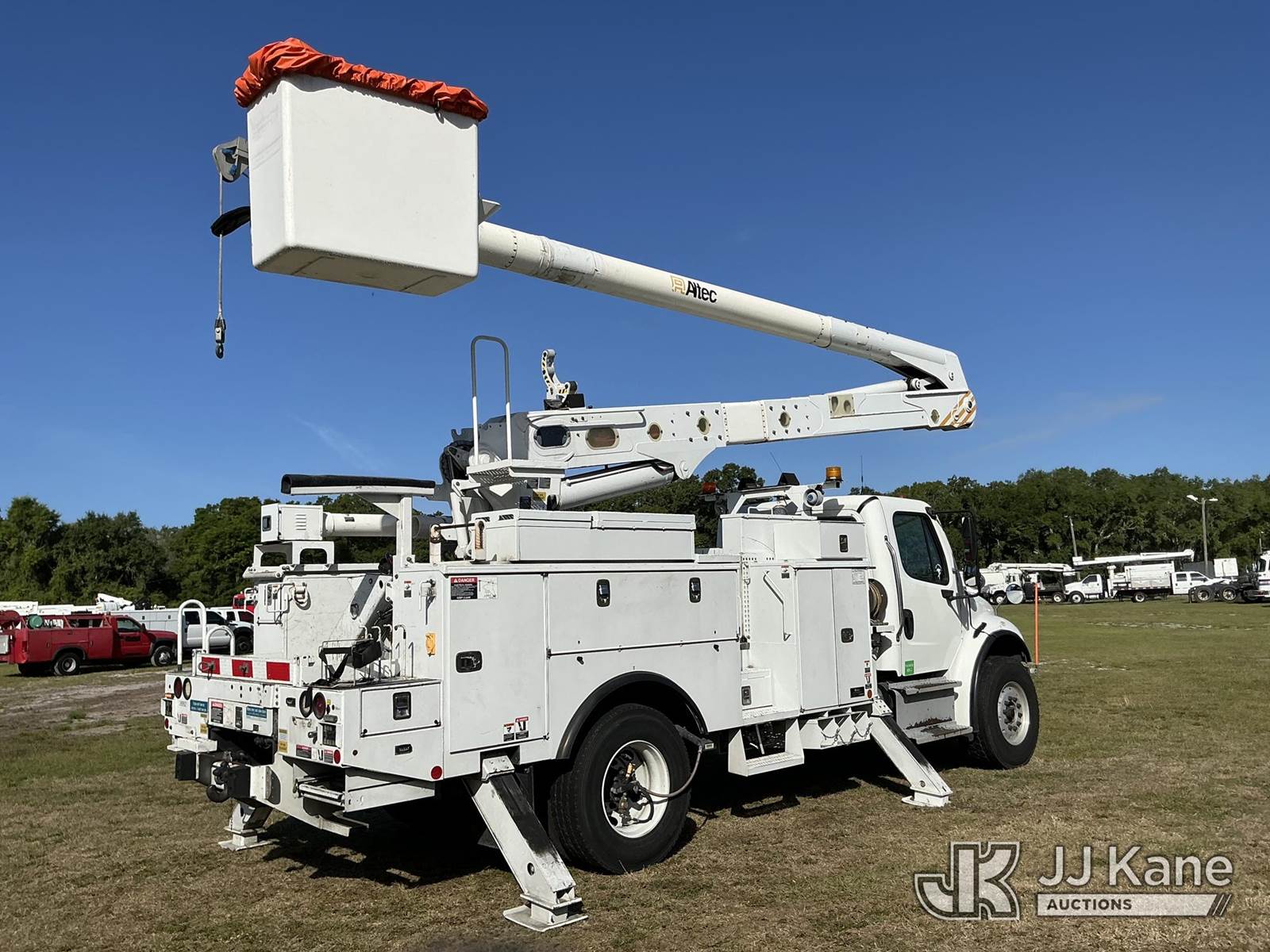 Altec AN55E, 61 ft, Material Handling Bucket Truck s/n 0116FJ0387, with two-man bucket & 4 hydraulic outriggers, rear mounted on 2016 Freightliner M2 106 Utility Truck, 6.7L L6 Diesel, 4X2, Auto, A/C, with tire pressure system, (105,914 miles) (Duke Unit) (Runs, Moves, Upper Operates) (FL Residents Purchasing Titled Items – tax, title & registration fees will be collected at the maximum rate of $400.00 under 25,999 and $800.00 for Over 26,000 and $250.00 trailers – Proof of insurance is mandatory; Out of State Residents Purchasing Title Items – tax will be collected based upon your state rate.) (Reads 8,935 hours) This is a Titled Item NOTE: This unit is being sold AS IS/WHERE IS via Timed Auction and is located in Thonotosassa, FL. Inspection & preview days for this unit are the 2 business days prior to the first day of items closing for this auction, item is located at 11720 N US 301 Thonotosassa, Fl 33592 and hours of operations are 8a-4p. For pre-sale questions, please contact Office Staff @ (813) 986-2485. (Missing manuals, See Auction Company for Manufacturers Information to obtain manuals) (Buyer is responsible for removal. Assistance by consignor or JJ Kane Auctions is not assured.)
