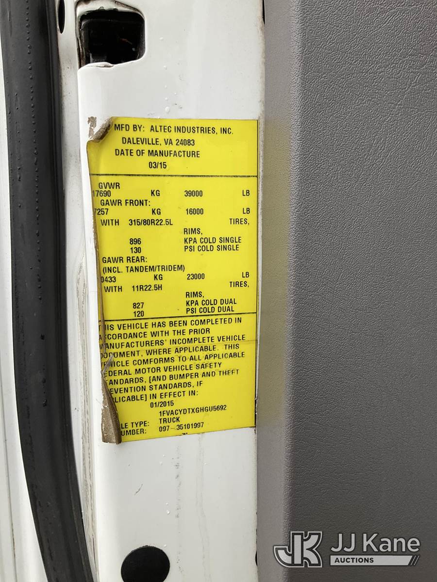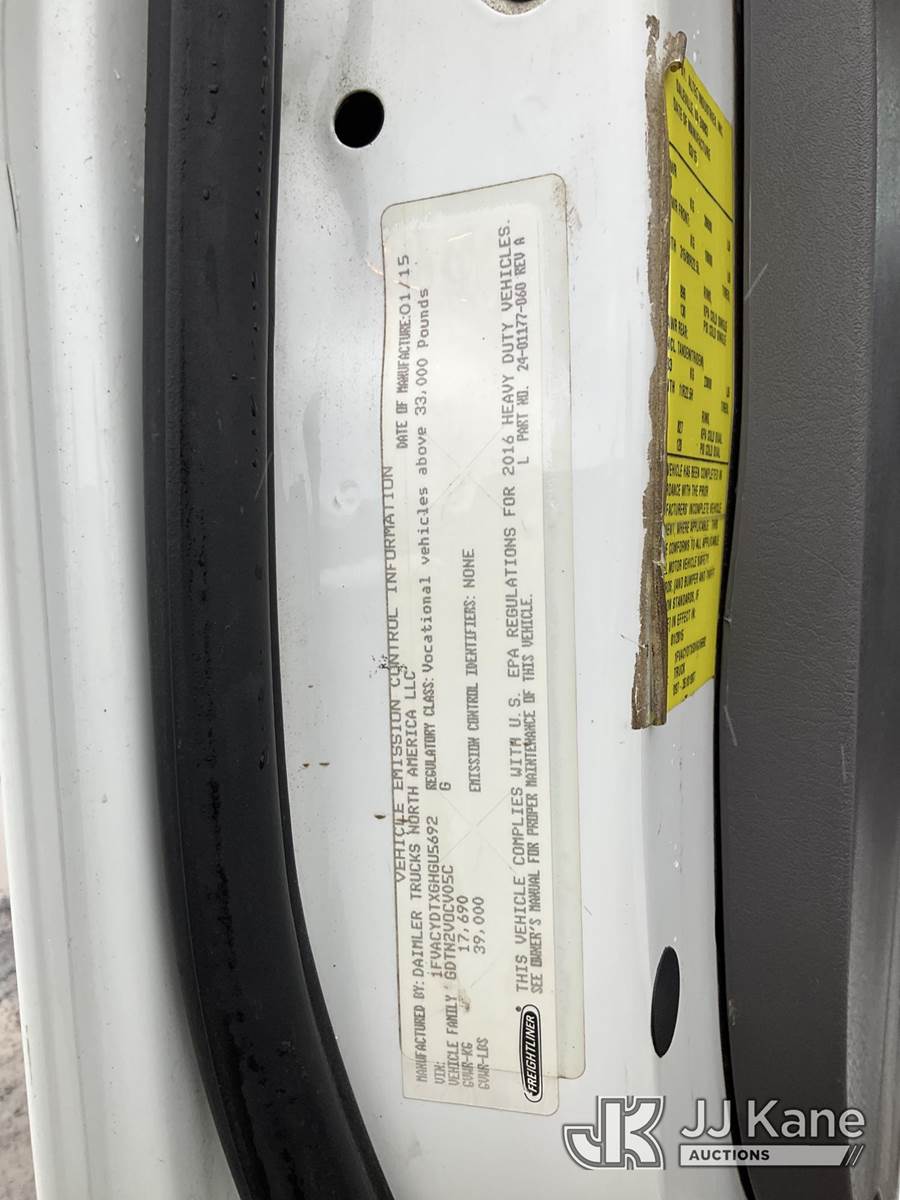 Altec AN55E-OC, 60 ft, Material Handling Bucket Truck s/n 0215FK0704, with Single Man Bucket & 4 Outriggers , rear mounted on 2016 Freightliner M2 106 Extended-Cab Utility Truck, 6.7L diesel, Auto, A/C, (137,837 miles) (Runs, Moves & Upper Operates, Jump to Start, Check Engine Lights On) This is a Titled Item NOTE: This unit is being sold AS IS/WHERE IS via Timed Auction and is located in Rome, NY. Inspection & preview days for this unit are the 2 business days prior to the first day of items closing for this auction, item is located at 5835 Success Dr Rome, NY 13440 and hours of operations are 8a-4p. For pre-sale questions, please contact Ryan Jackson @ (315) 749-3790 or Ryan.Jackson@jjkane.com. (Manuals provided in cab) Sales Tax Collected Based on Residency (Buyer is responsible for removal. Assistance by consignor or JJ Kane Auctions is not assured.)