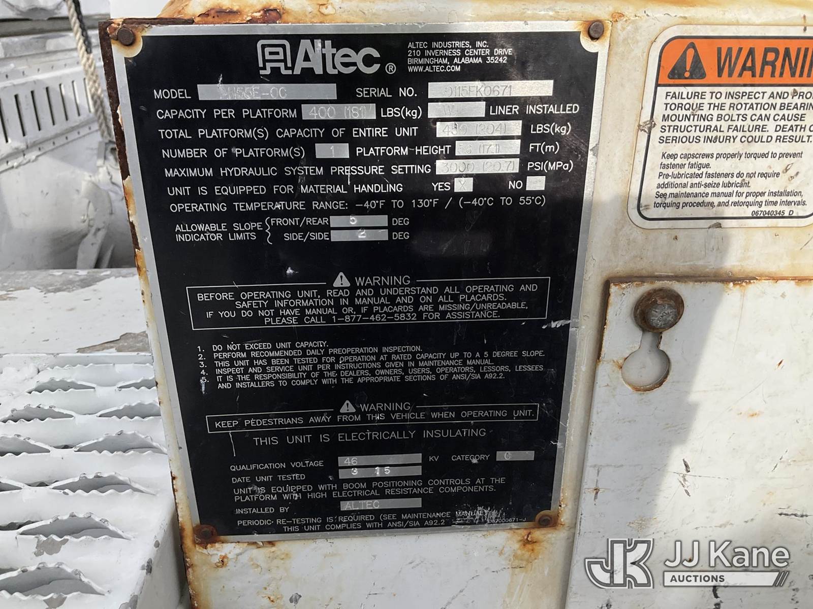 Altec AN55E-OC, 60 ft, Material Handling Bucket Truck s/n 0115FK0671, with Single Man Bucket & 4 Outriggers , rear mounted on 2016 Freightliner M2 106 Extended-Cab Utility Truck, 6.7L diesel, Auto, A/C, (167,178 miles) (Runs, Moves & Upper Operates, Jump to Start) This is a Titled Item NOTE: This unit is being sold AS IS/WHERE IS via Timed Auction and is located in Rome, NY. Inspection & preview days for this unit are the 2 business days prior to the first day of items closing for this auction, item is located at 5835 Success Dr Rome, NY 13440 and hours of operations are 8a-4p. For pre-sale questions, please contact Ryan Jackson @ (315) 749-3790 or Ryan.Jackson@jjkane.com. (Manuals provided in cab) Sales Tax Collected Based on Residency (Buyer is responsible for removal. Assistance by consignor or JJ Kane Auctions is not assured.)