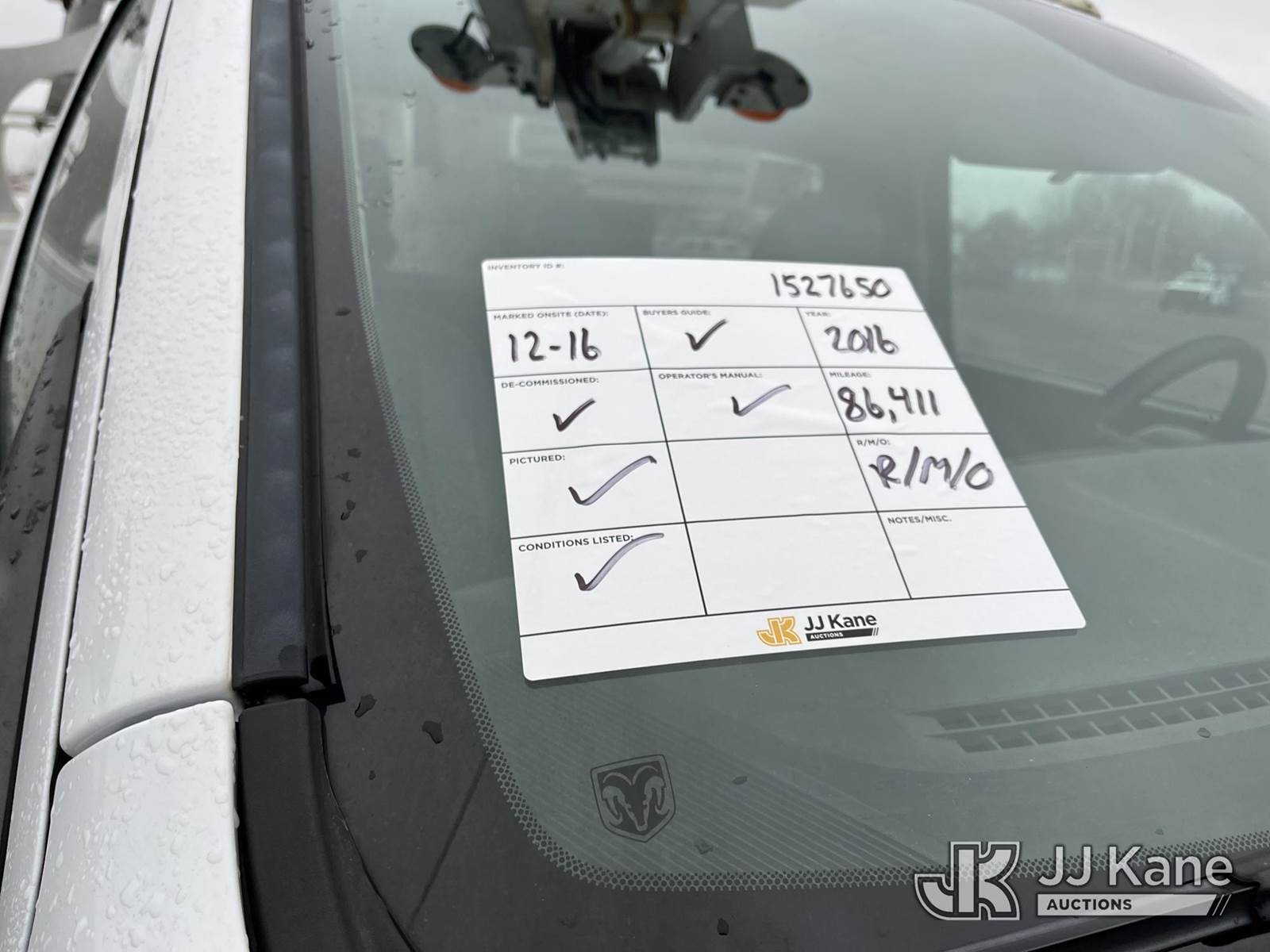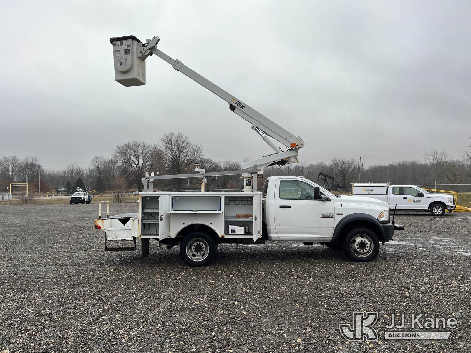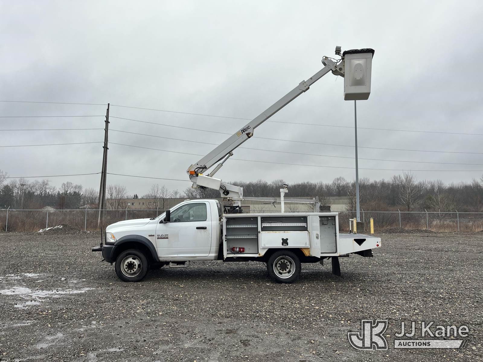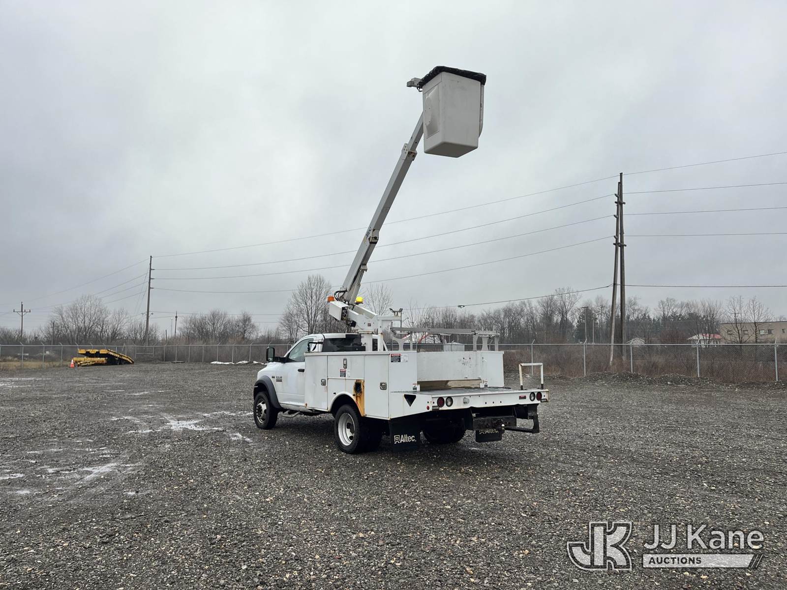 Altec AT200, 35 ft, Telescopic Non-Insulated Bucket Truck s/n 1117BV24165, with single-man bucket, mounted behind cab on 2016 RAM 4500 Service Truck, 8-cyl gas, Auto, A/C, (86,411 miles) (Runs, Moves & Operates, Interior Damage, Body & Rust Damage.) This is a Titled Item NOTE: This unit is being sold AS IS/WHERE IS via Timed Auction and is located in Louisville, OH. Inspection & preview days for this unit are the 2 business days prior to the first day of items closing for this auction, item is located at 3648 Beck Ave Louisville, OH 44641 and hours of operations are 8a-4p. For pre-sale questions, please contact Aaron Coleman @ (330) 495-4041 or aaron.coleman@jjkane.com. (Manuals provided in cab) (Buyer is responsible for removal. Assistance by consignor or JJ Kane Auctions is not assured.)