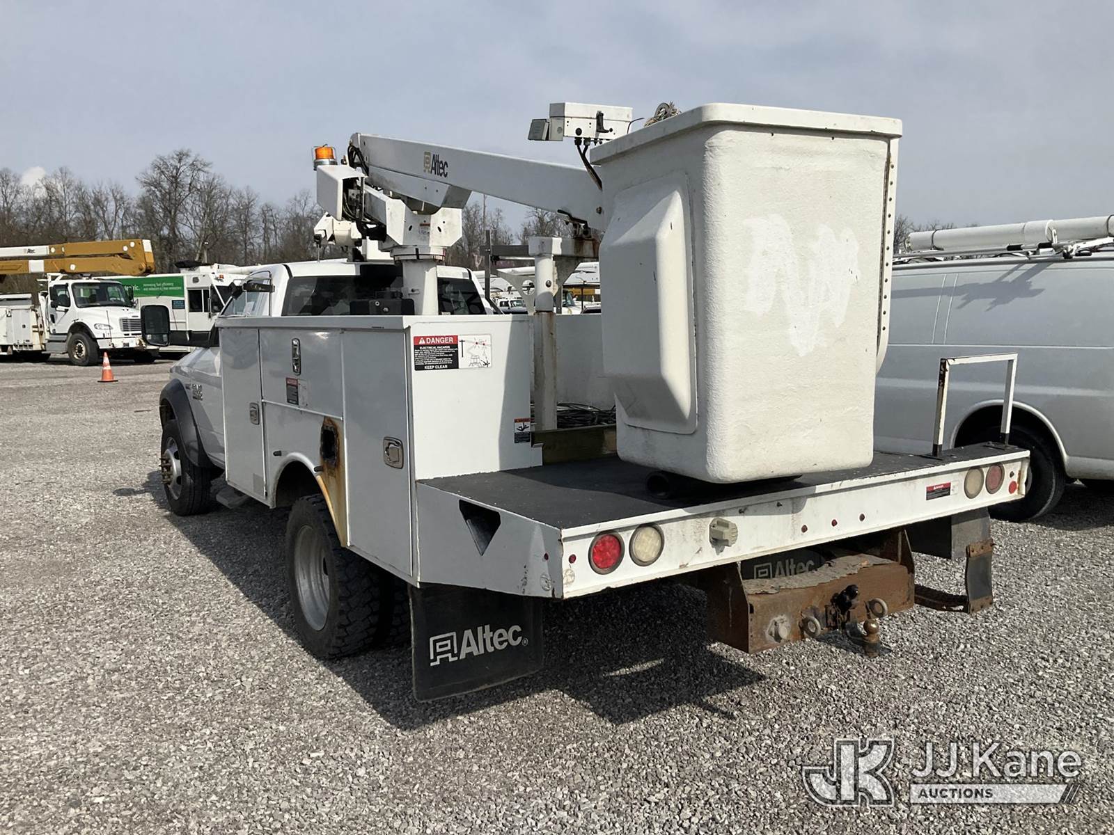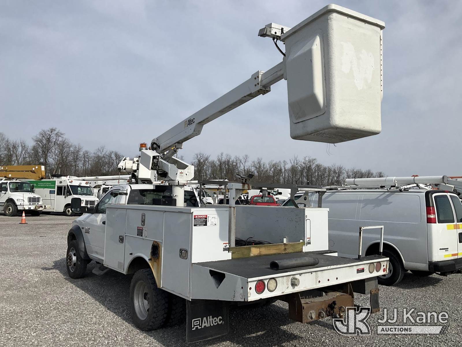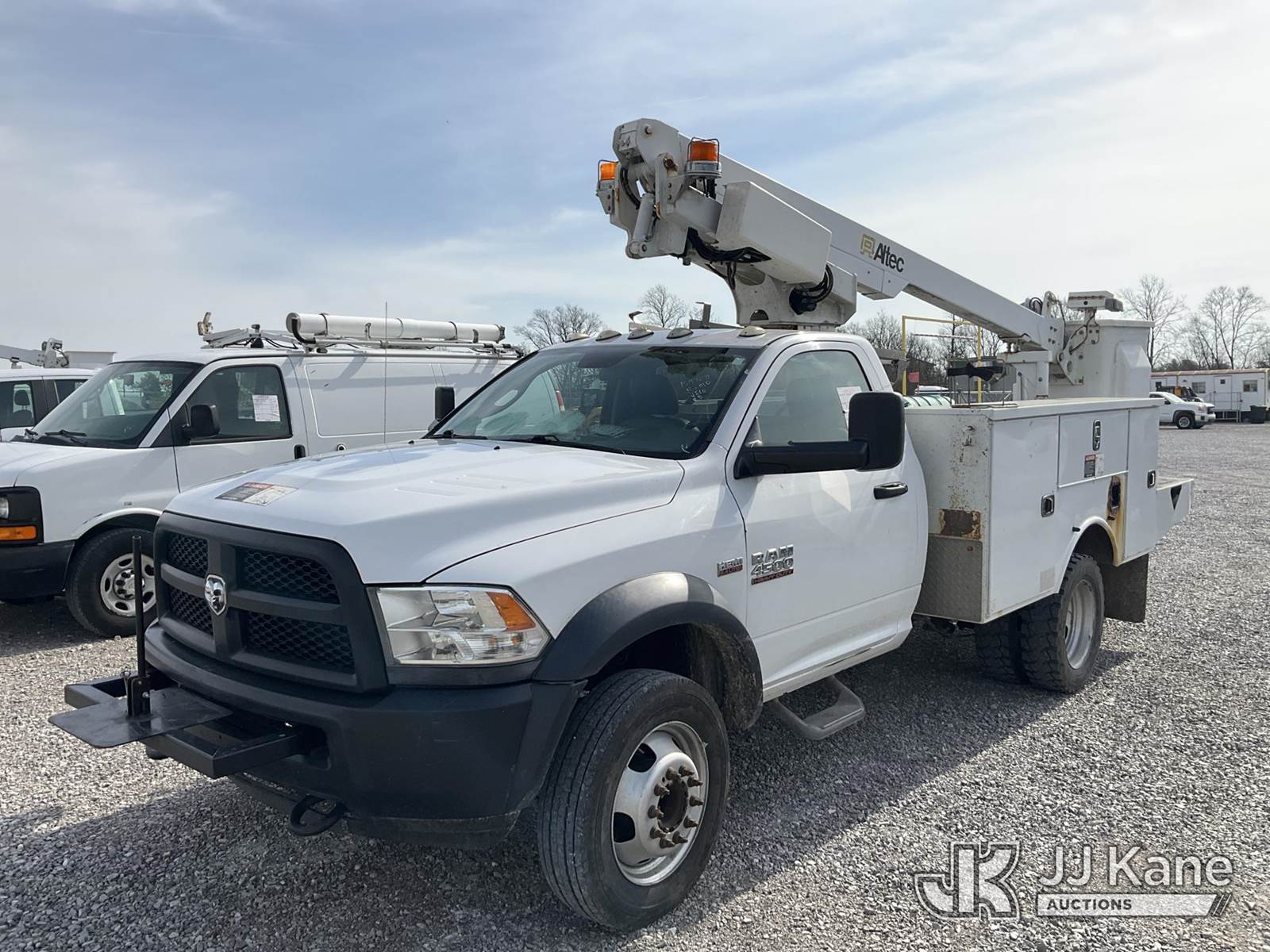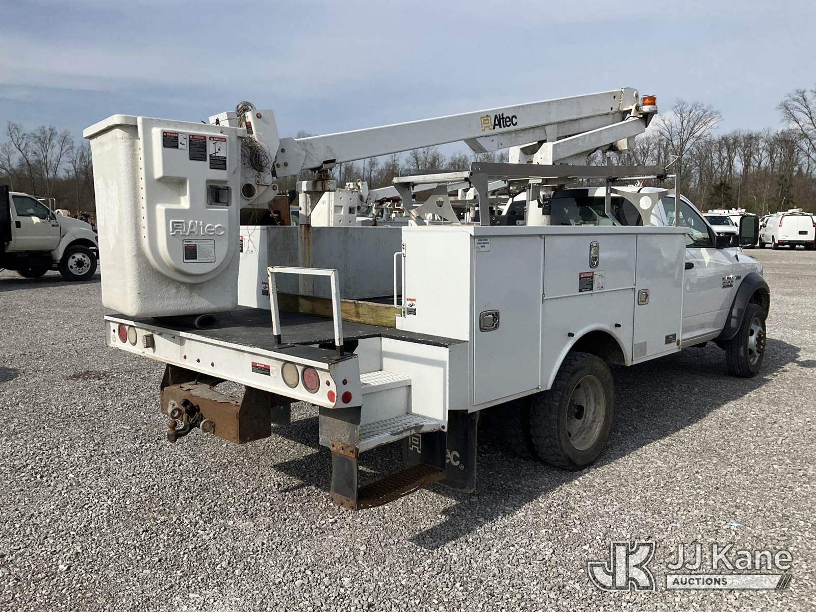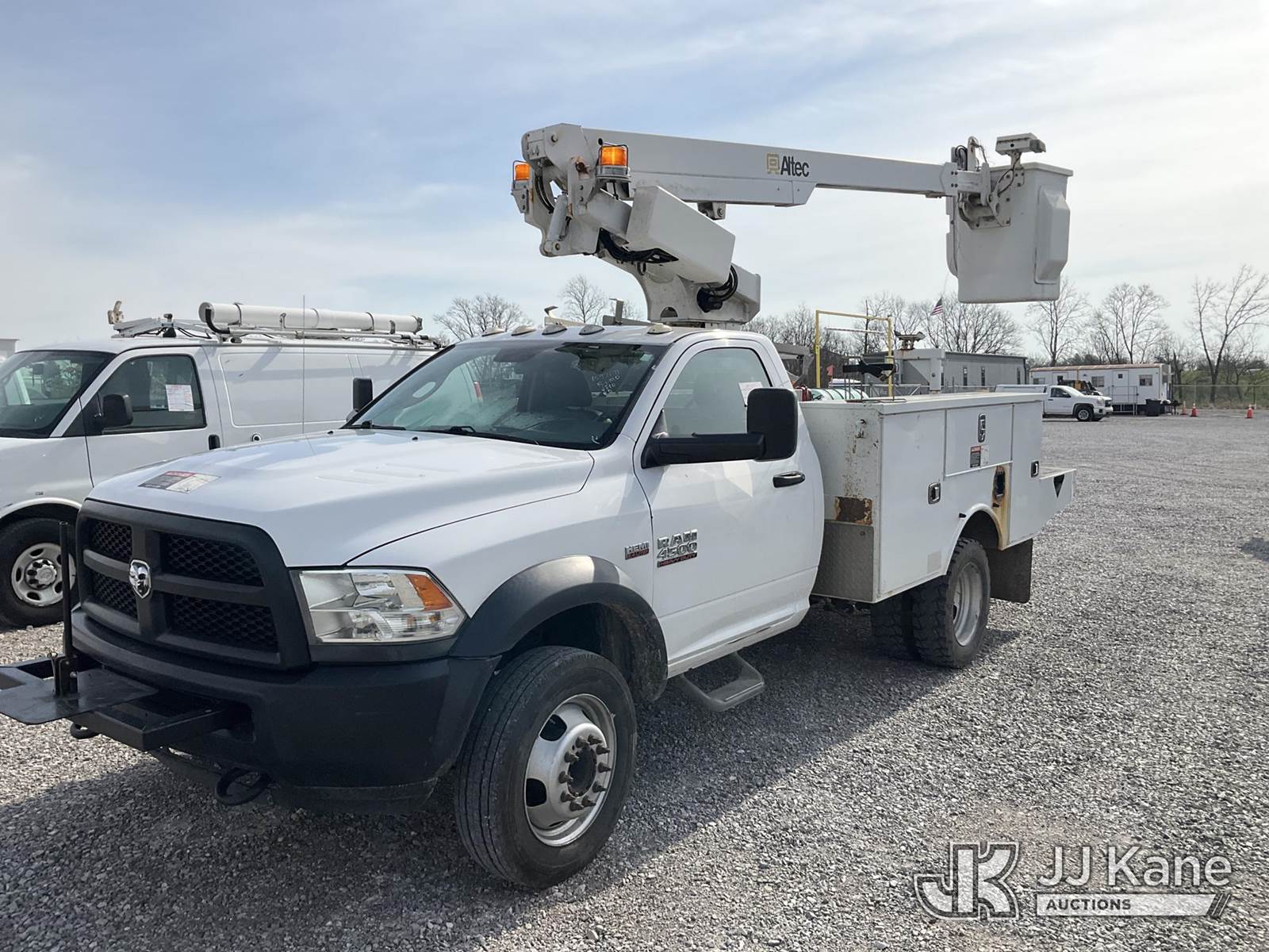 Altec AT200, 35 ft, Telescopic Non-Insulated Bucket Truck s/n 1016BV23199, with single-man bucket , mounted behind cab on 2016 RAM 4500 Service Truck, 6.4L V8 OHV 16V Gas, RWD, Auto, A/C, (123,721 miles) (Runs, Moves & Upper Operates) (Check Engine Light On, Body & Rust Damage) (The manufacturer has notified JJ Kane that this equipment is subject to an open recall. CSN 855 Fuel Line and Brake Line Inspection The equipment should not be operated until this is addressed. Buyer is responsible for reviewing the recall notice and contacting the manufacturer to schedule the recommended corrective actions. Associated costs may be covered by the manufacturer in some cases.) This is a Titled Item NOTE: This unit is being sold AS IS/WHERE IS via Timed Auction and is located in Verona, KY. Inspection & preview days for this unit are the 2 business days prior to the first day of items closing for this auction, item is located at 2841 Verona-Mudlick Rd Ste B Verona, KY 41092 and hours of operations are 8a-4p. For pre-sale questions, please contact Office Staff @ (502) 612-5080. Auctioneer Michael Whitebread / License # 256617. (Manuals provided in cab) (Buyer is responsible for removal. Assistance by consignor or JJ Kane Auctions is not assured.)