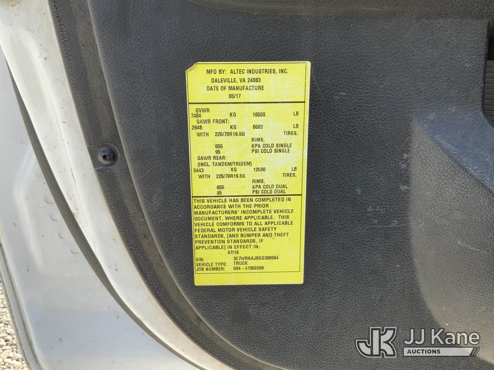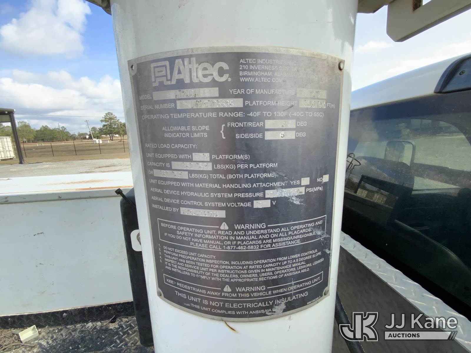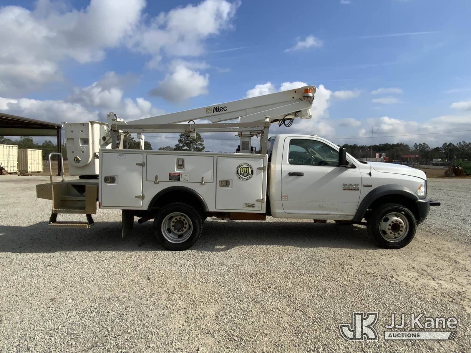 Altec AT200A, 35 ft, Telescopic Non-Insulated Bucket Truck s/n 0417BV23685, with single-man bucket, mounted behind cab on 2016 RAM 4500HD Service Truck, 8-cyl gas, Auto, A/C, (142,013 miles) (Runs, Moves & Upper Operates) (Jump To Start) This is a Titled Item NOTE: This unit is being sold AS IS/WHERE IS via Timed Auction and is located in Blackshear, GA. Inspection & preview days for this unit are by appointment only; please contact us at contact@jjkane.com or 84-Go-JJKane for more details. (Missing manuals, See Auction Company for Manufacturers Information to obtain manuals) (Buyer is responsible for removal. Assistance by consignor or JJ Kane Auctions is not assured.)