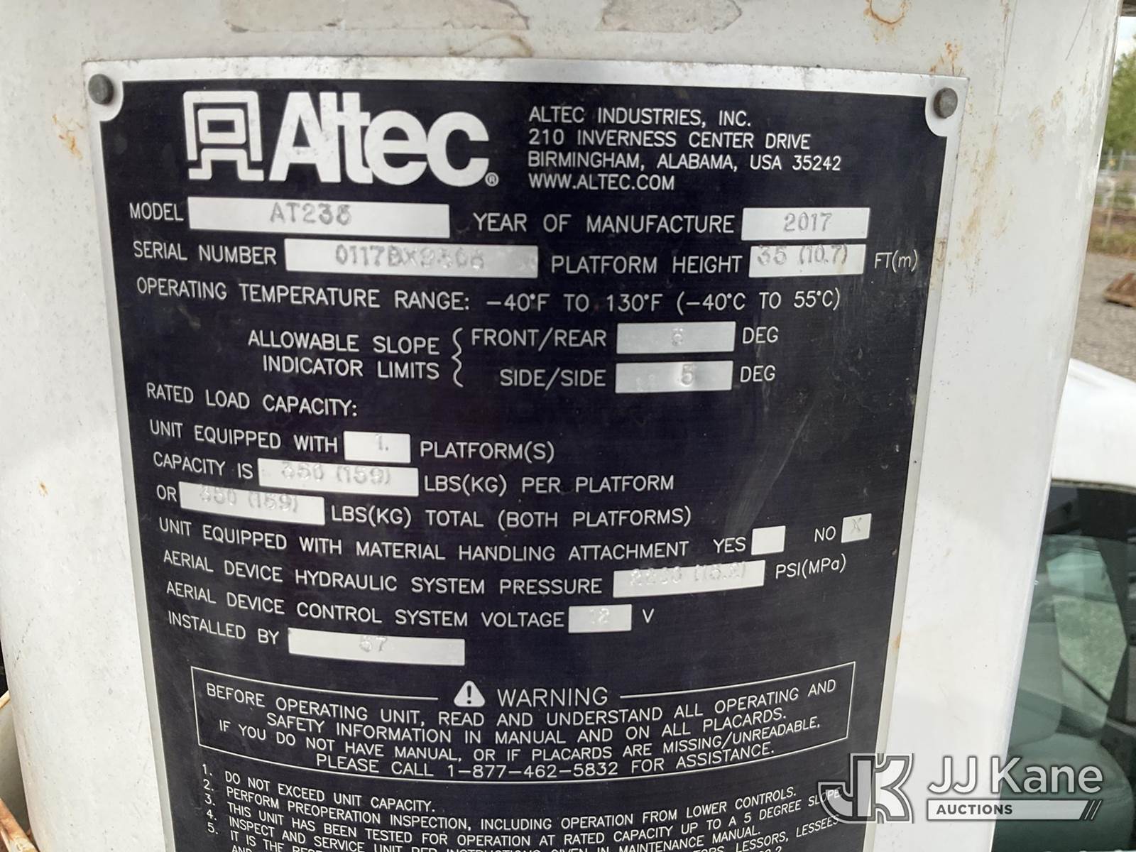 Altec AT235, 40 ft, Articulating & Telescopic Non-Insulated Bucket Truck s/n 0117BX9308, with single man bucket, mounted behind cab on 2016 Ford F-450 SD Service Truck, 8-cyl gas, A/C, (85,735 miles) (Runs, Moves & Upper Operates) (Reads 6,802 hours) This is a Titled Item NOTE: This unit is being sold AS IS/WHERE IS via Timed Auction and is located in Portland, OR. Inspection & preview days for this unit are the 2 business days prior to the first day of items closing for this auction, item is located at 13817 NE Sandy Blvd Portland, OR 97230 and hours of operations are 8a-4p. For pre-sale questions, please contact Tony Tully @ (503)-307-1348. Dealer License Number DL1391. (Manuals provided in cab) (Buyer is responsible for removal. Assistance by consignor or JJ Kane Auctioneers is not assured.)