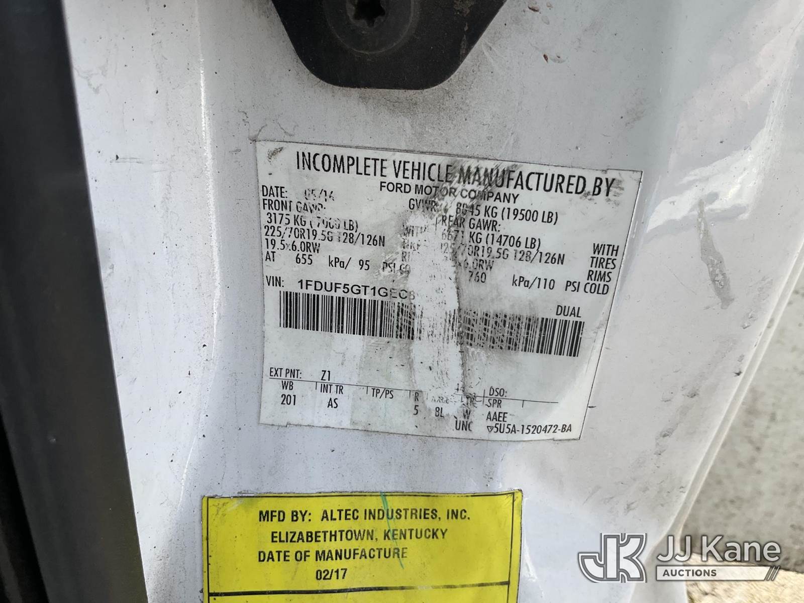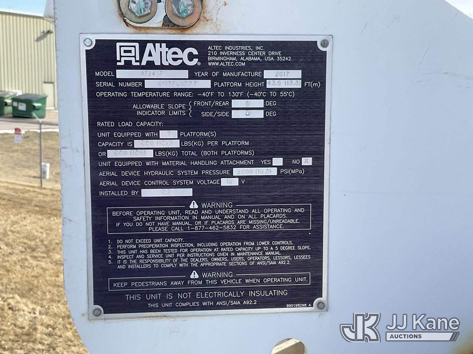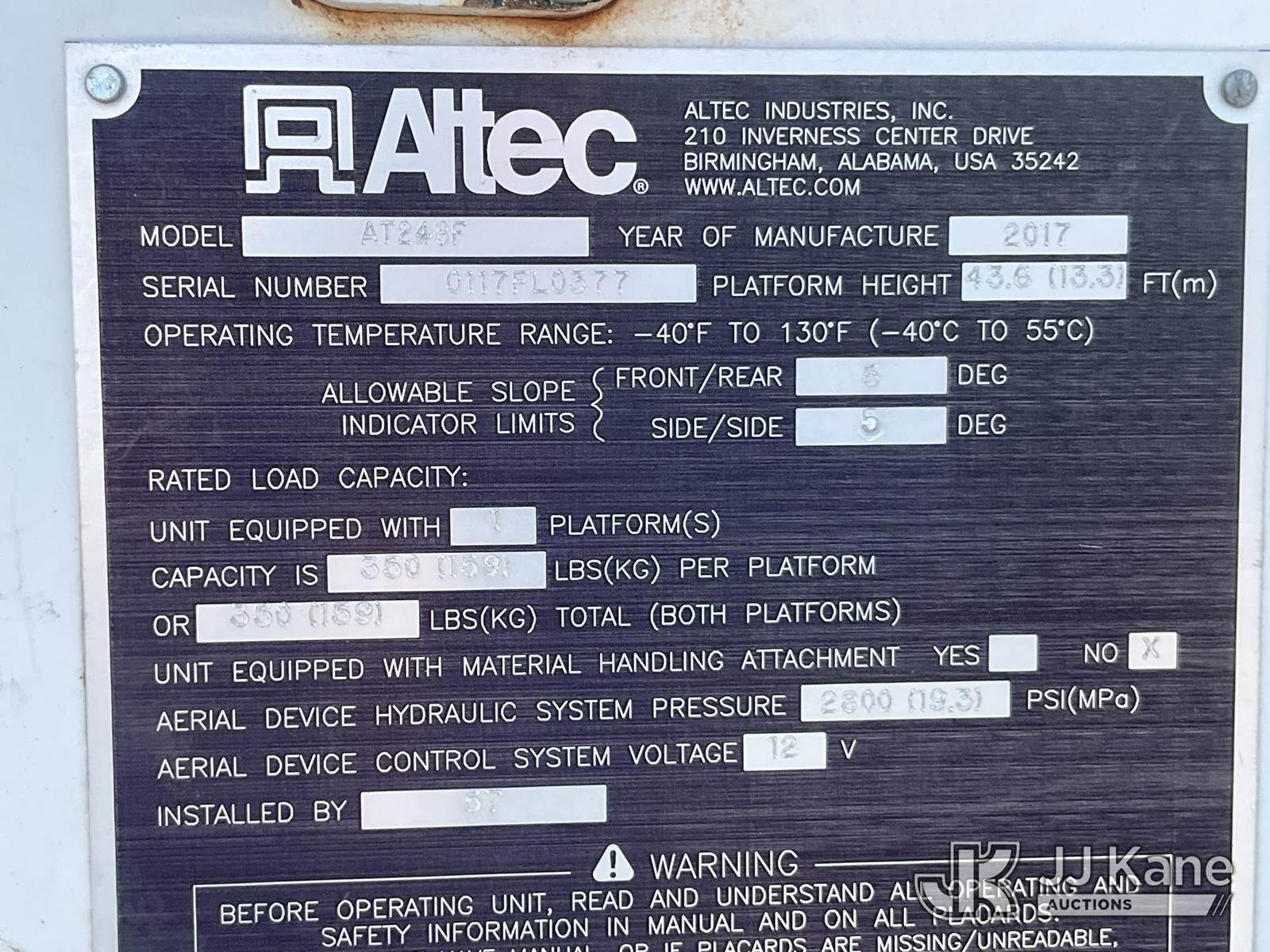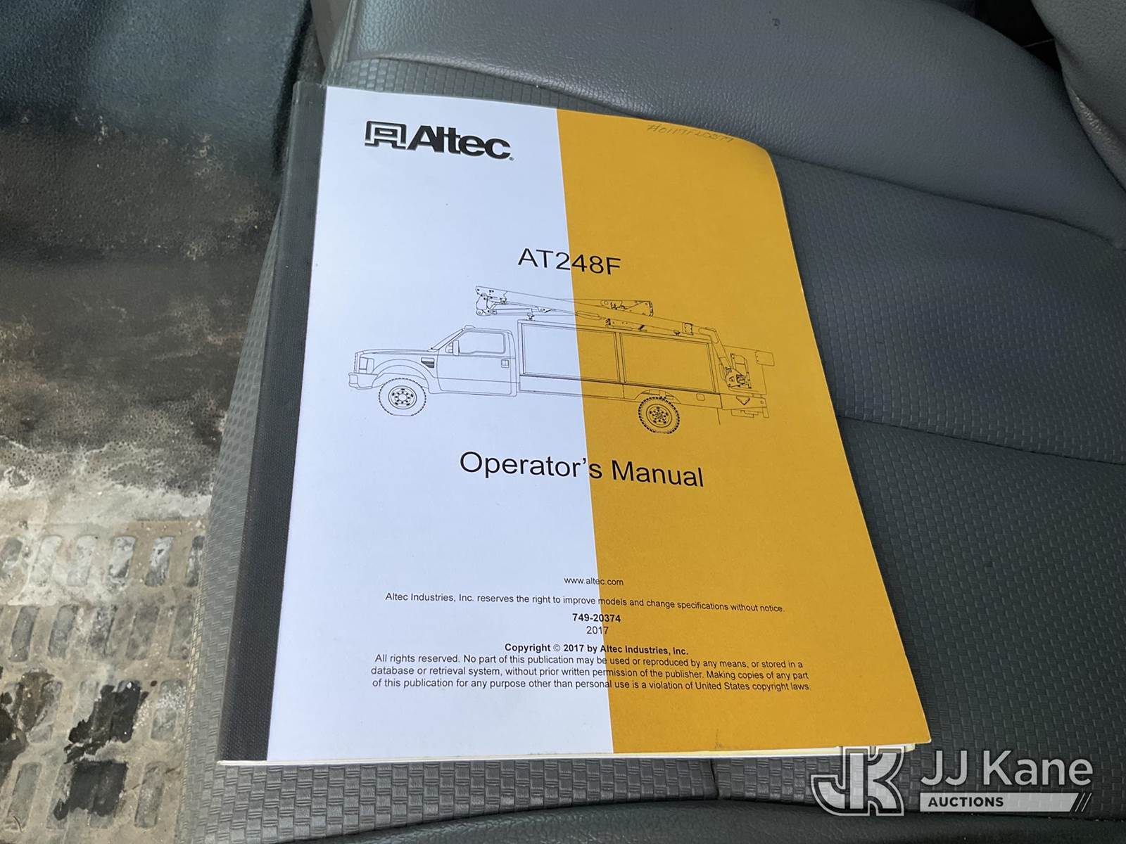 Altec AT248F, 350 Lb 48 ft, Telescopic Non-Insulated Bucket Truck s/n 0117FL0377, with single-man bucket, center mounted on 2016 Ford F-550 Regular Cab DRW 2WD s/n 1FDUF5GT1GEC89802, 6.7L V8 Diesel, Auto, A/C, with Magnum Inverter/Charger MS2012-G sn/ BB-00856, (242,645 miles) (Runs, Moves & Operates, Check Engine Light On, Seller States: Fleet Maintained, Annual Inspections Completed) This is a Titled Item NOTE: This unit is being sold AS IS/WHERE IS via Timed Auction and is located in Neenah, WI. Inspection & preview days for this unit are by appointment only; please contact us at contact@jjkane.com or 84-Go-JJKane for more details. (Manuals provided in cab) (Buyer is responsible for removal. Assistance by consignor or JJ Kane Auctions is not assured.)