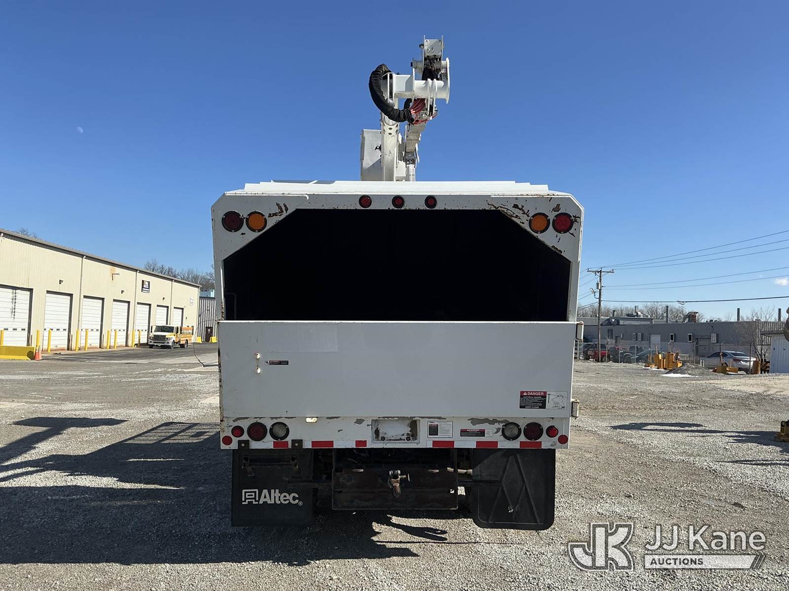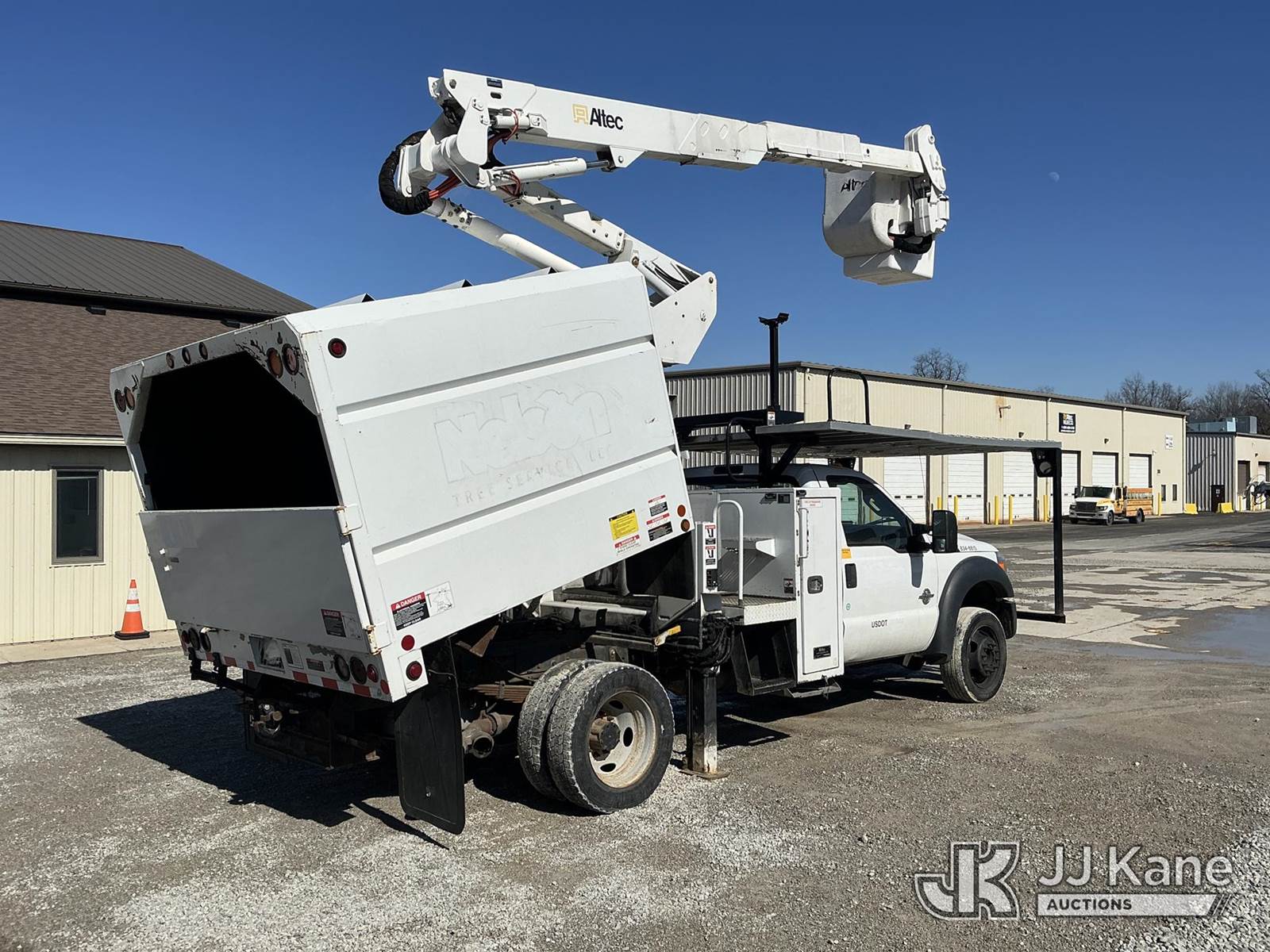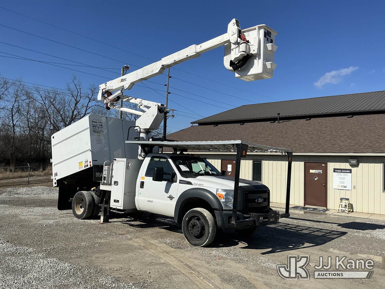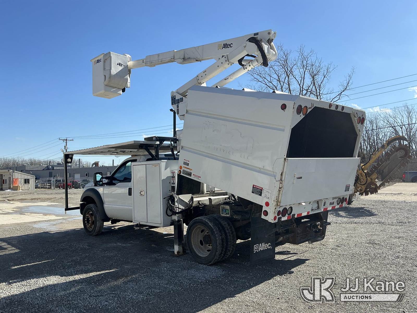 Altec AT37G, 42 ft, Articulating & Telescopic Bucket s/n 0216DE18679, with single-man bucket & 2 hyd outriggers, mounted behind cab on 2016 Ford F550 4x4 Chipper Dump Truck, s/n 1FDUF5HT8GEB80767, 6.7L V8 OHV 16V DIESEL Auto, A/C, with 7 ft. body, (95,983 miles) (Runs, Moves & Upper Operates) (Check Engine Light On, Windshield Cracked, Side Mirror Damage, An Altec inspection of the unit identified above has determined that the unit cannot be safely operated without completion of significant repairs. The unit has been removed from service until these repairs are accomplished. Serious injury or death can result for any attempt to operate the unit without the benefit of these repairs. Altec has recorded the out of service status of the unit. Until Altec has been notified, in writing, that the required repairs have been performed, or Altec performs the repairs, further service work, technical support, and part sales by Altec may be limited on this unit) (Seller States: Seller states this item has been removed from service due to the listed safety repairs that were not completed. The safety items below must be completed by an approved OEM facility before the unit can return to service: WELDMENT DAMAGED, RETURN SPRING AT UPPER CONTROLS, REAR SLIDE PA) (Reads 9,012 hours) (Bidding Restricted to Licensed Vehicle Dealers Only), This is a Titled Item NOTE: This unit is being sold AS IS/WHERE IS via Timed Auction and is located in Fort Wayne, IN. Inspection & preview days for this unit are the 2 business days prior to the first day of items closing for this auction, item is located at 3020 Commercial Rd Fort Wayne, IN 46809 and hours of operations are 8a-4p. For pre-sale questions, please contact Eric Mcintosh @ (260) 205-2483 (Manuals provided in cab) (Buyer is responsible for removal. Assistance by consignor or JJ Kane Auctions is not assured.)