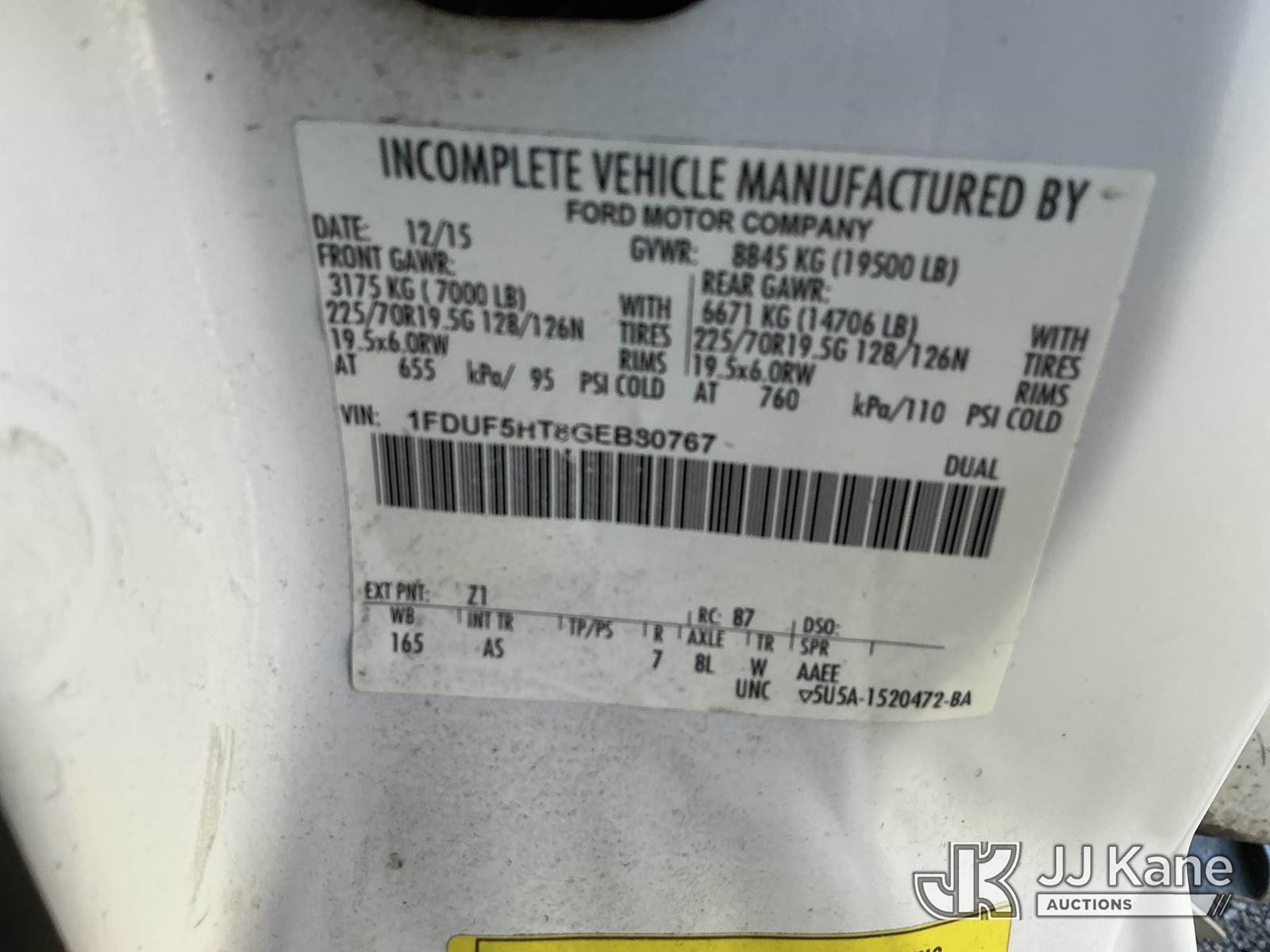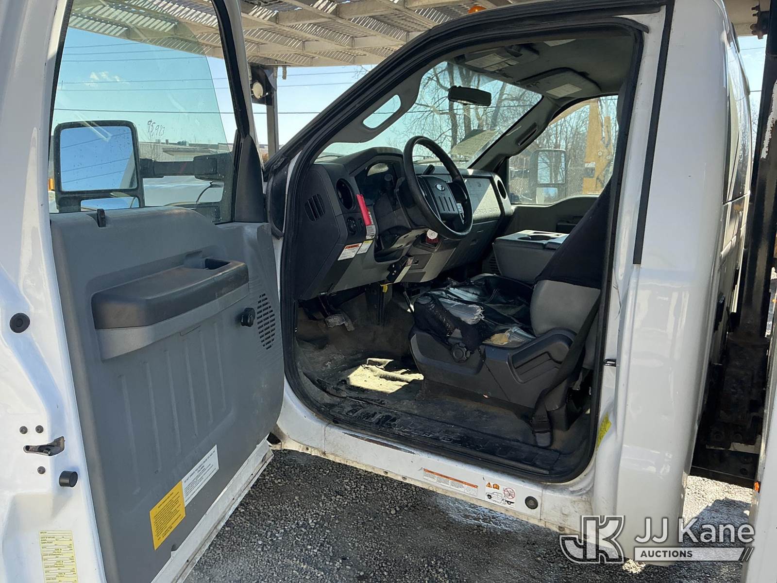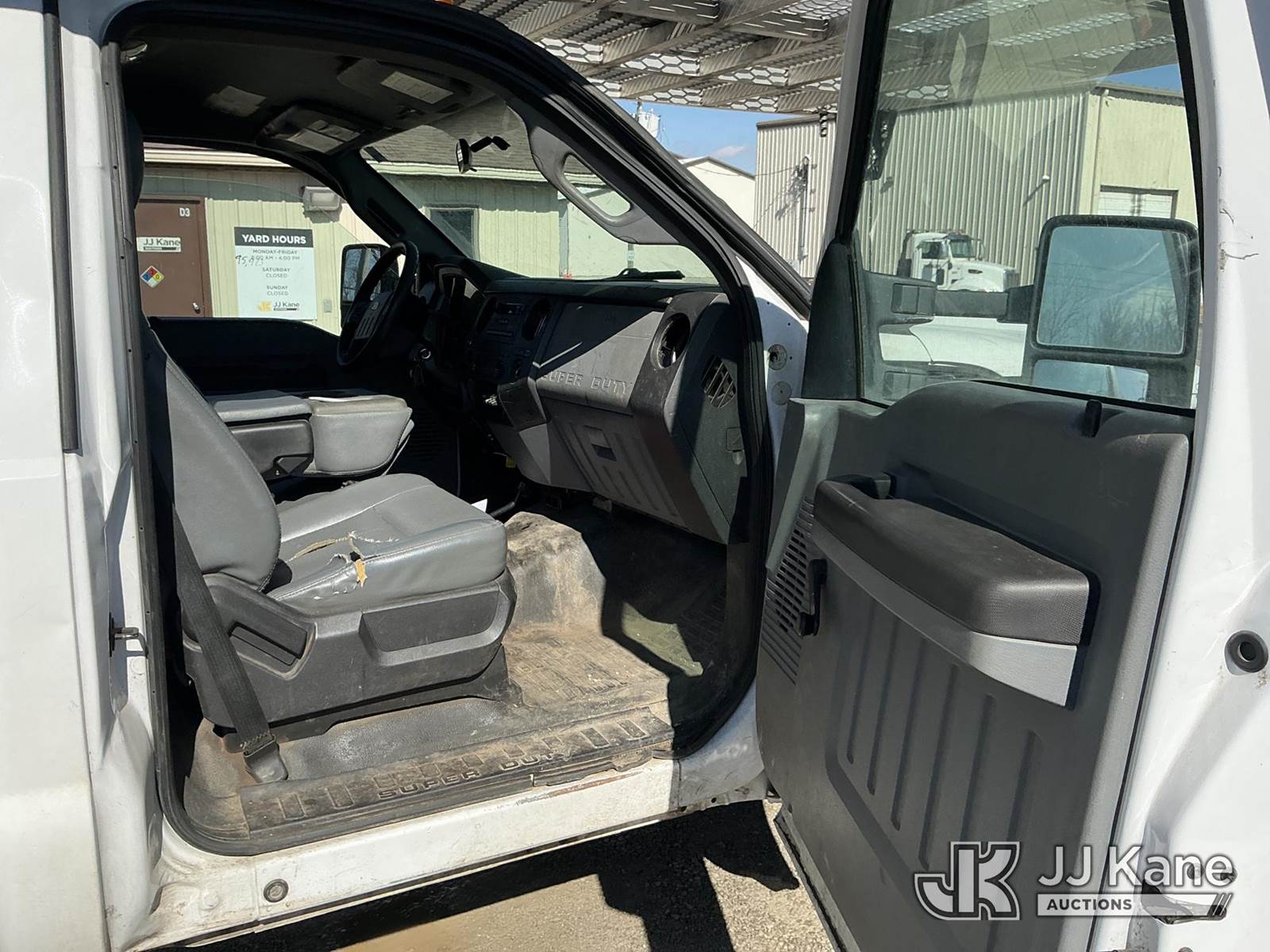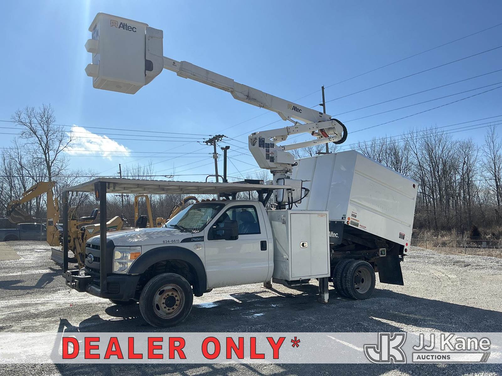 Altec AT37G, 42 ft, Articulating & Telescopic Bucket s/n 0216DE18679, with single-man bucket & 2 hyd outriggers, mounted behind cab on 2016 Ford F550 4x4 Chipper Dump Truck, s/n 1FDUF5HT8GEB80767, 6.7L V8 OHV 16V DIESEL Auto, A/C, with 7 ft. body, (95,983 miles) (Runs, Moves & Upper Operates) (Check Engine Light On, Windshield Cracked, Side Mirror Damage, An Altec inspection of the unit identified above has determined that the unit cannot be safely operated without completion of significant repairs. The unit has been removed from service until these repairs are accomplished. Serious injury or death can result for any attempt to operate the unit without the benefit of these repairs. Altec has recorded the out of service status of the unit. Until Altec has been notified, in writing, that the required repairs have been performed, or Altec performs the repairs, further service work, technical support, and part sales by Altec may be limited on this unit) (Seller States: Seller states this item has been removed from service due to the listed safety repairs that were not completed. The safety items below must be completed by an approved OEM facility before the unit can return to service: WELDMENT DAMAGED, RETURN SPRING AT UPPER CONTROLS, REAR SLIDE PA) (Reads 9,012 hours) (Bidding Restricted to Licensed Vehicle Dealers Only), This is a Titled Item NOTE: This unit is being sold AS IS/WHERE IS via Timed Auction and is located in Fort Wayne, IN. Inspection & preview days for this unit are the 2 business days prior to the first day of items closing for this auction, item is located at 3020 Commercial Rd Fort Wayne, IN 46809 and hours of operations are 8a-4p. For pre-sale questions, please contact Eric Mcintosh @ (260) 205-2483 (Manuals provided in cab) (Buyer is responsible for removal. Assistance by consignor or JJ Kane Auctions is not assured.)