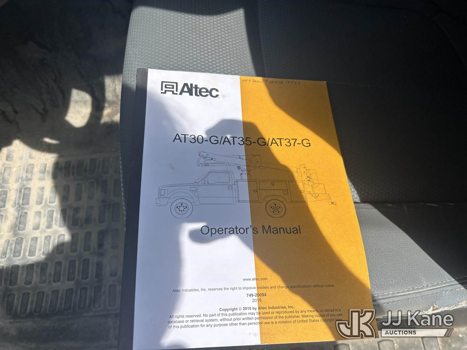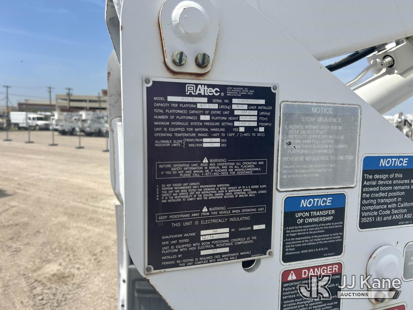 Altec AT37G, 42 ft, Articulating & Telescopic Bucket s/n 1215DE18507, with Single-Man Bucket, mounted behind cab on 2016 Ford F-550 service, 6.7L Diesel Auto, A/C, (139,276 miles) Needs Battery and see repair estimate (Runs, Moves & Upper Operates) (Jump To Start, Check Engine Light) This is a Titled Item NOTE: This unit is being sold AS IS/WHERE IS via Timed Auction and is located in Waxahachie, TX. Inspection & preview days for this unit are the 2 business days prior to the first day of items closing for this auction, item is located at 999 Solon Rd Waxahachie, TX 75165 and hours of operations are 8a-4p. For pre-sale questions, please contact Alex Bayless @ (469) 550-4938. (Missing manuals, See Auction Company for Manufacturers Information to obtain manuals) (Buyer is responsible for removal. Assistance by consignor or JJ Kane Auctions is not assured.)