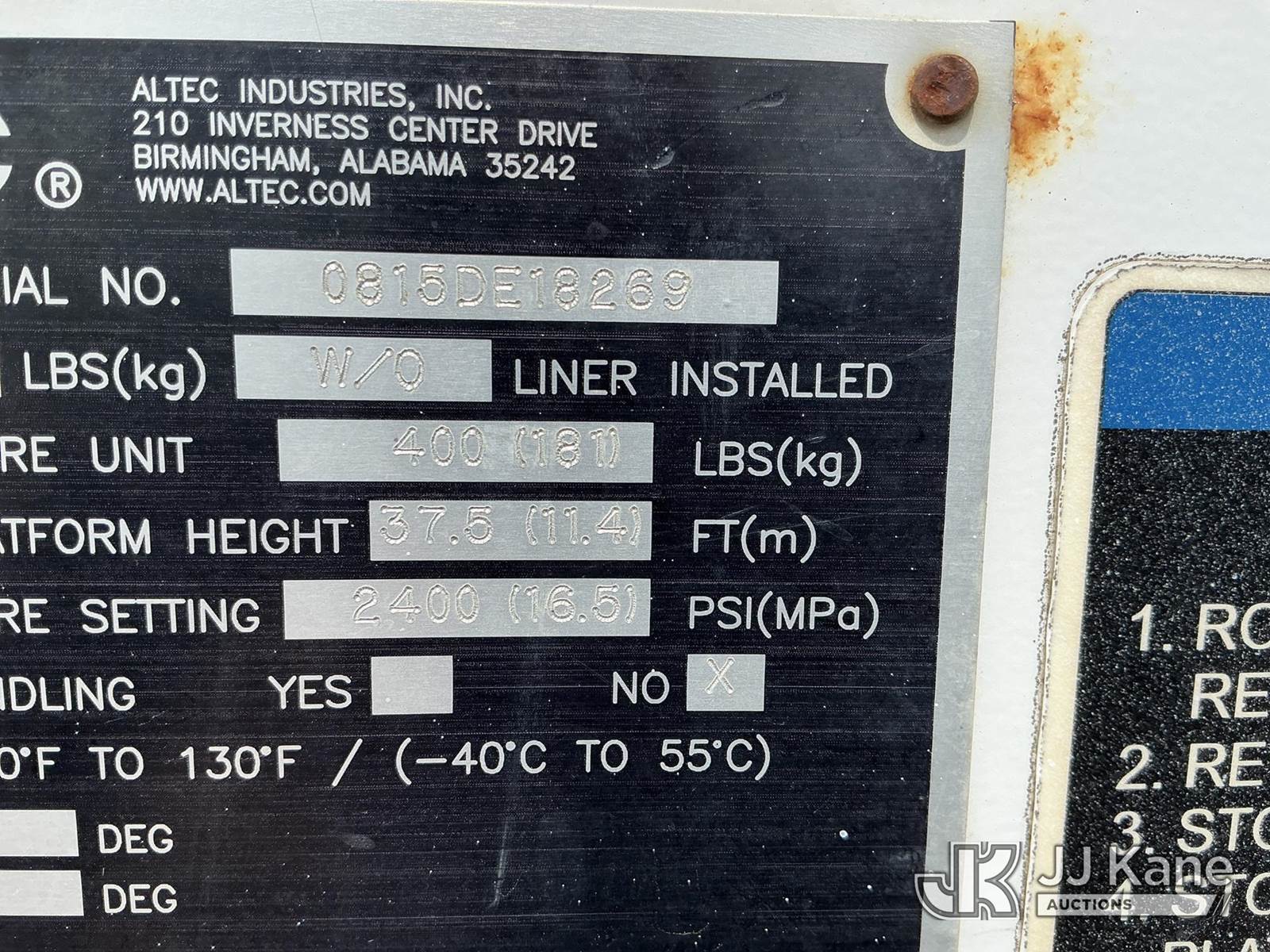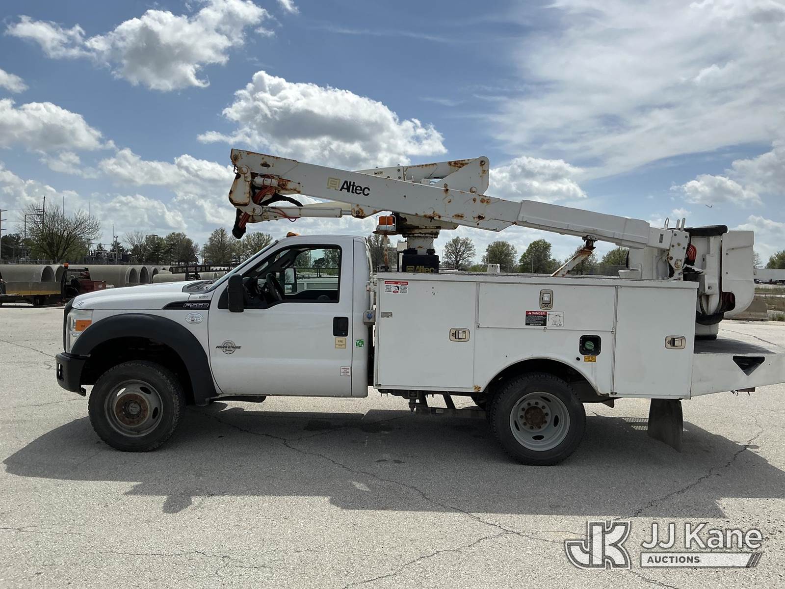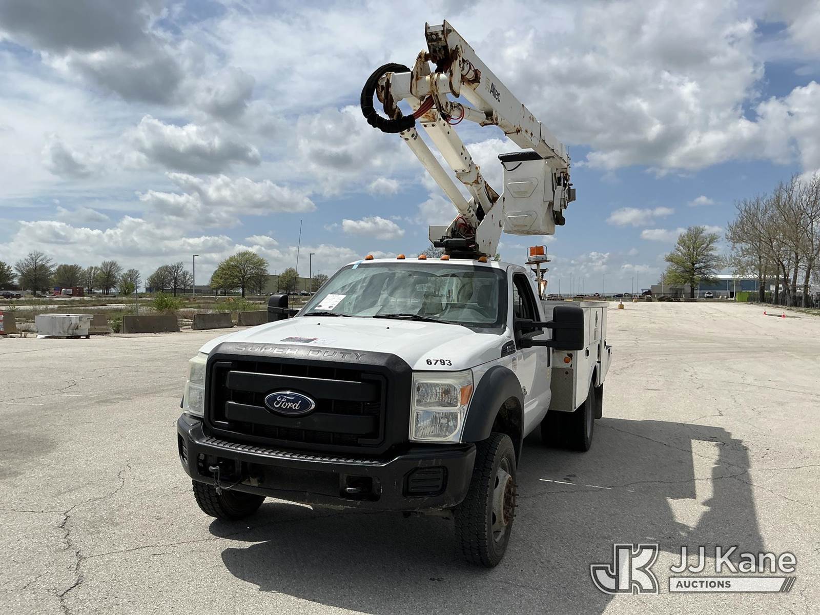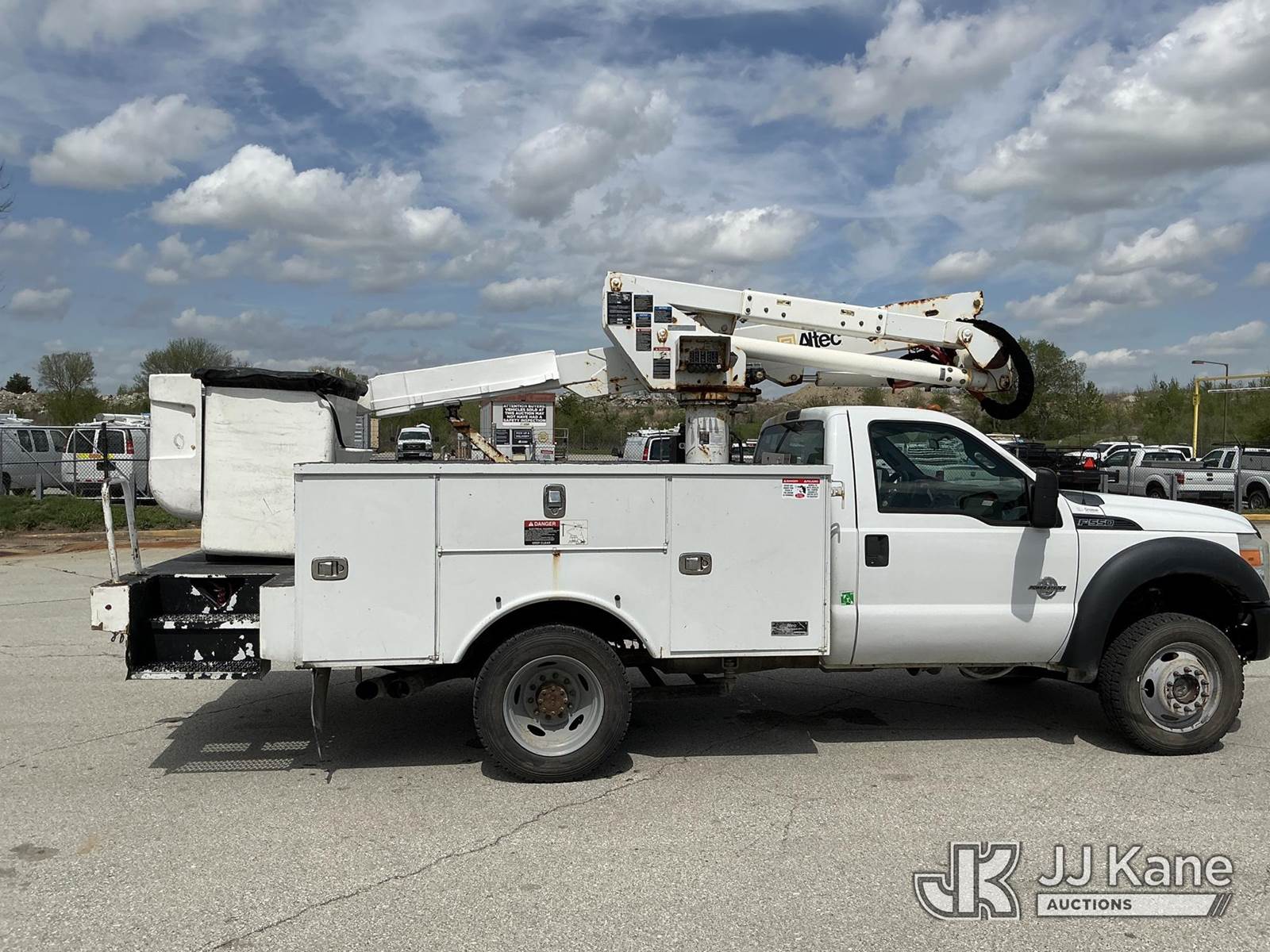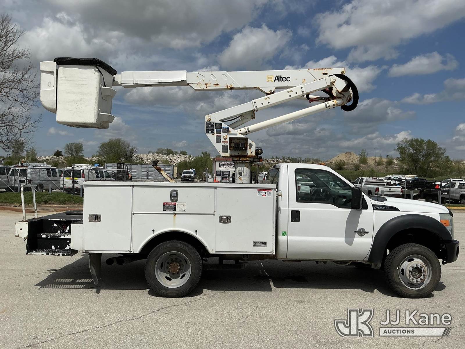 Altec AT37G, 42 ft, Articulating & Telescopic Bucket s/n 0815DE18269, with Single-Man Bucket, mounted behind cab on 2016 Ford F-550 Service Truck, 6.7L Diesel 4WD, auto, A/C, (179,120 miles) (Runs, Moves & Upper Operates) ( Dash Warning Indicator See Photo ) ) (Reads 13,566 hours) This is a Titled Item NOTE: This unit is being sold AS IS/WHERE IS via Timed Auction and is located in Kansas City, MO. Inspection & preview days for this unit are the 2 business days prior to the first day of items closing for this auction, item is located at 962 Tel Aviv Ave Kansas City, MO 64153 and hours of operations are 8a-4p. For pre-sale questions, please contact Ricky McPherson @ (816) 610-2250. (Manuals provided in cab) (Buyer is responsible for removal. Assistance by consignor or JJ Kane Auctions is not assured.)