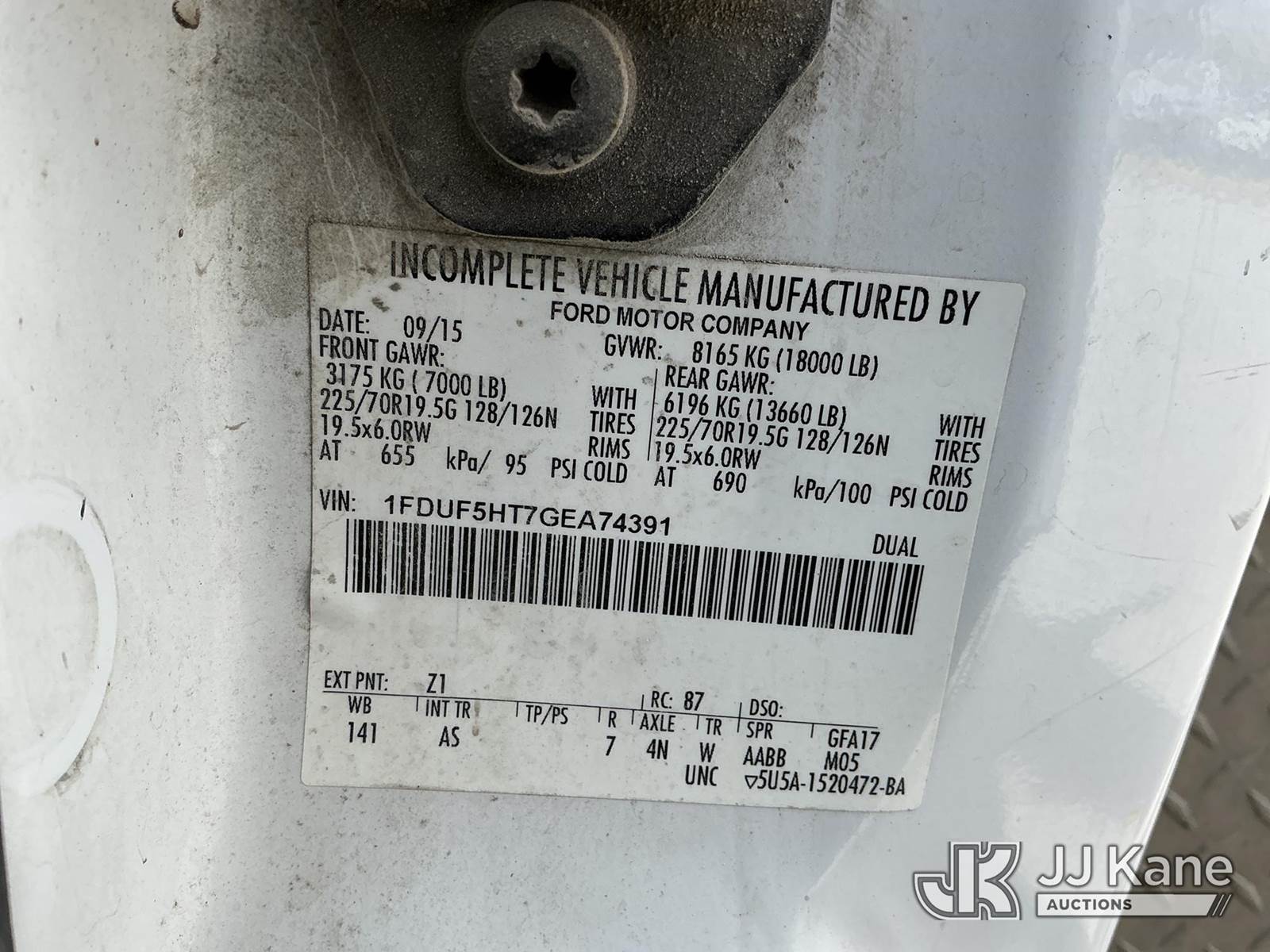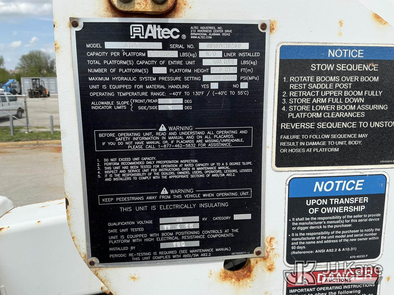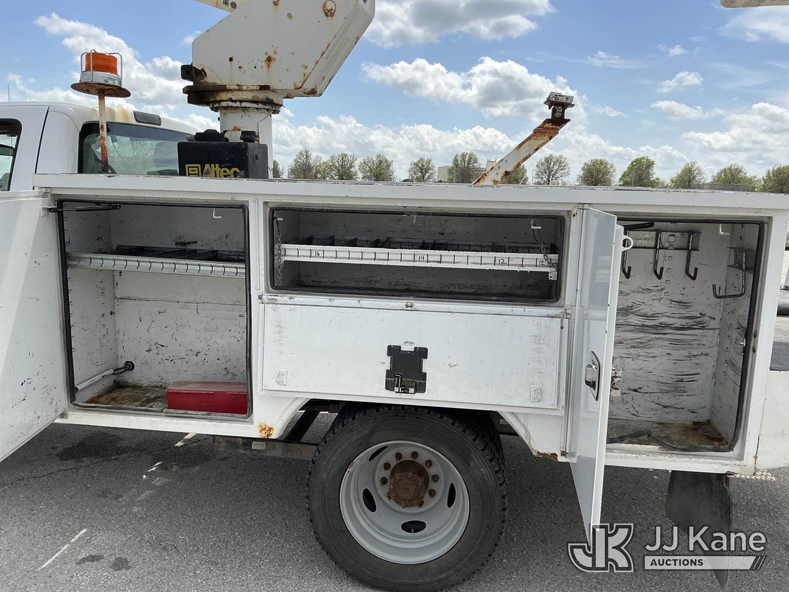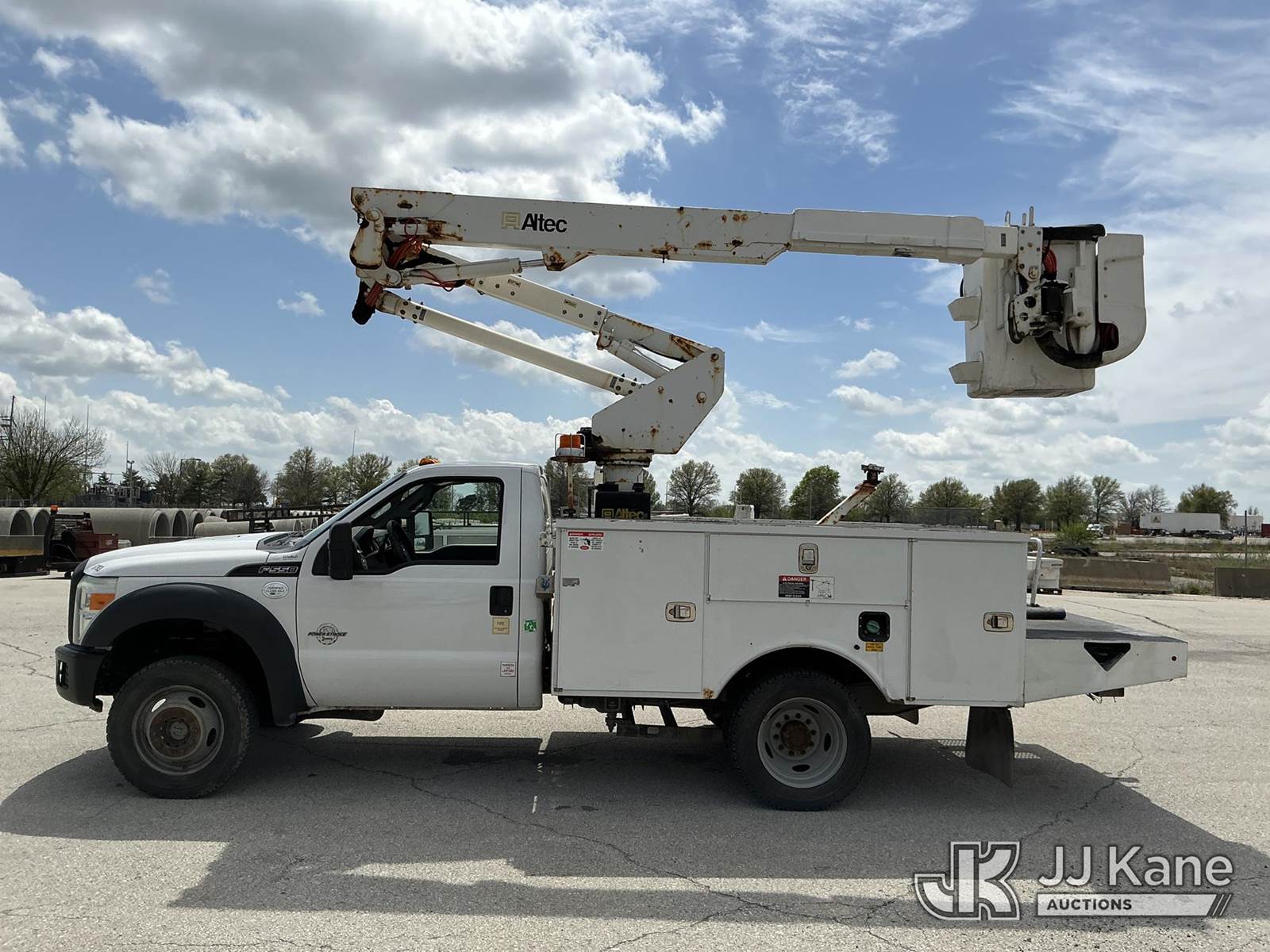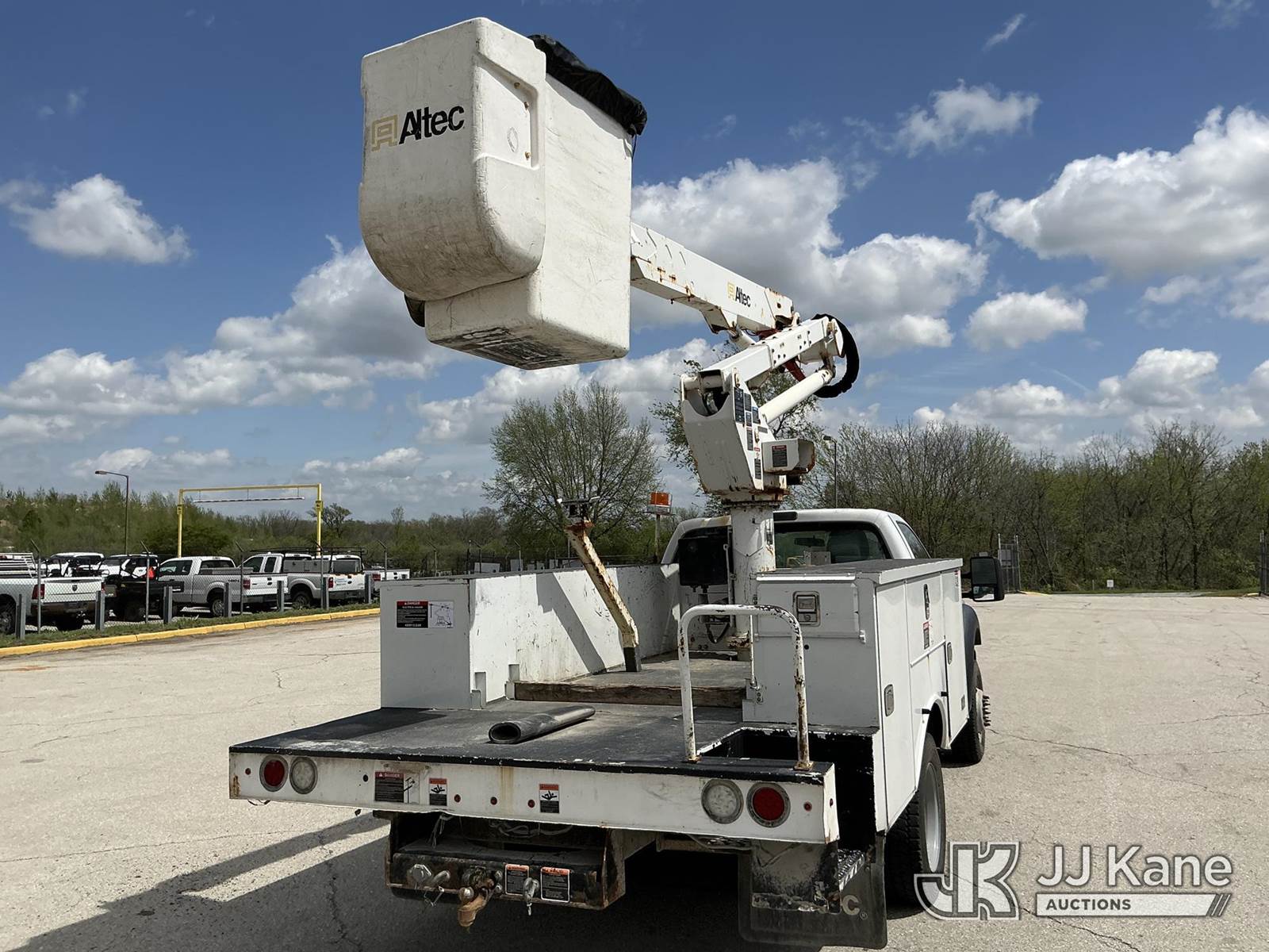 Altec AT37G, 42 ft, Articulating & Telescopic Bucket s/n 0815DE18269, with Single-Man Bucket, mounted behind cab on 2016 Ford F-550 Service Truck, 6.7L Diesel 4WD, auto, A/C, (179,120 miles) (Runs, Moves & Upper Operates) ( Dash Warning Indicator See Photo ) ) (Reads 13,566 hours) This is a Titled Item NOTE: This unit is being sold AS IS/WHERE IS via Timed Auction and is located in Kansas City, MO. Inspection & preview days for this unit are the 2 business days prior to the first day of items closing for this auction, item is located at 962 Tel Aviv Ave Kansas City, MO 64153 and hours of operations are 8a-4p. For pre-sale questions, please contact Ricky McPherson @ (816) 610-2250. (Manuals provided in cab) (Buyer is responsible for removal. Assistance by consignor or JJ Kane Auctions is not assured.)