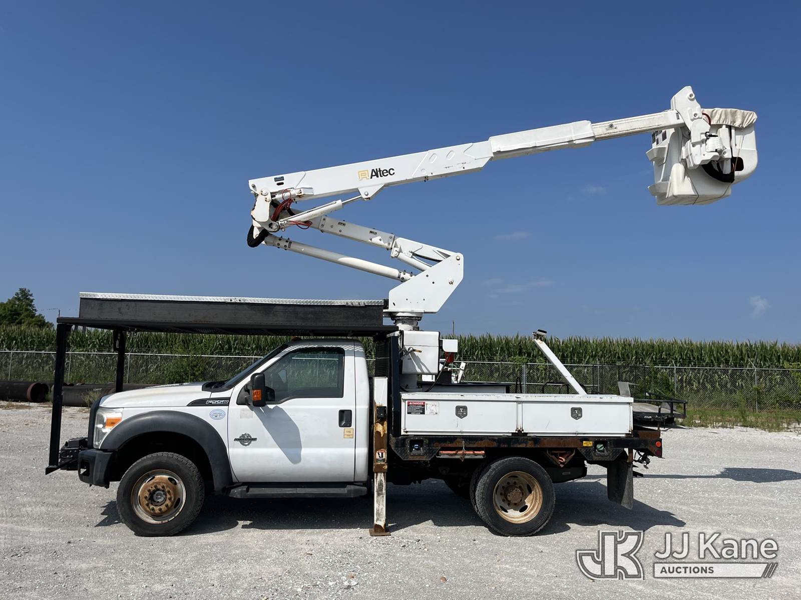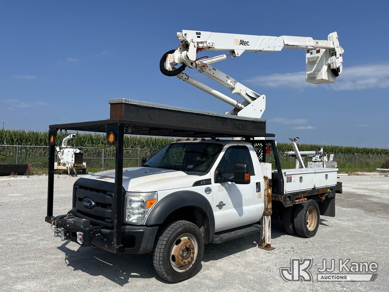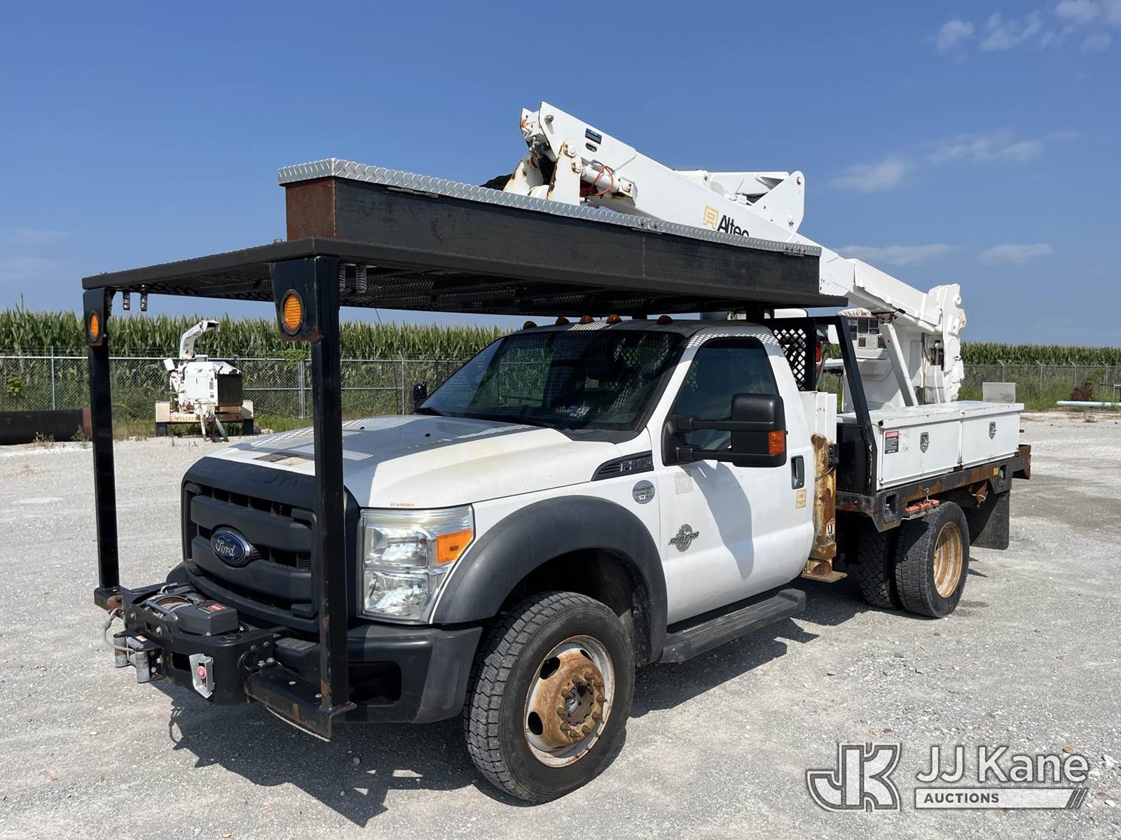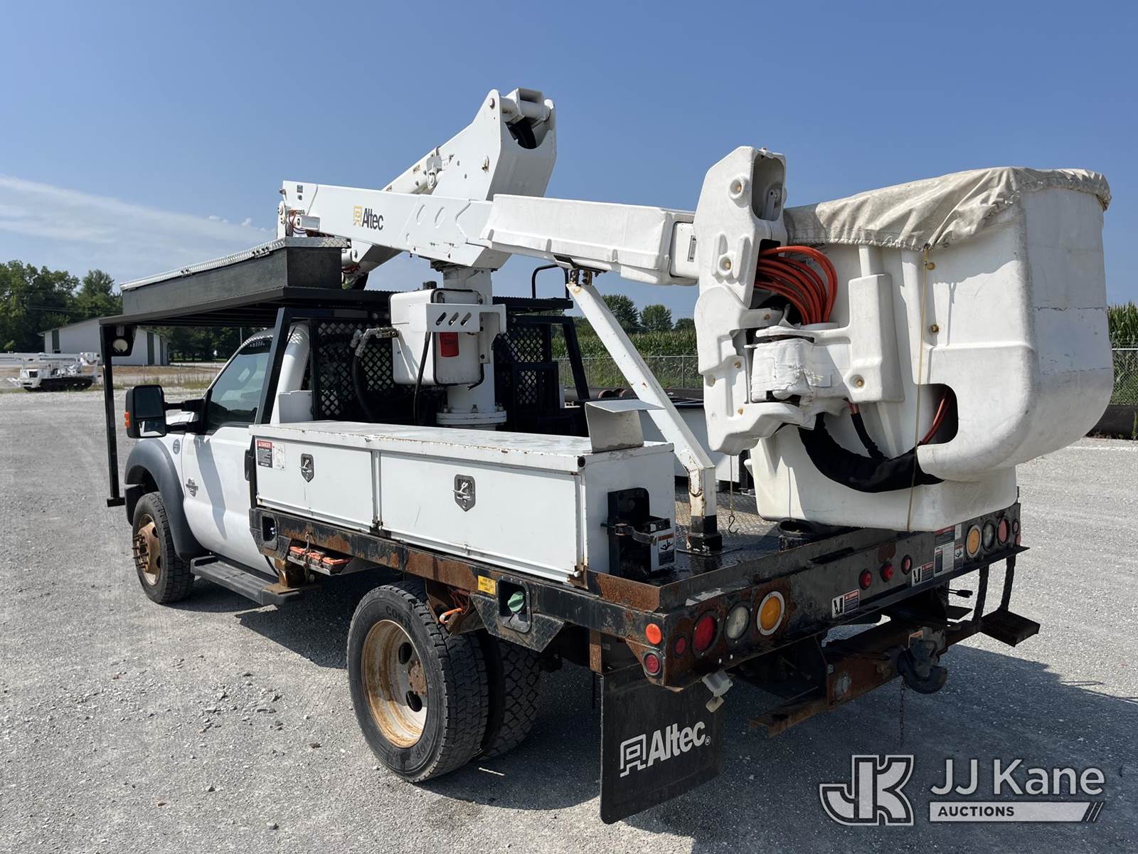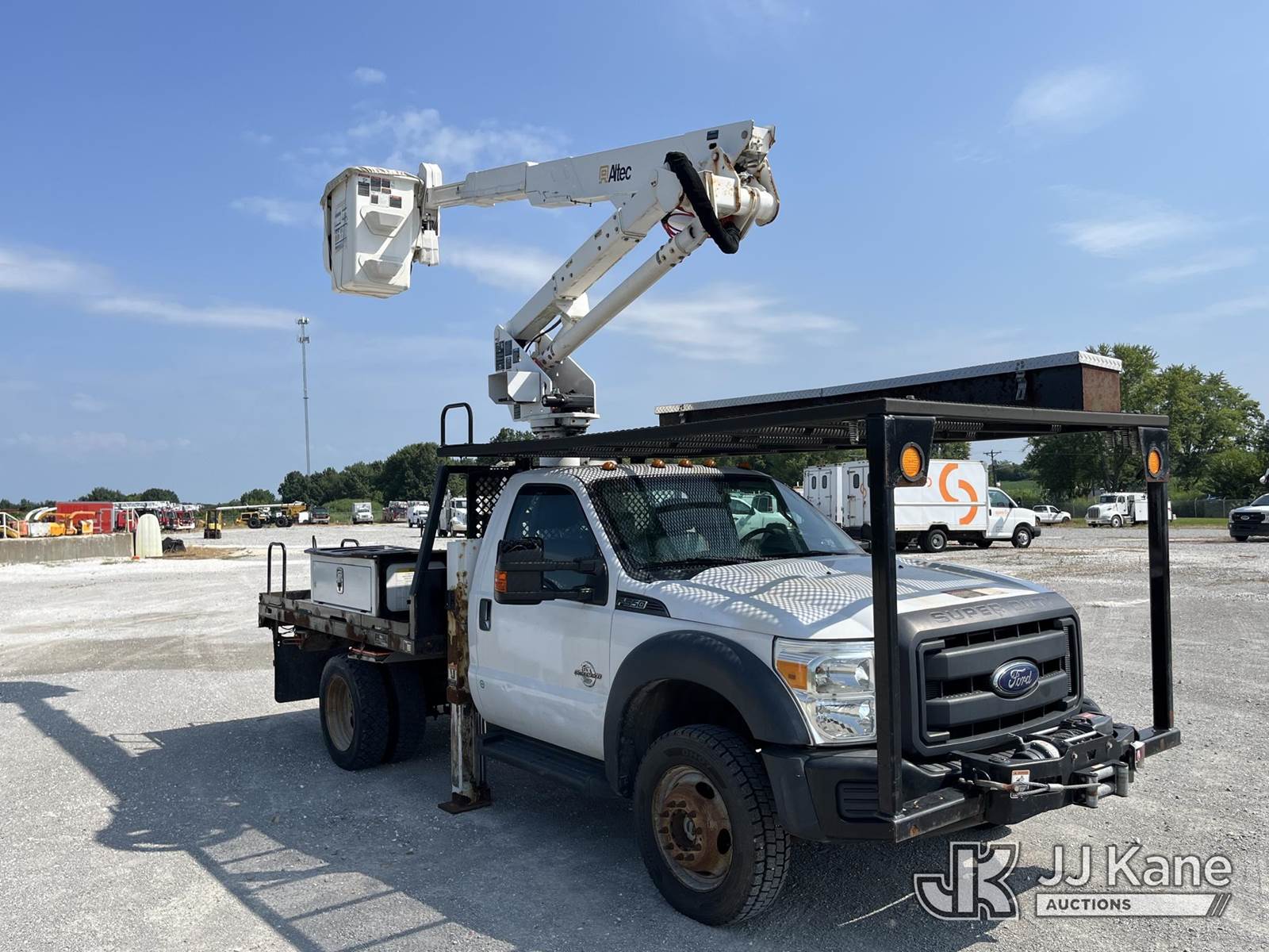 Altec AT37G, 42 ft, Articulating & Telescopic Bucket Truck s/n 0416DE18915, with single-man bucket, mounted behind cab on 2016 Ford F550 4x4 Flatbed Truck, 6.7L diesel, Auto, A/C, with front winch, (58,820 miles) (Runs, Moves, & Upper Operates) (Jump To Start, Rough Idle) (Seller States: Electrical Issues, Rust Damage) This is a Titled Item NOTE: This unit is being sold AS IS/WHERE IS via Timed Auction and is located in Hawk Point, MO. Inspection & preview days for this unit are the 2 business days prior to the first day of items closing for this auction, item is located at 25 State Highway A Hawk Point, MO 63349 and hours of operations are 8a-4p. For pre-sale questions, please contact Adam Stanek at (636) 295-1594. (Manuals provided in cab) (Buyer is responsible for removal. Assistance by consignor or JJ Kane Auctioneers is not assured.)