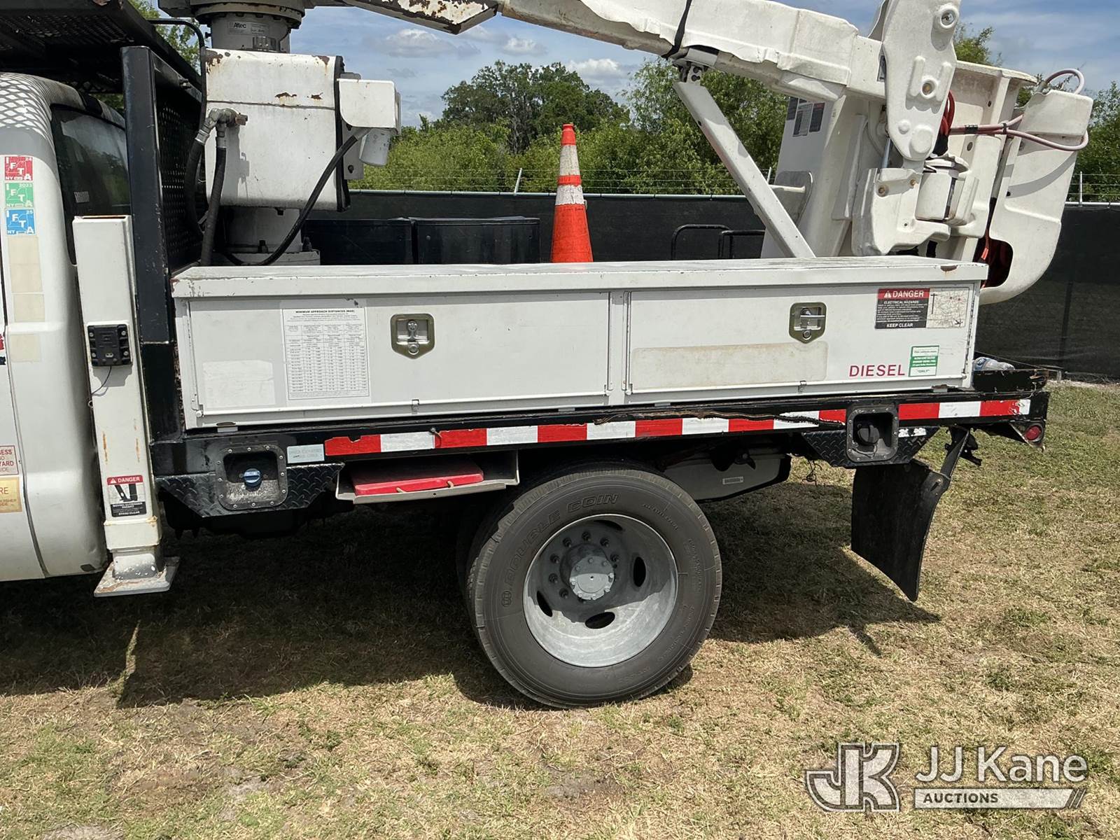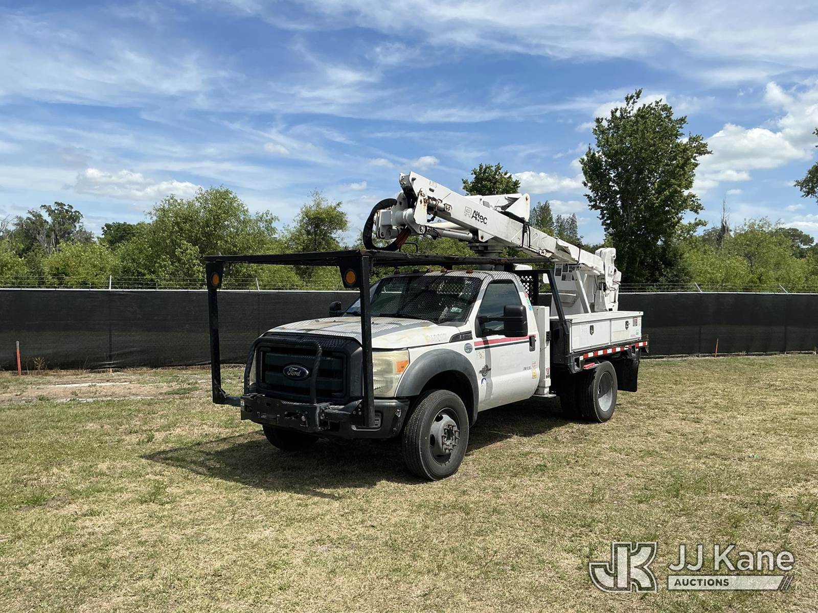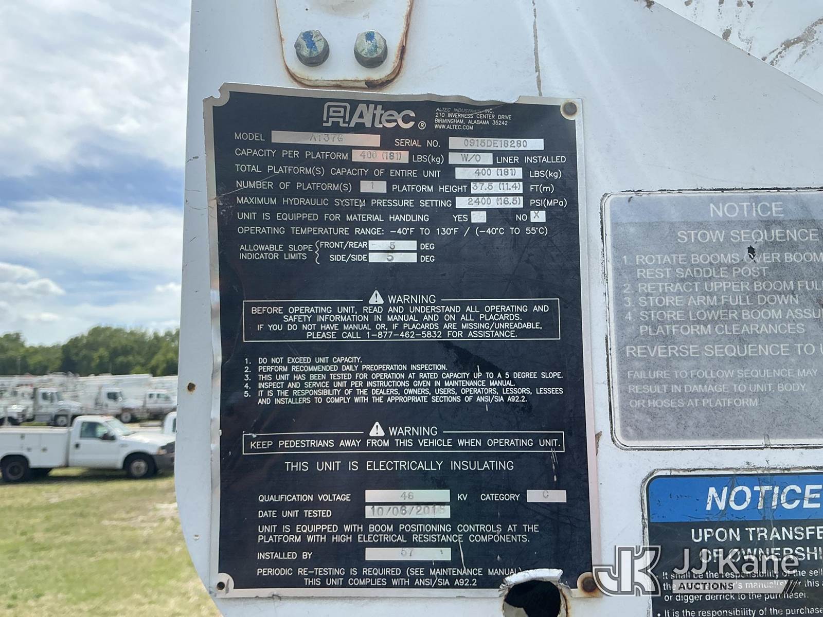 Altec AT37G, 42 ft, Articulating & Telescopic Bucket Truck s/n 0915DE18280, with single-man bucket, mounted behind cab on 2016 Ford F550 4x4 Flatbed/Service Truck, 6.7L diesel, Auto, A/C, (89,456 miles) (Runs, Moves, Operating Condition Unknown)(Jump To Start, Check Engine Light On) (The manufacturer has notified JJ Kane that this equipment is subject to an open recall. CSN 855 Fuel Line and Brake Line Inspection The equipment should not be operated until this is addressed. Buyer is responsible for reviewing the recall notice and contacting the manufacturer to schedule the recommended corrective actions. Associated costs may be covered by the manufacturer in some cases.) This is a Titled Item NOTE: This unit is being sold AS IS/WHERE IS via Timed Auction and is located in Thonotosassa, FL. Inspection & preview days for this unit are the 2 business days prior to the first day of items closing for this auction, item is located at 11720 N US 301 Thonotosassa, Fl 33592 and hours of operations are 8a-4p. For pre-sale questions, please contact Office Staff @ (813) 986-2485. (Missing manuals, See Auction Company for Manufacturers Information to obtain manuals) (Buyer is responsible for removal. Assistance by consignor or JJ Kane Auctions is not assured.)