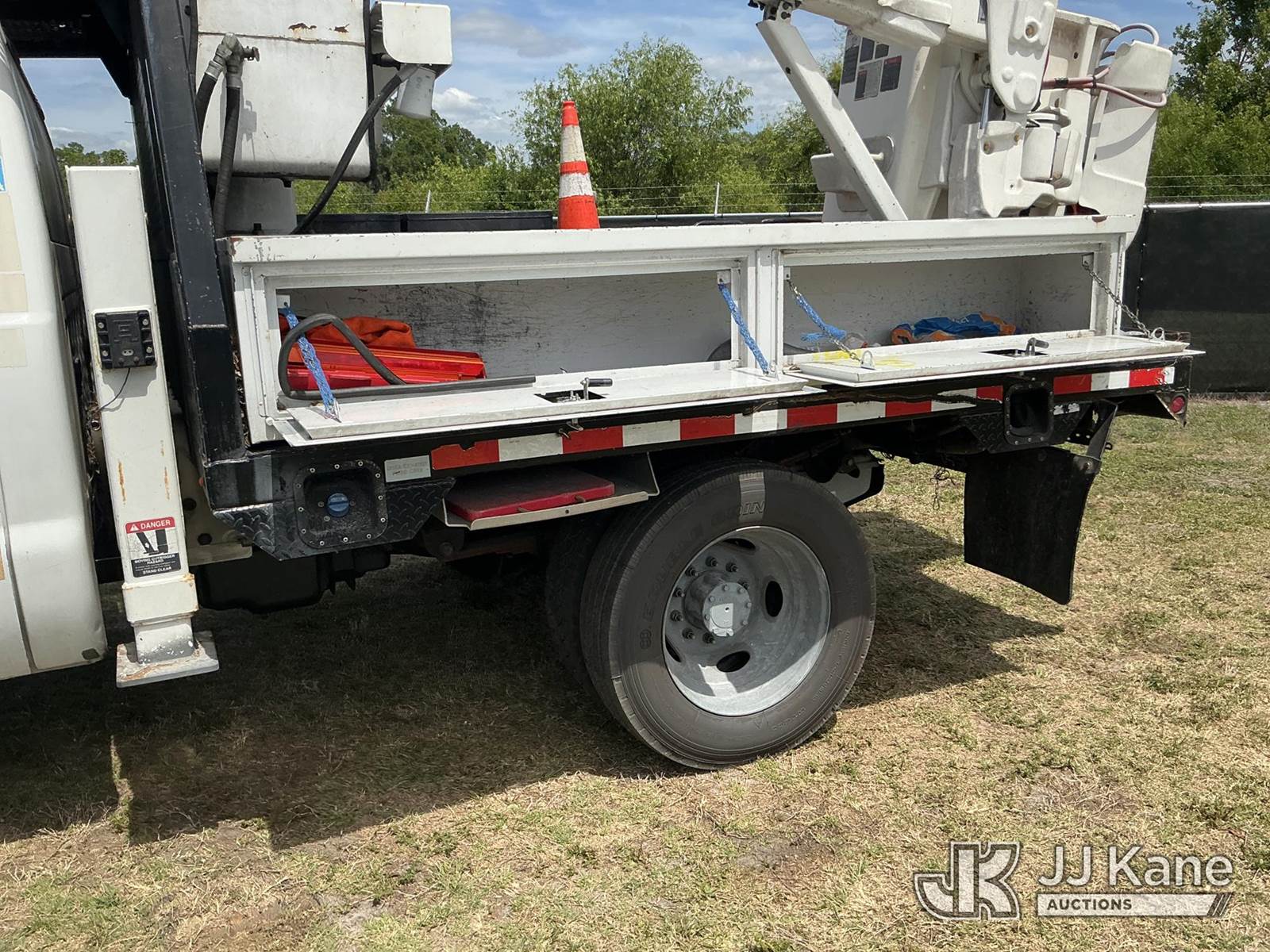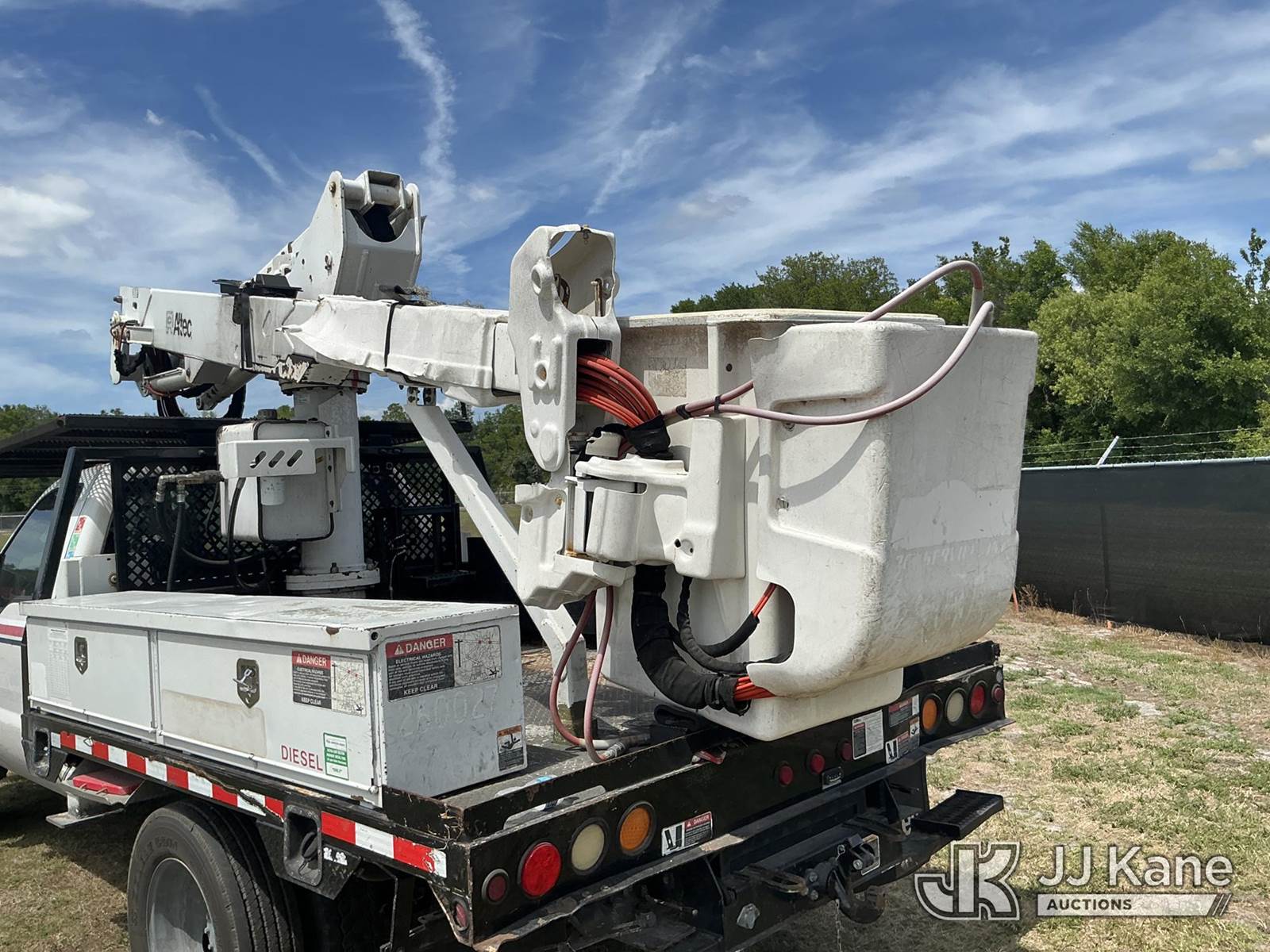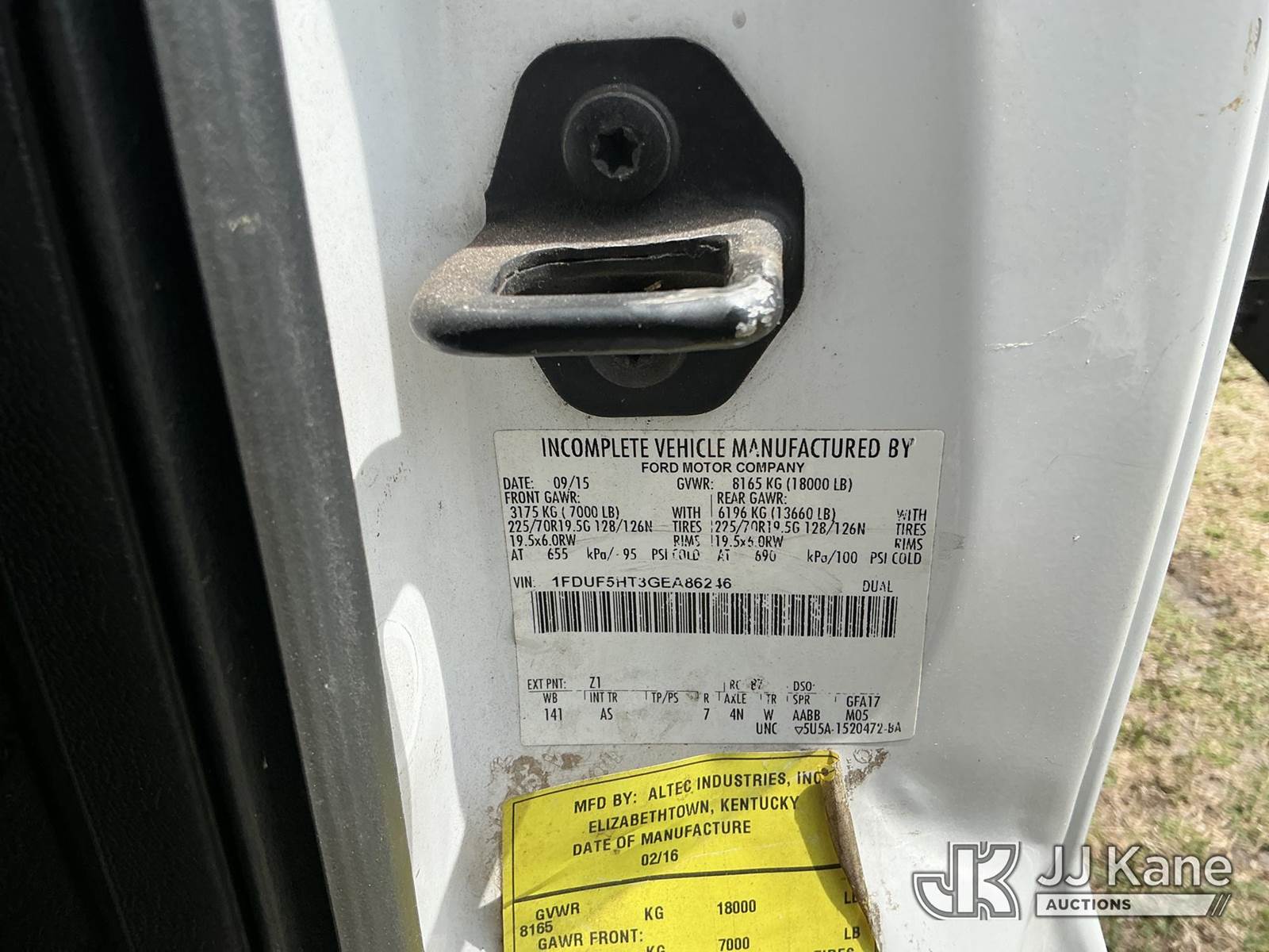 Altec AT37G, 42 ft, Articulating & Telescopic Bucket Truck s/n 0915DE18280, with single-man bucket, mounted behind cab on 2016 Ford F550 4x4 Flatbed/Service Truck, 6.7L diesel, Auto, A/C, (89,456 miles) (Runs, Moves, Operating Condition Unknown)(Jump To Start, Check Engine Light On) (The manufacturer has notified JJ Kane that this equipment is subject to an open recall. CSN 855 Fuel Line and Brake Line Inspection The equipment should not be operated until this is addressed. Buyer is responsible for reviewing the recall notice and contacting the manufacturer to schedule the recommended corrective actions. Associated costs may be covered by the manufacturer in some cases.) This is a Titled Item NOTE: This unit is being sold AS IS/WHERE IS via Timed Auction and is located in Thonotosassa, FL. Inspection & preview days for this unit are the 2 business days prior to the first day of items closing for this auction, item is located at 11720 N US 301 Thonotosassa, Fl 33592 and hours of operations are 8a-4p. For pre-sale questions, please contact Office Staff @ (813) 986-2485. (Missing manuals, See Auction Company for Manufacturers Information to obtain manuals) (Buyer is responsible for removal. Assistance by consignor or JJ Kane Auctions is not assured.)