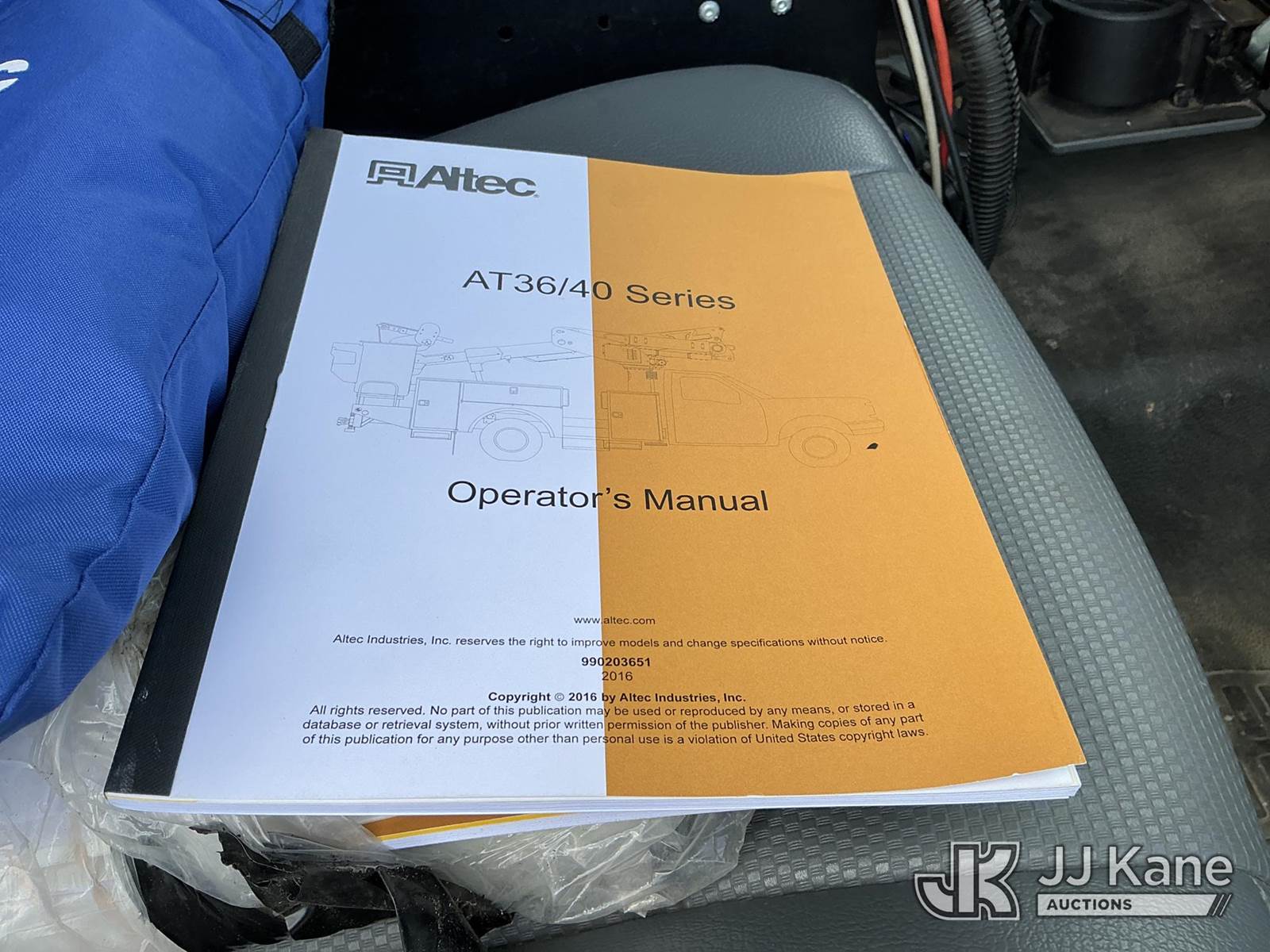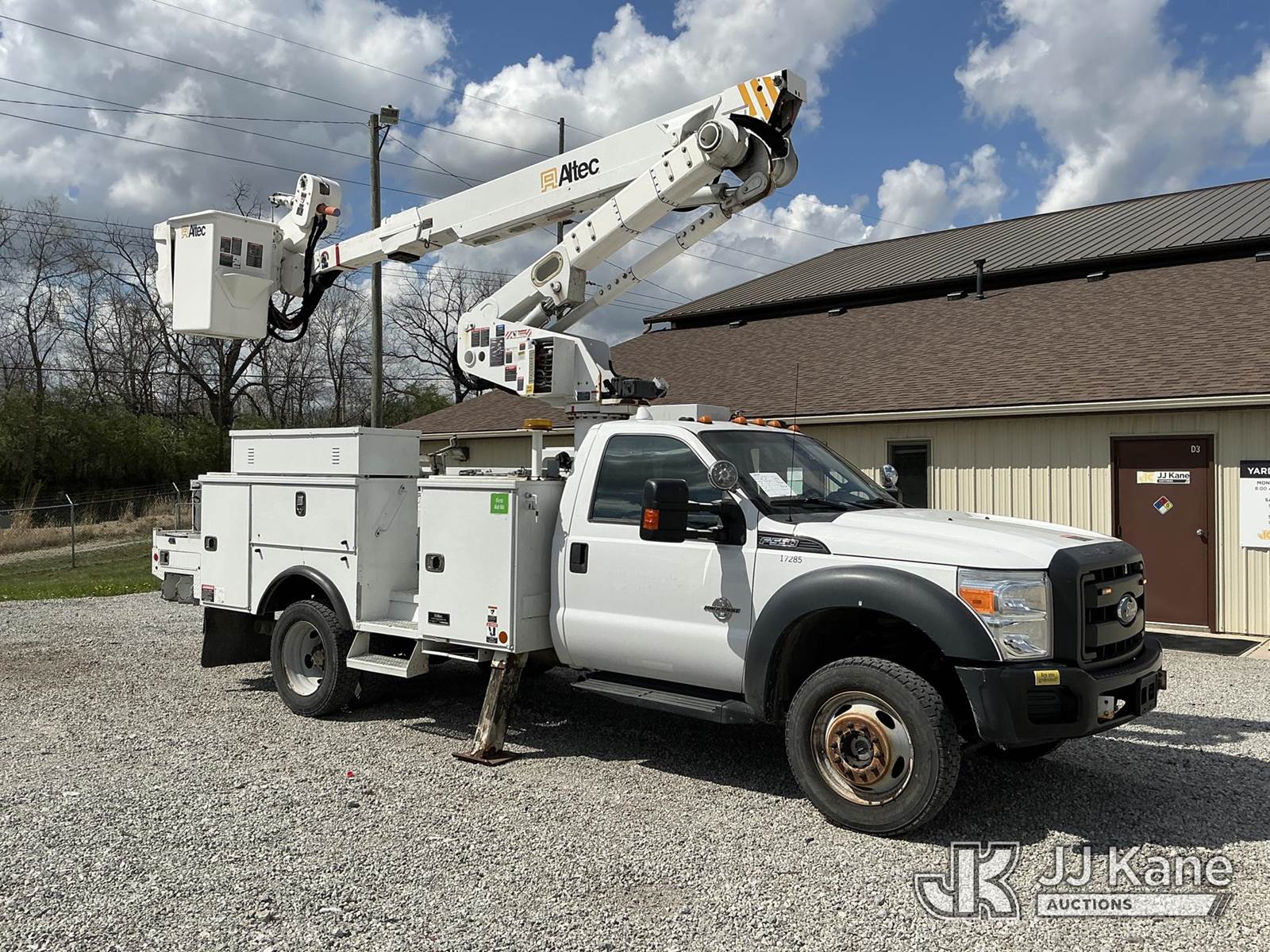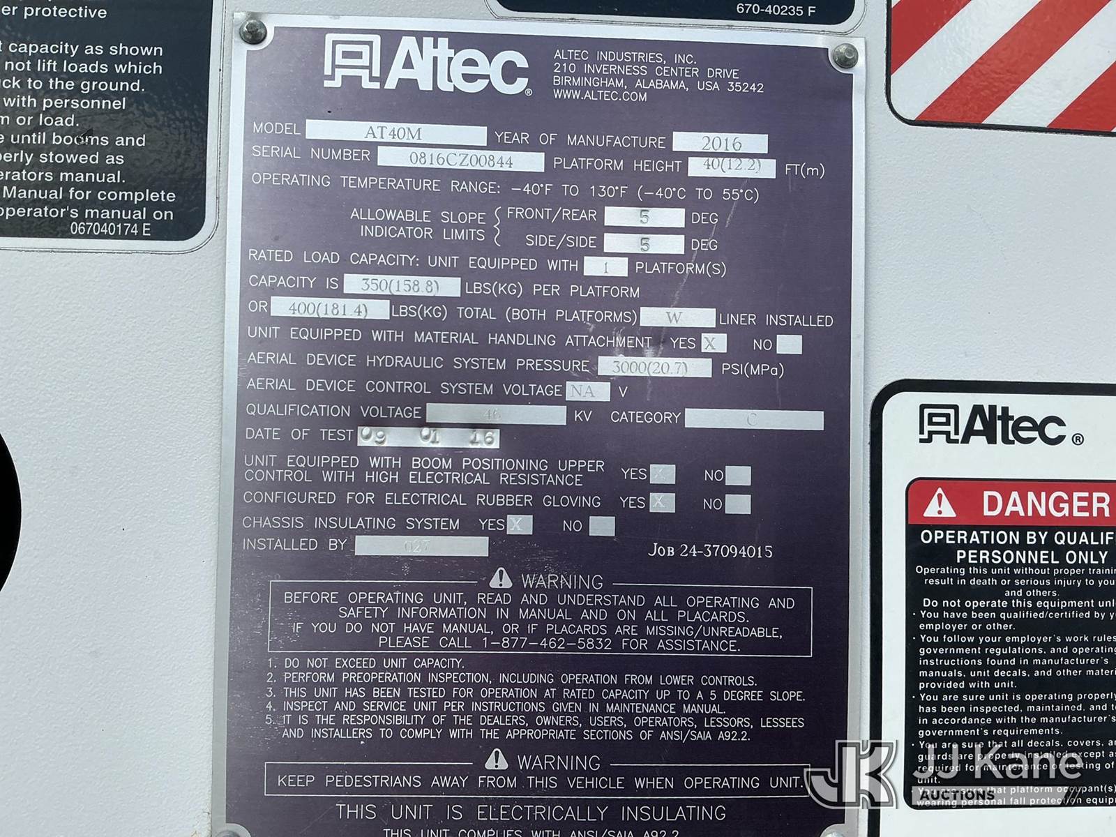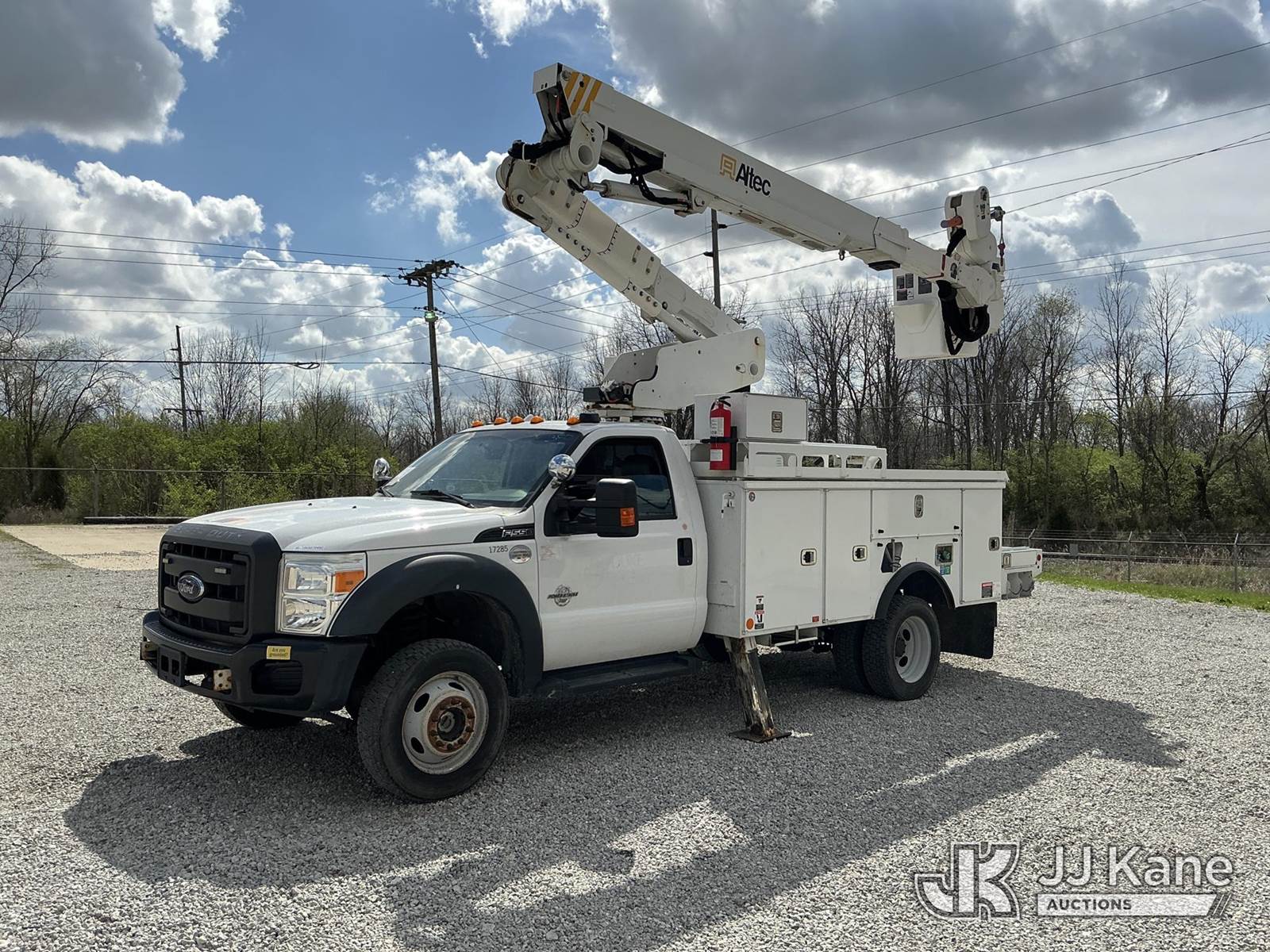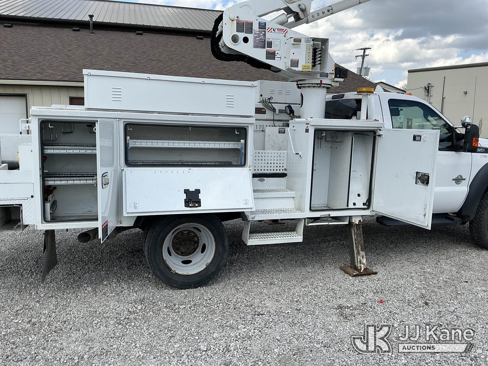 Altec AT40-MH, 45 ft, Articulating & Telescopic Material Handling Bucket Truck s/n 0816CZ00844, with single-man bucket & 2 hyd outriggers, mounted behind cab on 2016 Ford F550 4x4 Service Truck, 6.7L V8 OHV 16V Diesel, Auto, A/C, with inverter, (124,147 miles) (Runs, Moves & Upper Operates) (Paint Damage) (Reads 9,086 hours) This is a Titled Item NOTE: This unit is being sold AS IS/WHERE IS via Timed Auction and is located in Fort Wayne, IN. Inspection & preview days for this unit are the 2 business days prior to the first day of items closing for this auction, item is located at 3020 Commercial Rd Fort Wayne, IN 46809 and hours of operations are 8a-4p. For pre-sale questions, please contact Eric Mcintosh @ (260) 205-2483 (Manuals provided in cab) (Buyer is responsible for removal. Assistance by consignor or JJ Kane Auctions is not assured.)