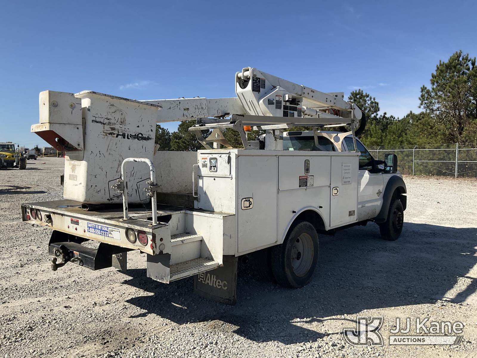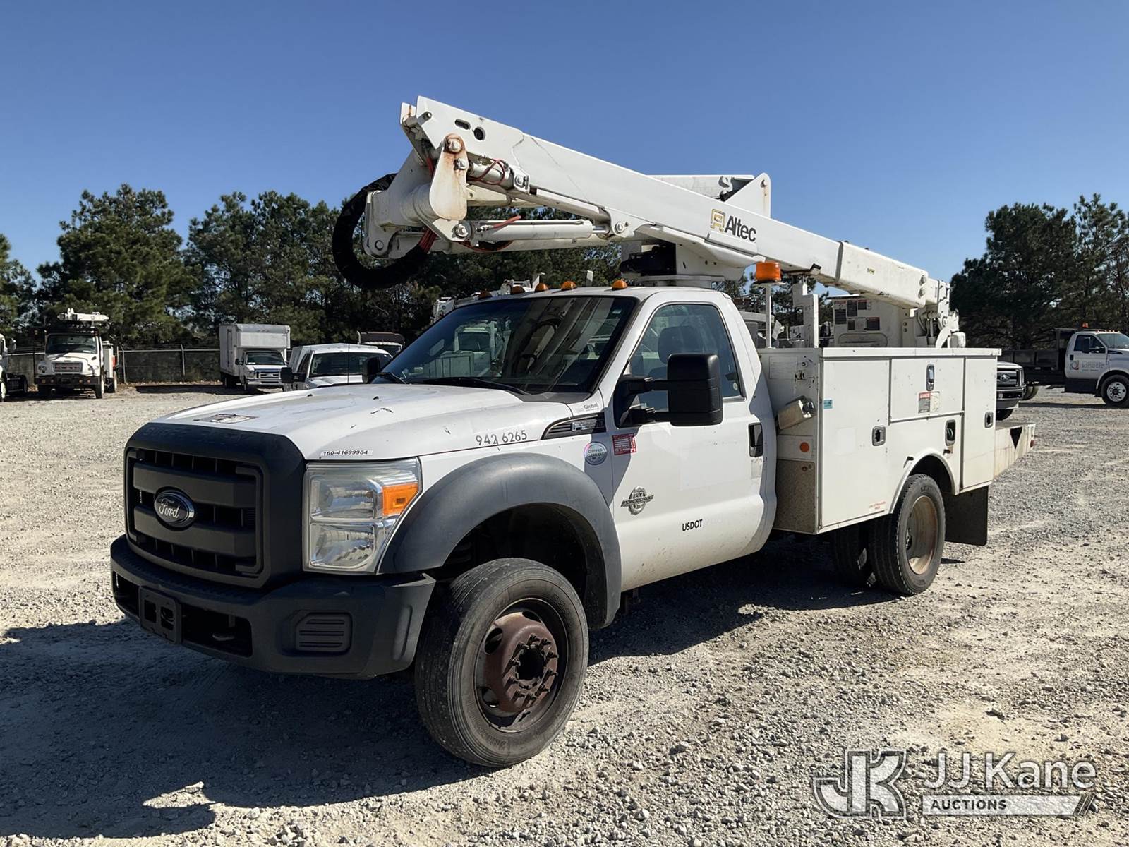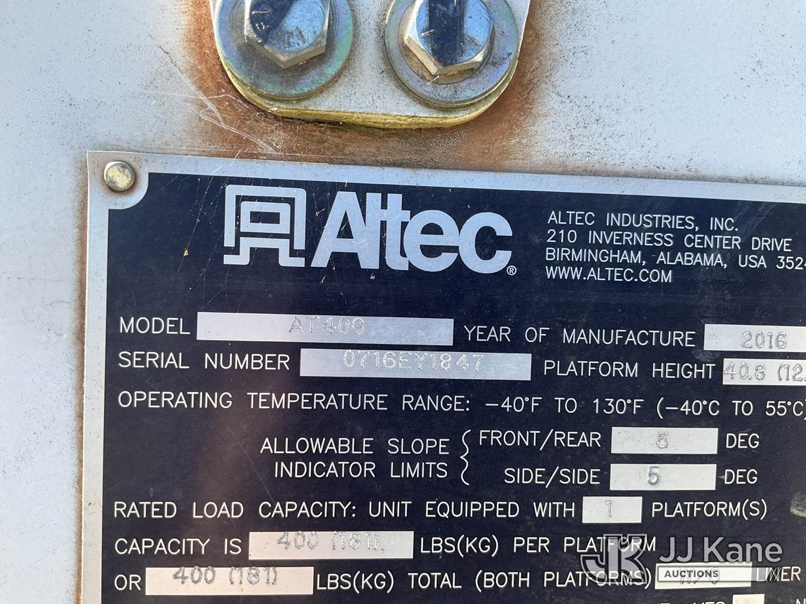 Altec AT40G, 45 ft, Articulating & Telescopic Bucket s/n 0716EY1847, with single-man bucket, mounted behind cab on 2016 Ford F-550 Service Truck, 6.7L V8 OHV 16V DIESEL RWD, Auto, A/C, (164,818 miles) (Runs & Moves) (Upper Condition Unknown, Check Engine Light On, Body/Paint Damage, Do Not Operate Tag) This is a Titled Item NOTE: This unit is being sold AS IS/WHERE IS via Timed Auction and is located in Villa Rica, GA. Inspection & preview days for this unit are the 2 business days prior to the first day of items closing for this auction, item is located at 100 Liberty Rd Villa Rica, GA 30180 and hours of operations are 8a-4p. For pre-sale questions, please contact Office Staff @ (470) 590-8453. (Manuals provided in cab) (Buyer is responsible for removal. Assistance by consignor or JJ Kane Auctions is not assured.)