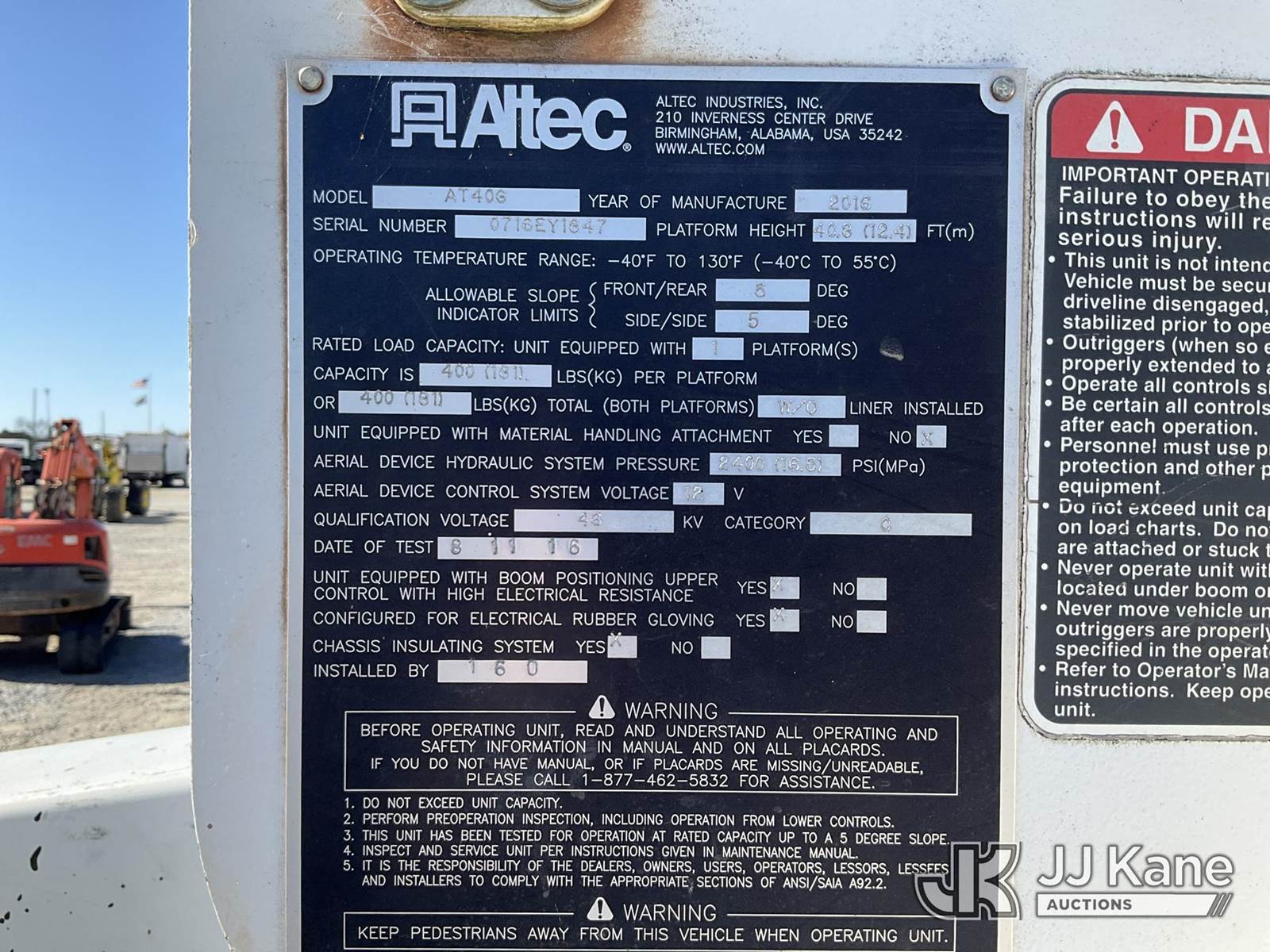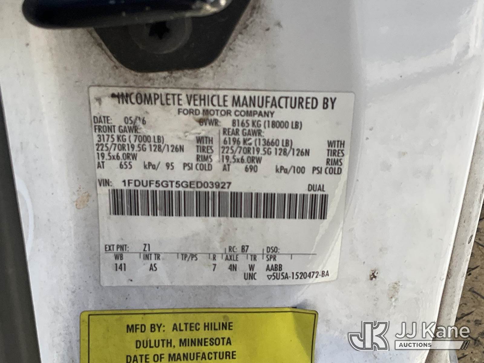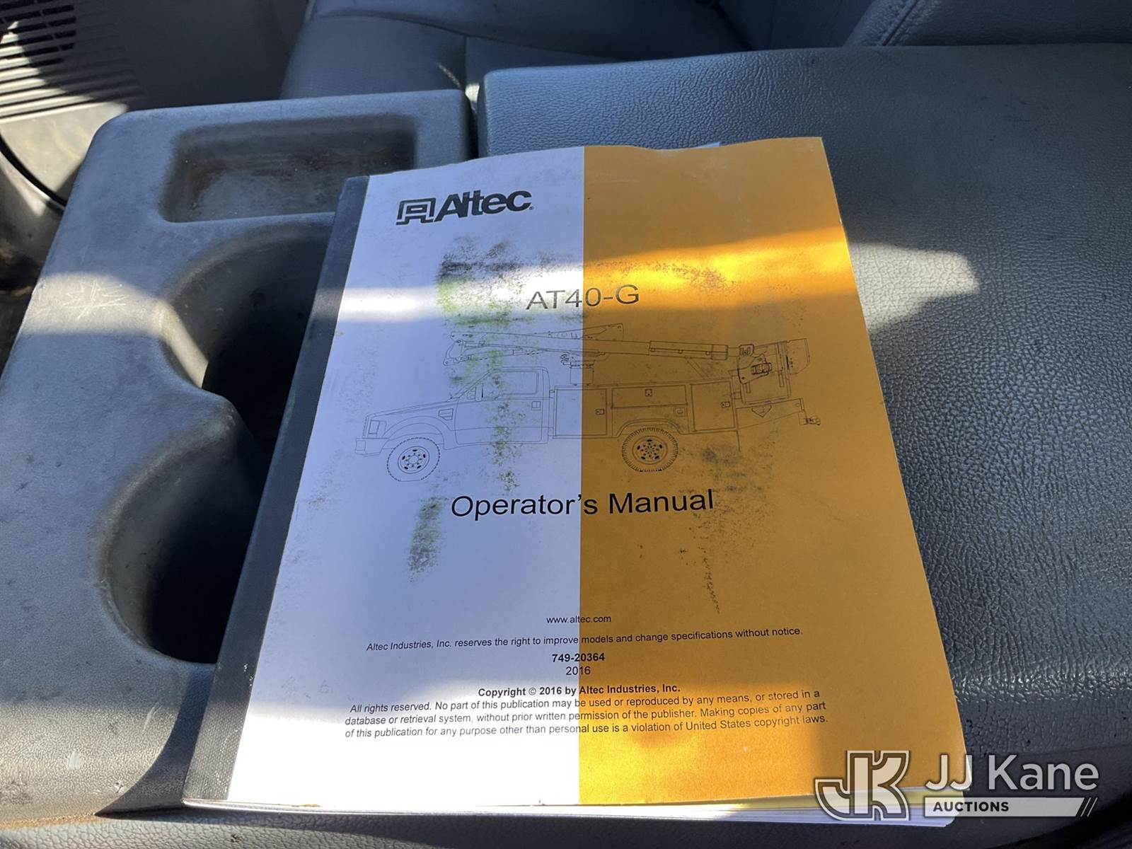Altec AT40G, 45 ft, Articulating & Telescopic Bucket s/n 0716EY1847, with single-man bucket, mounted behind cab on 2016 Ford F-550 Service Truck, 6.7L V8 OHV 16V DIESEL RWD, Auto, A/C, (164,818 miles) (Runs & Moves) (Upper Condition Unknown, Check Engine Light On, Body/Paint Damage, Do Not Operate Tag) This is a Titled Item NOTE: This unit is being sold AS IS/WHERE IS via Timed Auction and is located in Villa Rica, GA. Inspection & preview days for this unit are the 2 business days prior to the first day of items closing for this auction, item is located at 100 Liberty Rd Villa Rica, GA 30180 and hours of operations are 8a-4p. For pre-sale questions, please contact Office Staff @ (470) 590-8453. (Manuals provided in cab) (Buyer is responsible for removal. Assistance by consignor or JJ Kane Auctions is not assured.)