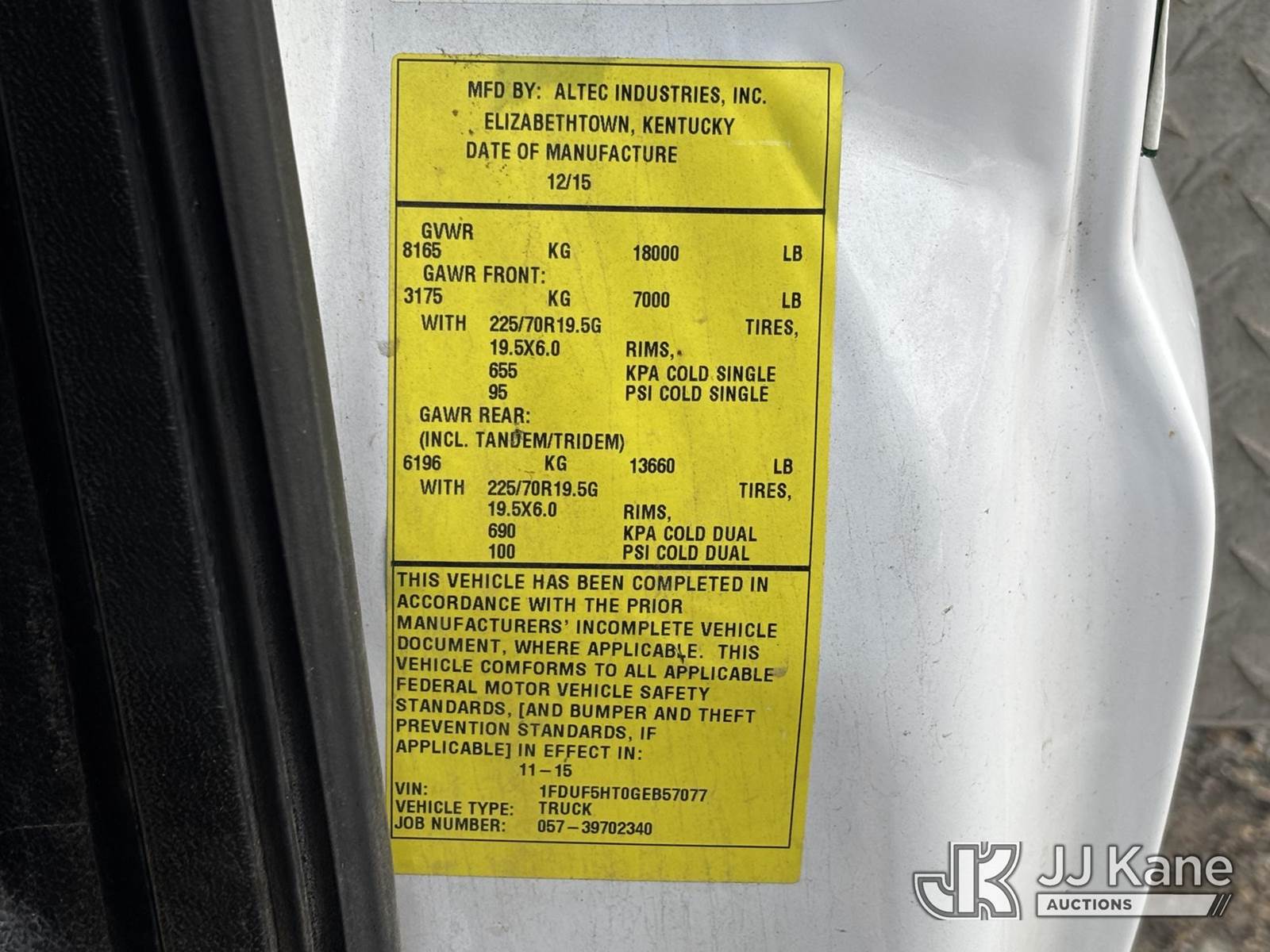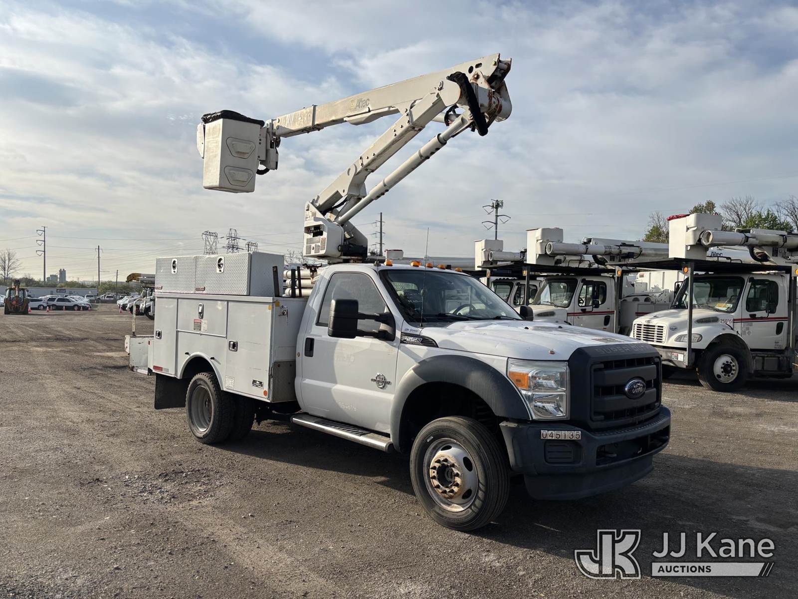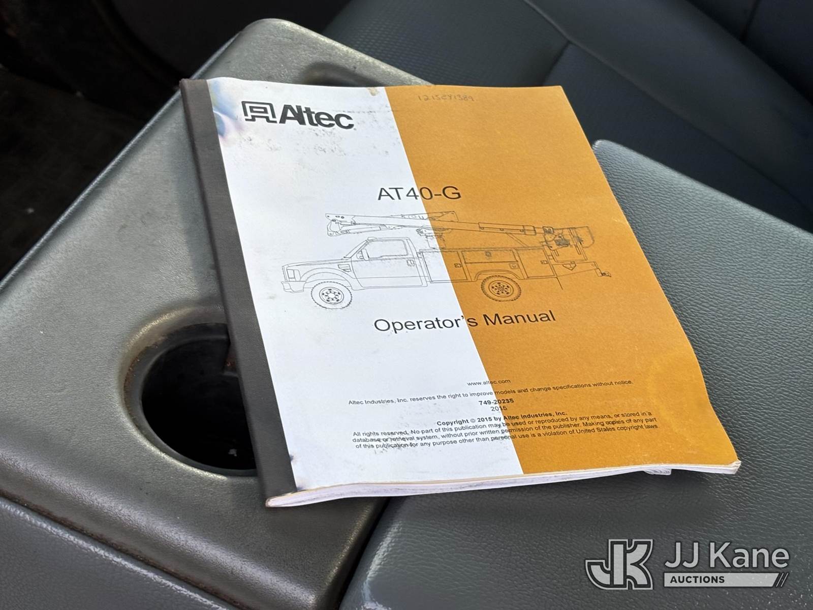 Altec AT40G, 45 ft, Articulating & Telescopic Bucket Truck s/n 1215EY1390, with Single-Man Bucket, mounted behind cab on 2016 Ford F550 4x4 Service Truck, 6.7L diesel, Auto, A/C, (99,013 miles) (Runs Moves & Upper Operates) (Jump To Start, Body Damage, Wrench Light On) This is a Titled Item NOTE: This unit is being sold AS IS/WHERE IS via Timed Auction and is located in Plymouth Meeting, PA. Inspection & preview days for this unit are the 2 business days prior to the first day of items closing for this auction, item is located at 1402 Conshohocken Rd Plymouth Meeting, PA 19462 and hours of operations are 8a-4p. For pre-sale questions, please contact Bruce Thomas @ (267) 887-0392 or bruce.thomas.jr@jjkane.com. (Manuals provided in cab) (Buyer is responsible for removal. Assistance by consignor or JJ Kane Auctions is not assured.)