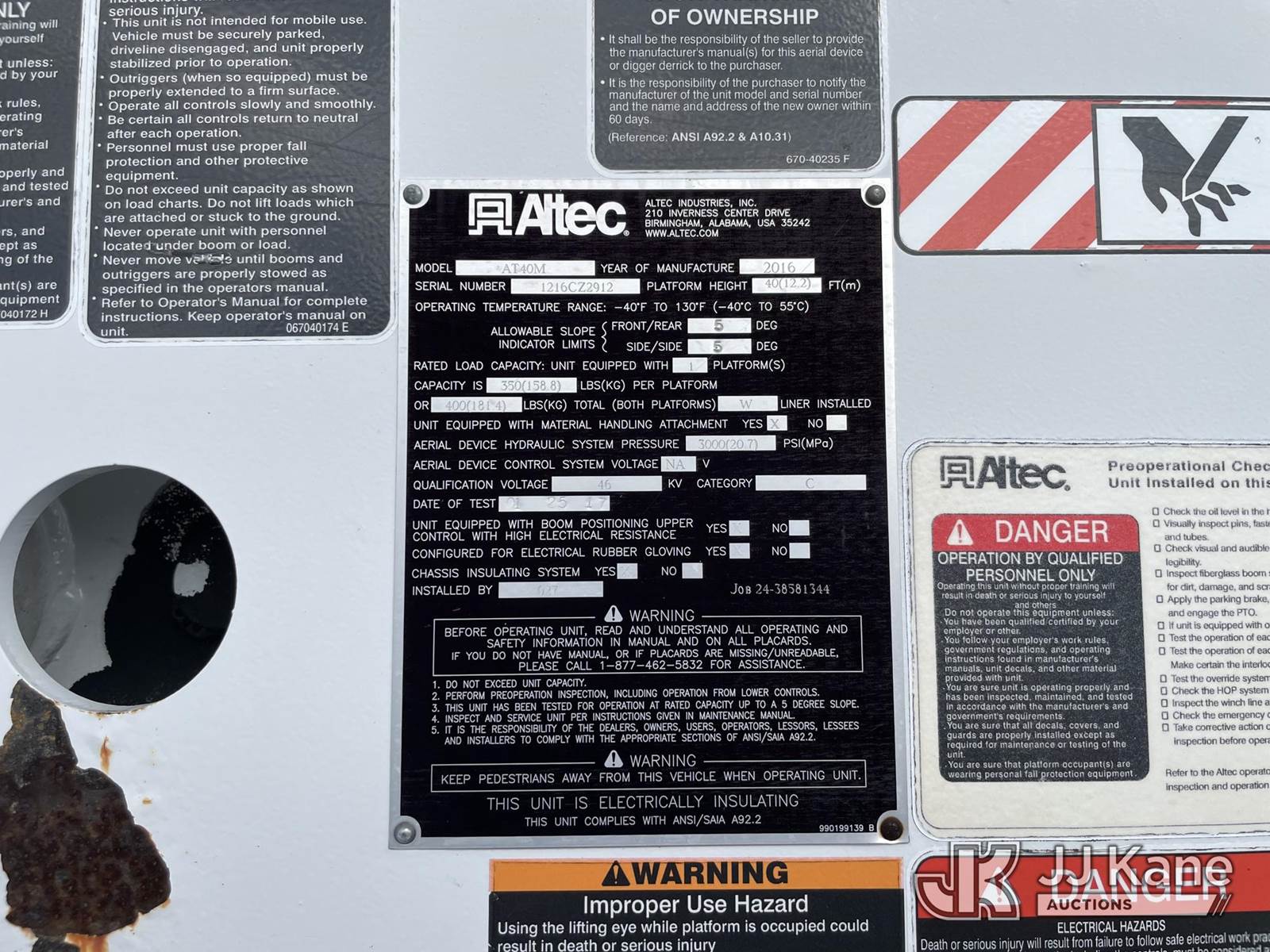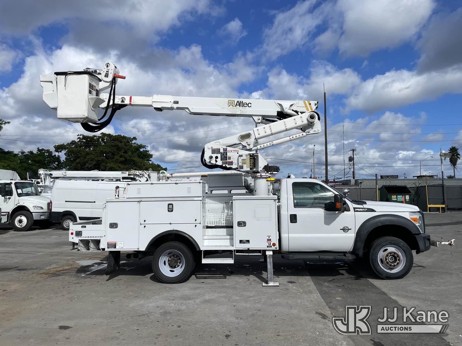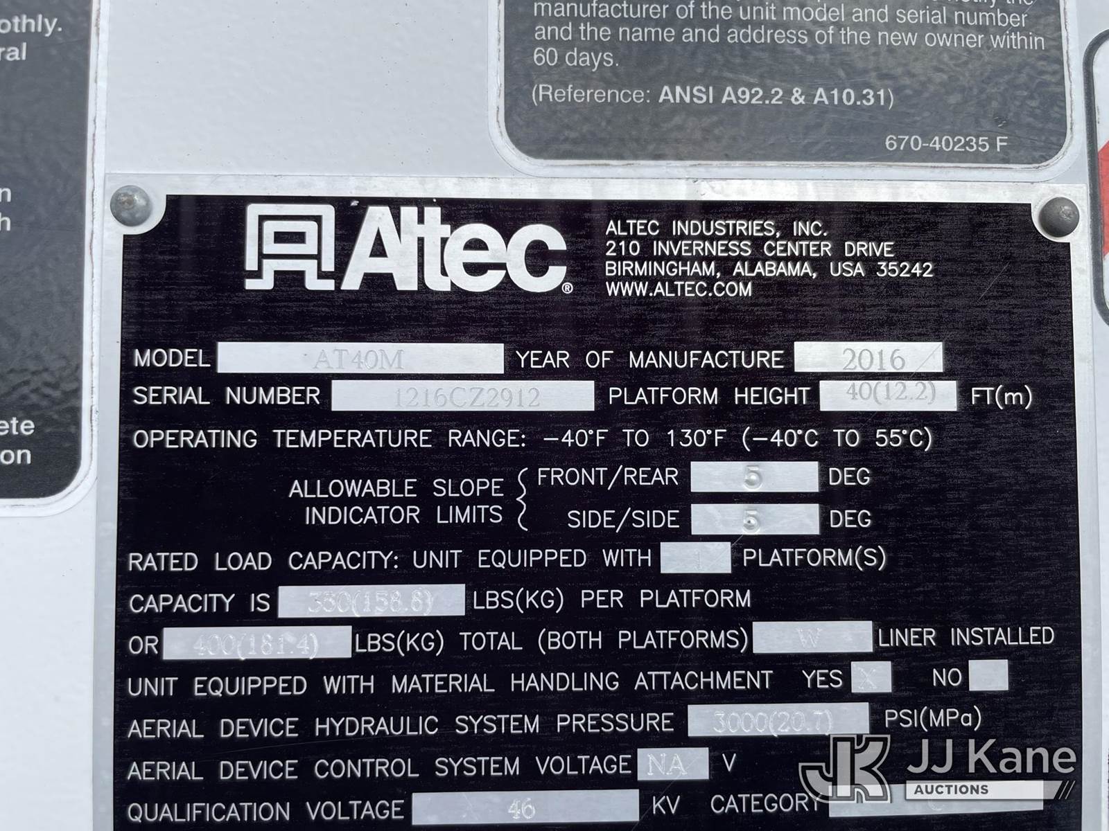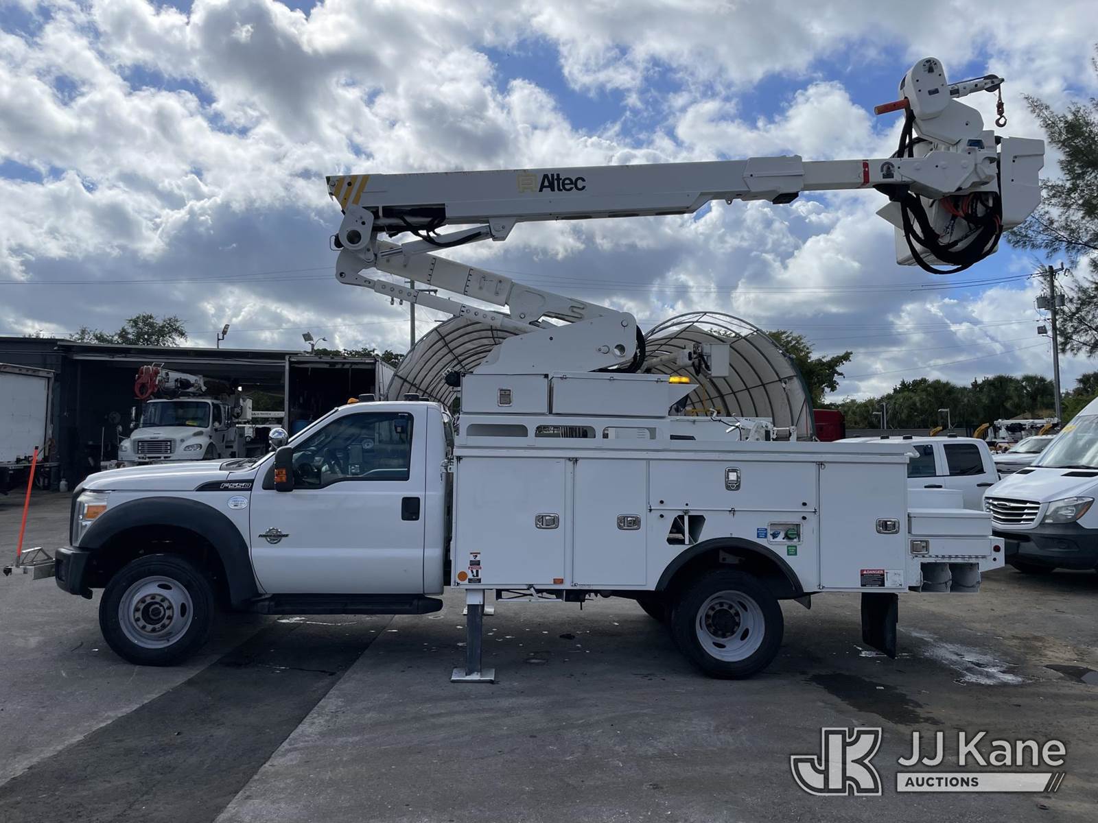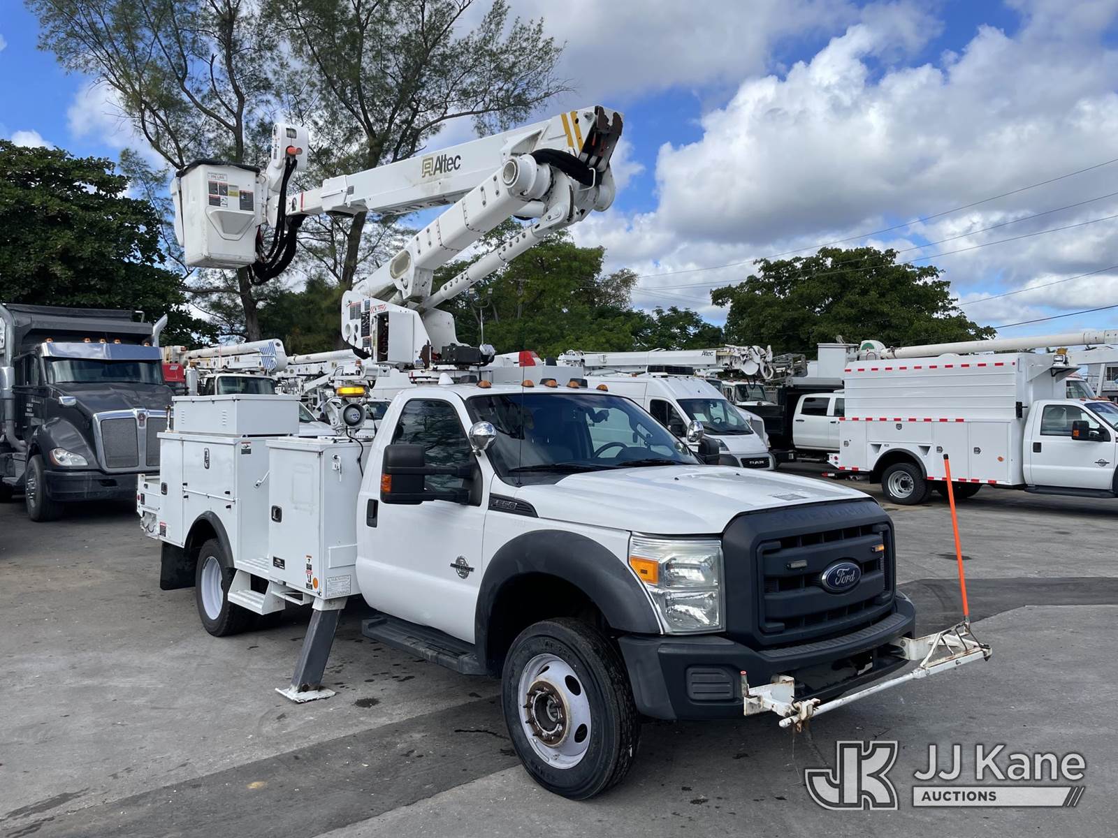 Altec AT40M, 45 ft, Articulating & Telescopic Material Handling Bucket Truck s/n 1216CZ2912, with 2 hyd outriggers, single man bucket, mounted behind cab on 2016 Ford F-550 Service Truck, 6.7L Diesel Auto, 4wd, A/C, (192,474 miles) (Runs, Moves & Upper Operates) (Check Engine Light on, Jump To Start) This is a Titled Item NOTE: This unit is being sold AS IS/WHERE IS via Timed Auction and is located in Miami, FL. For more information & removal arrangements please contact Gregg Martini @ 561-519-5775. (Missing manuals, See Auction Company for Manufacturers Information to obtain manuals) (Buyer is responsible for removal. Assistance by consignor or JJ Kane Auctioneers is not assured.)