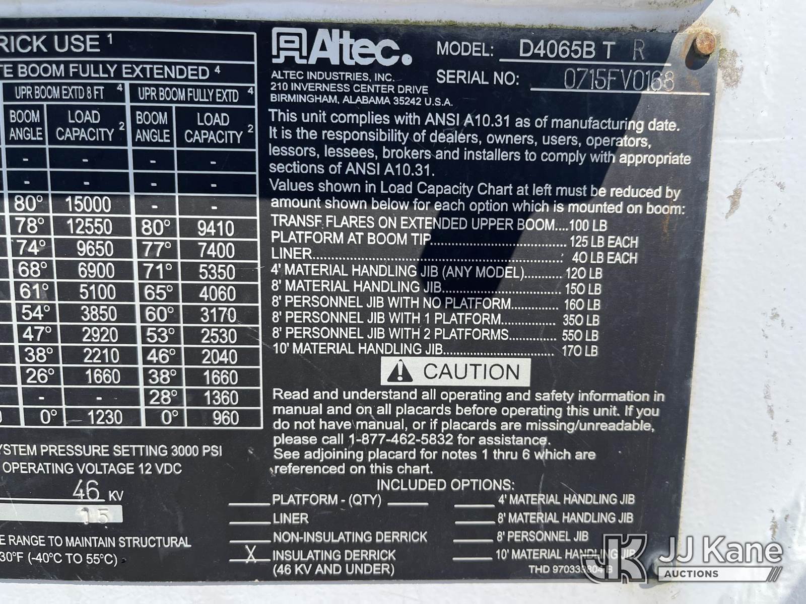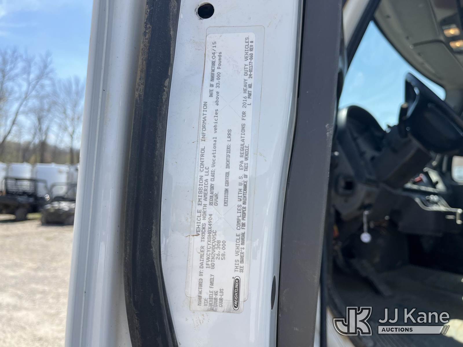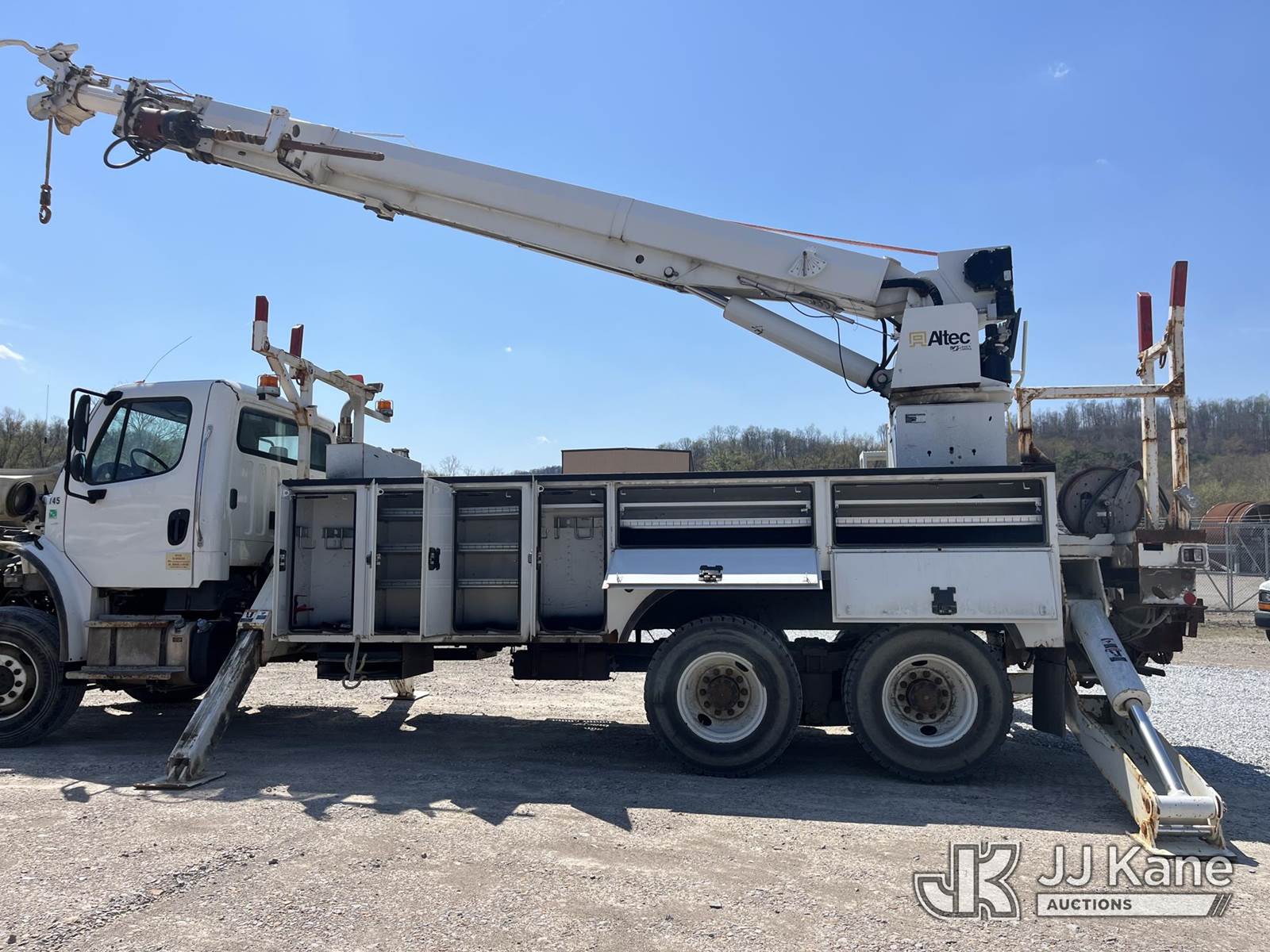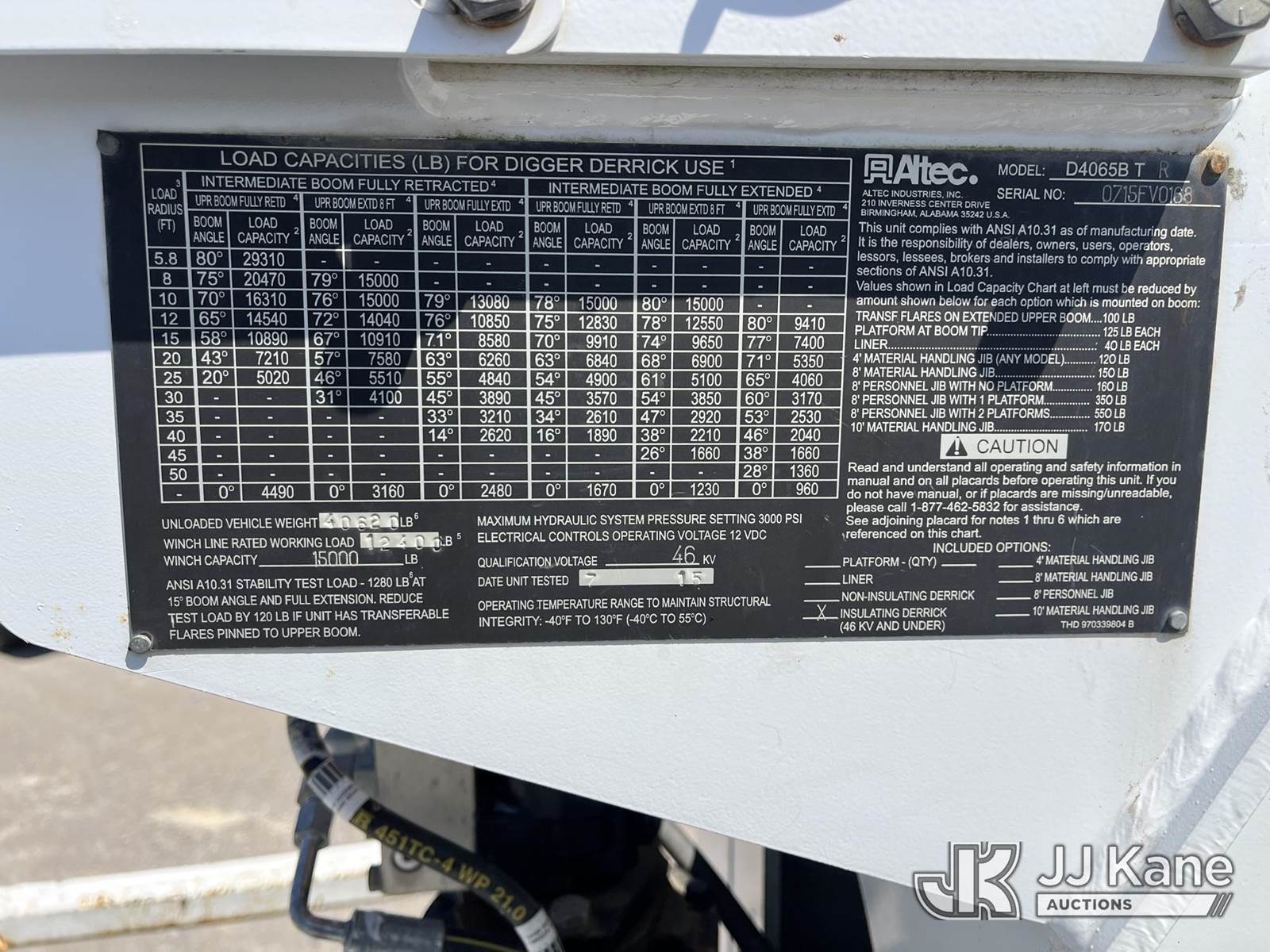 Altec D4065B-TR, 29,310 Lb Digger Derrick s/n 0715FV0168, with 65ft sheave height, 2 speed dig, 3 section hyd boom, riding console, heel winch, 4 hydraulic outriggers, rear mounted on 2016 Freightliner M2 106 Utility Truck, 8.9L L6 Diesel 6X6, Auto, A/C, (18,083 miles) (Runs, Moves & Operates) This is a Titled Item NOTE: This unit is being sold AS IS/WHERE IS via Timed Auction and is located in Smock, PA. Inspection & preview days for this unit are the 2 business days prior to the first day of items closing for this auction, item is located at 1000 Franklin Dr Smock, PA 15480 and hours of operations are 7:00 am to 3:30 pm. For pre-sale questions, please contact Alaina White @ (724) 562-2575 or Alaina.White@JJKane.com. (Manuals provided in cab) (Buyer is responsible for removal. Assistance by consignor or JJ Kane Auctions is not assured.)