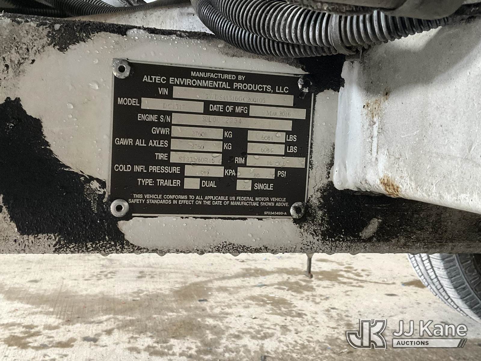 2016 Altec DC1317 Chipper (13in Disc), s/n 5WDS41516GC200105, 4-cyl gas, trailer mtd (No Title) (Runs, Jump Box Required To Run, Operational Condition Unknown) (Removal is by Appointment Only, Buyer MUST make a appointment prior to picking up, Buyer/Transporter Must have PAID IN FULL RELEASE. No onsite assistance available, Please Come prepared.) (Reads 1,028 hours) NOTE: This unit is being sold AS IS/WHERE IS via Timed Auction and is located in Hagerstown, MD. Inspection & preview days for this unit are by appointment only; please contact us at contact@jjkane.com or 84-Go-JJKane for more details. For pre-sale questions, please contact the on-site office @ (301) 895-7777 or Kevin.Waggoner@JJKane.com. (Buyer is responsible for removal. Assistance by consignor or JJ Kane Auctions is not assured.)