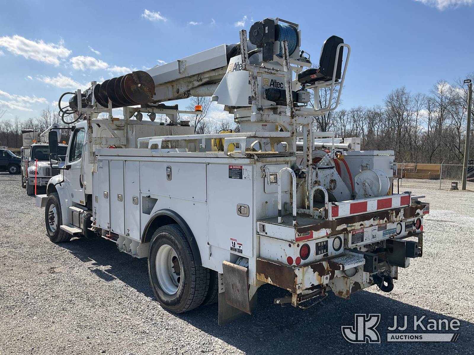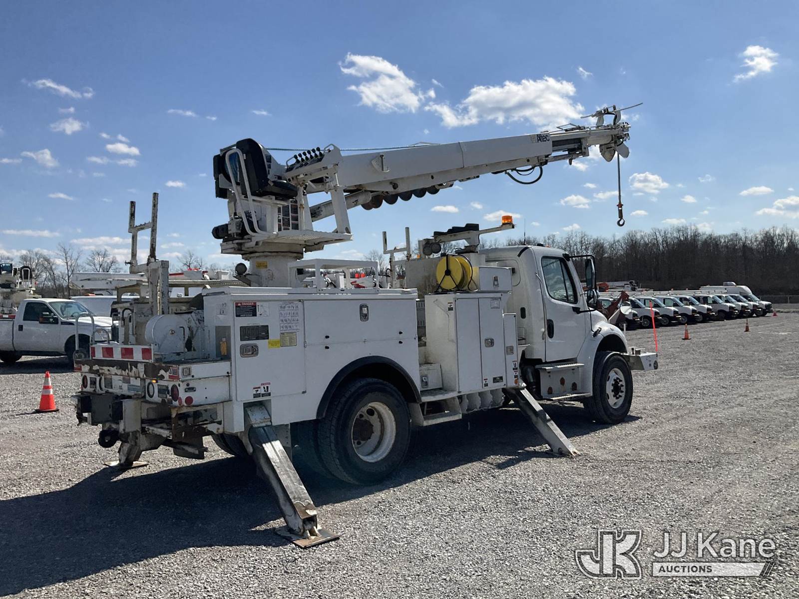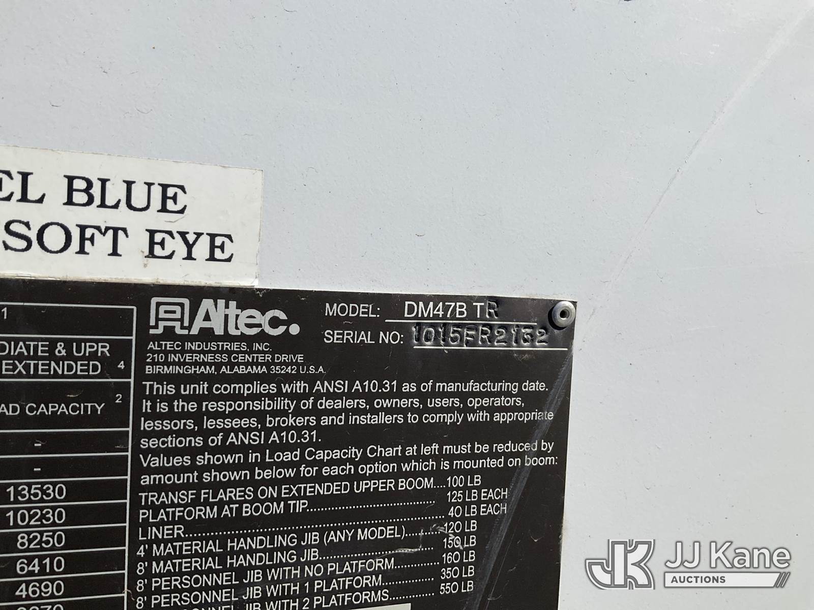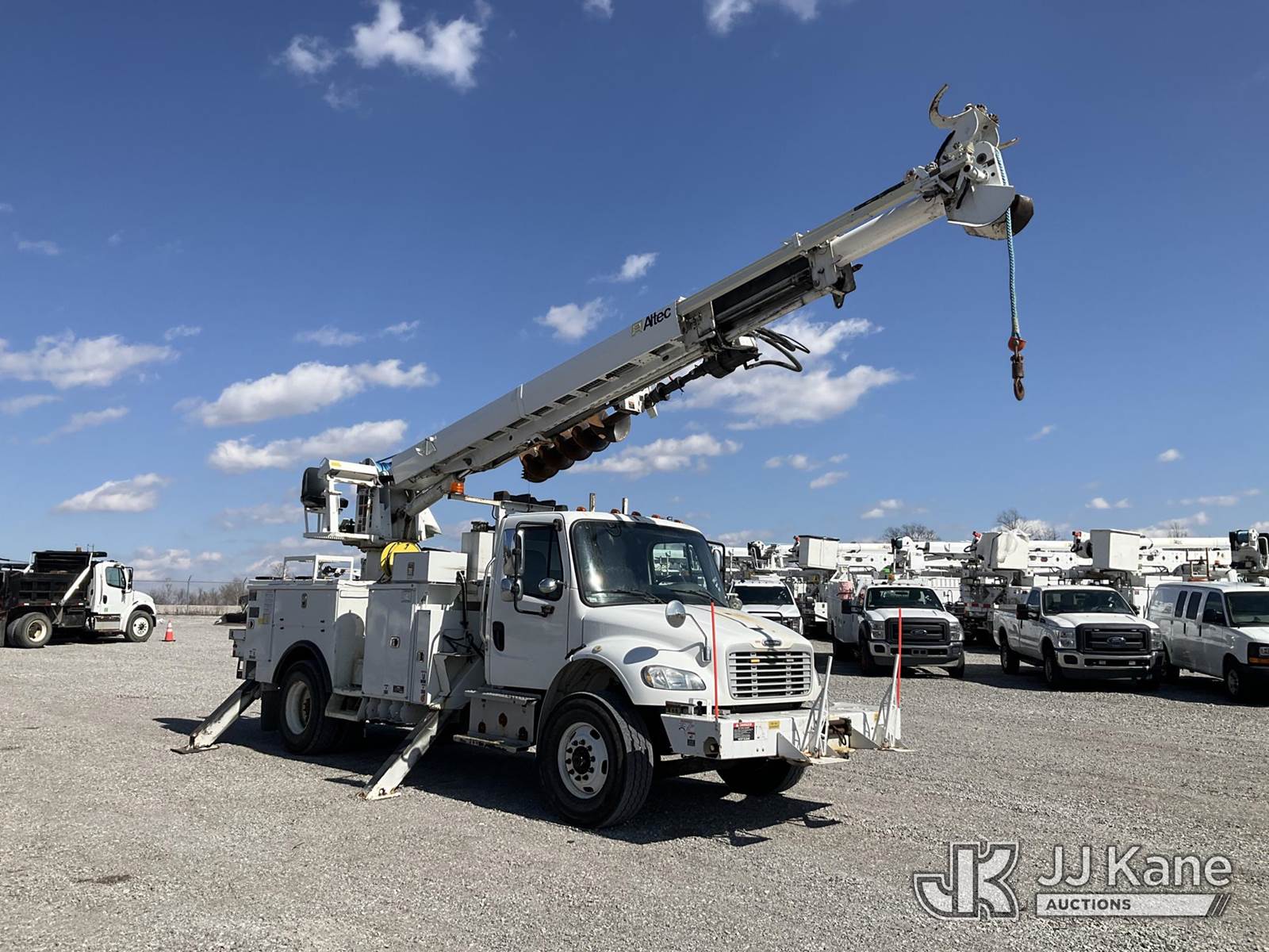 Altec DM47-TR, 23,790 Lb Digger Derrick s/n 1015FR2132, with 47 ft. sheave height, 3 section hyd. boom, pole grabs, upper controls, two-speed digger, heel winch & 4 hyd. outriggers, rear mounted on 2016 Freightliner M2 Medium Duty Utility Truck, 6.7L L6 DIESEL 4X2, DIESEL, Auto, A/C, (62,426 miles (unverified)) ACS-Duke Unit (Runs, Moves & Upper Operates) (Rust Damage) (The manufacturer has notified JJ Kane that this equipment is subject to an open recall. CSN 713A Reinforcement Plate Installation The equipment should not be operated until this is addressed. Buyer is responsible for reviewing the recall notice and contacting the manufacturer to schedule the recommended corrective actions. Associated costs may be covered by the manufacturer in some cases.) (Reads 5,370 hours) This is a Titled Item NOTE: This unit is being sold AS IS/WHERE IS via Timed Auction and is located in Verona, KY. Inspection & preview days for this unit are the 2 business days prior to the first day of items closing for this auction, item is located at 2841 Verona-Mudlick Rd Ste B Verona, KY 41092 and hours of operations are 8a-4p. For pre-sale questions, please contact Office Staff @ (502) 612-5080. Auctioneer Michael Whitebread / License # 256617. (Missing manuals, See Auction Company for Manufacturers Information to obtain manuals) (Buyer is responsible for removal. Assistance by consignor or JJ Kane Auctions is not assured.)
