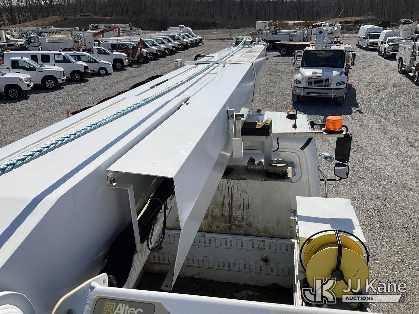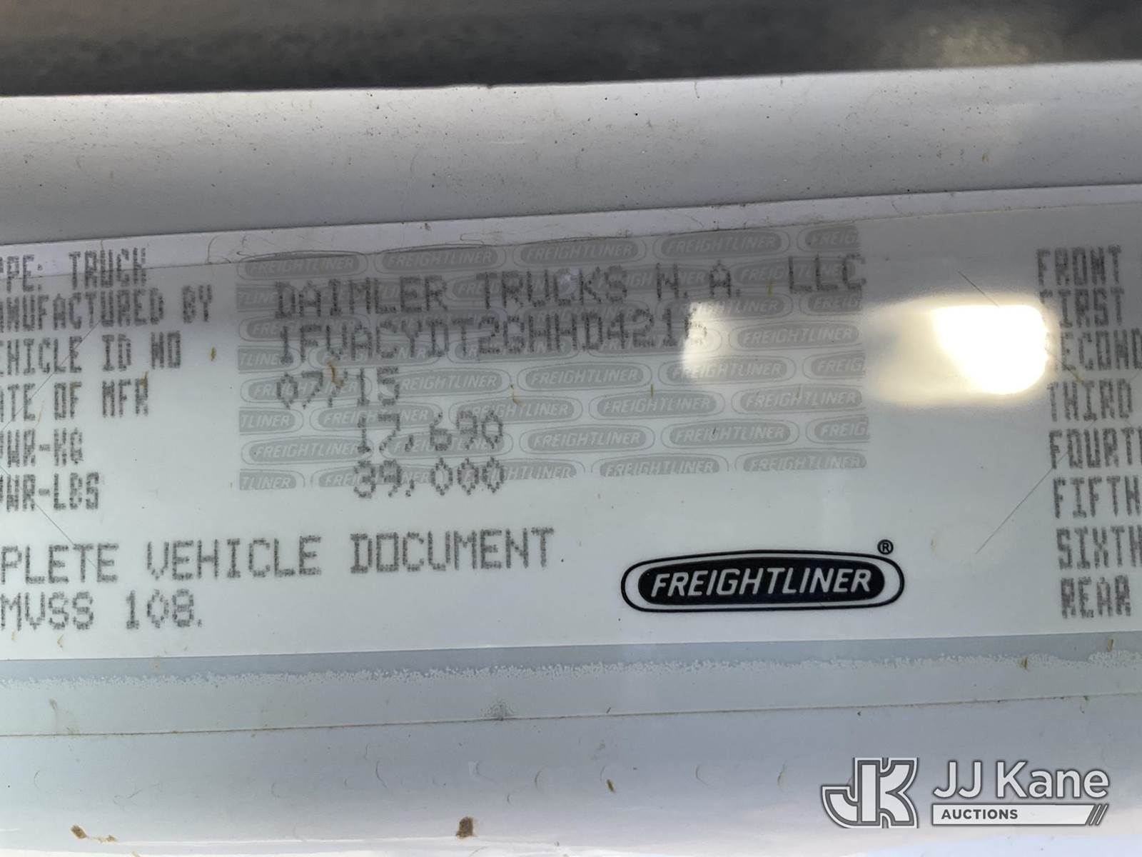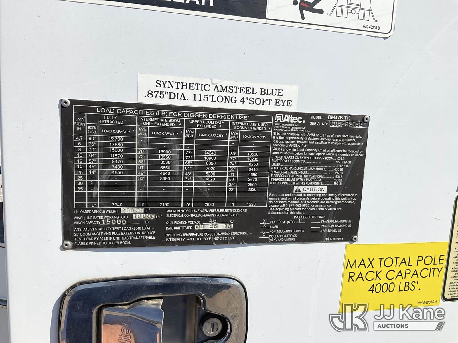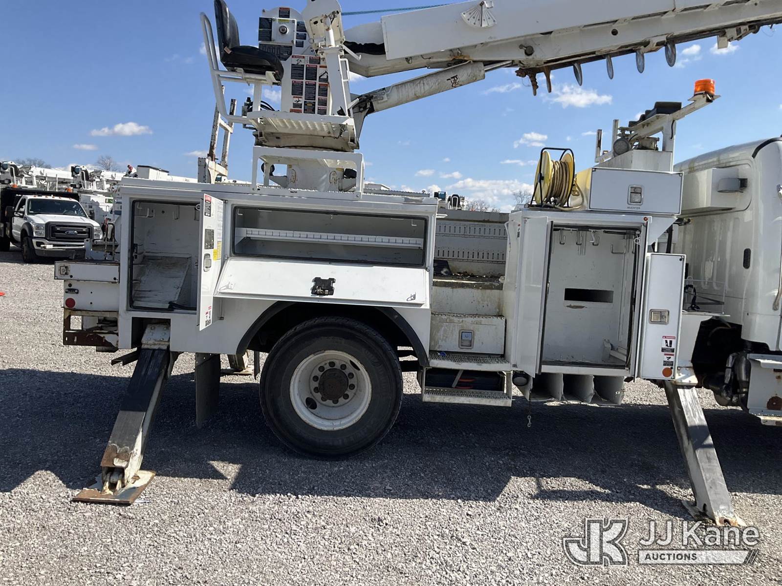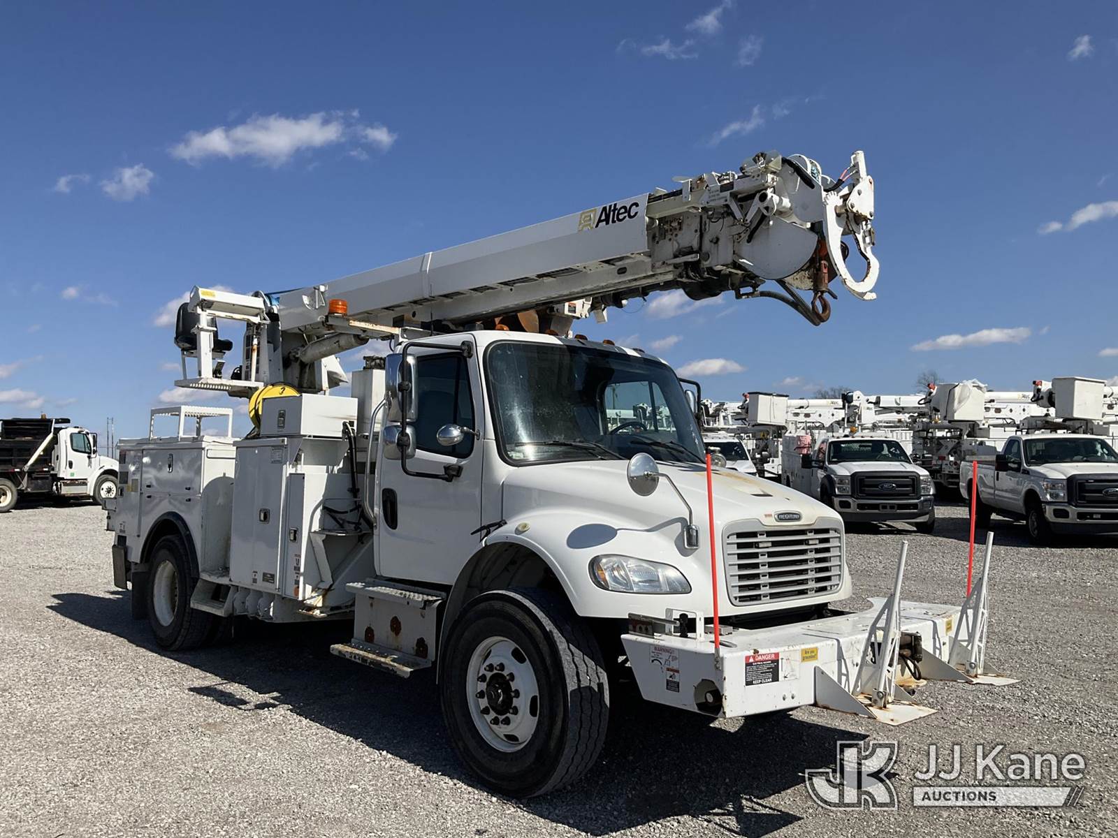 Altec DM47-TR, 23,790 Lb Digger Derrick s/n 1015FR2132, with 47 ft. sheave height, 3 section hyd. boom, pole grabs, upper controls, two-speed digger, heel winch & 4 hyd. outriggers, rear mounted on 2016 Freightliner M2 Medium Duty Utility Truck, 6.7L L6 DIESEL 4X2, DIESEL, Auto, A/C, (62,426 miles (unverified)) ACS-Duke Unit (Runs, Moves & Upper Operates) (Rust Damage) (The manufacturer has notified JJ Kane that this equipment is subject to an open recall. CSN 713A Reinforcement Plate Installation The equipment should not be operated until this is addressed. Buyer is responsible for reviewing the recall notice and contacting the manufacturer to schedule the recommended corrective actions. Associated costs may be covered by the manufacturer in some cases.) (Reads 5,370 hours) This is a Titled Item NOTE: This unit is being sold AS IS/WHERE IS via Timed Auction and is located in Verona, KY. Inspection & preview days for this unit are the 2 business days prior to the first day of items closing for this auction, item is located at 2841 Verona-Mudlick Rd Ste B Verona, KY 41092 and hours of operations are 8a-4p. For pre-sale questions, please contact Office Staff @ (502) 612-5080. Auctioneer Michael Whitebread / License # 256617. (Missing manuals, See Auction Company for Manufacturers Information to obtain manuals) (Buyer is responsible for removal. Assistance by consignor or JJ Kane Auctions is not assured.)