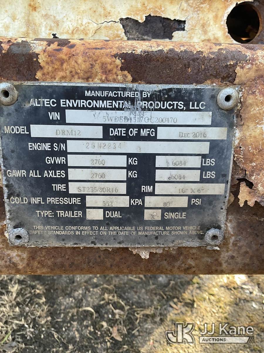 2016 Altec DRM12 Chipper (12in Drum), 4-cyl, diesel, trailer mtd, (Runs, Clutch Engages)(Seller State-Needs a tune up, rusty) (Reads 2,021 hours) This is a Titled Item NOTE: This unit is being sold AS IS/WHERE IS via Timed Auction and is located in Neenah, WI. Inspection & preview days for this unit are by appointment only; please contact us at contact@jjkane.com or 84-Go-JJKane for more details. (Buyer is responsible for removal. Assistance by consignor or JJ Kane Auctions is not assured.)