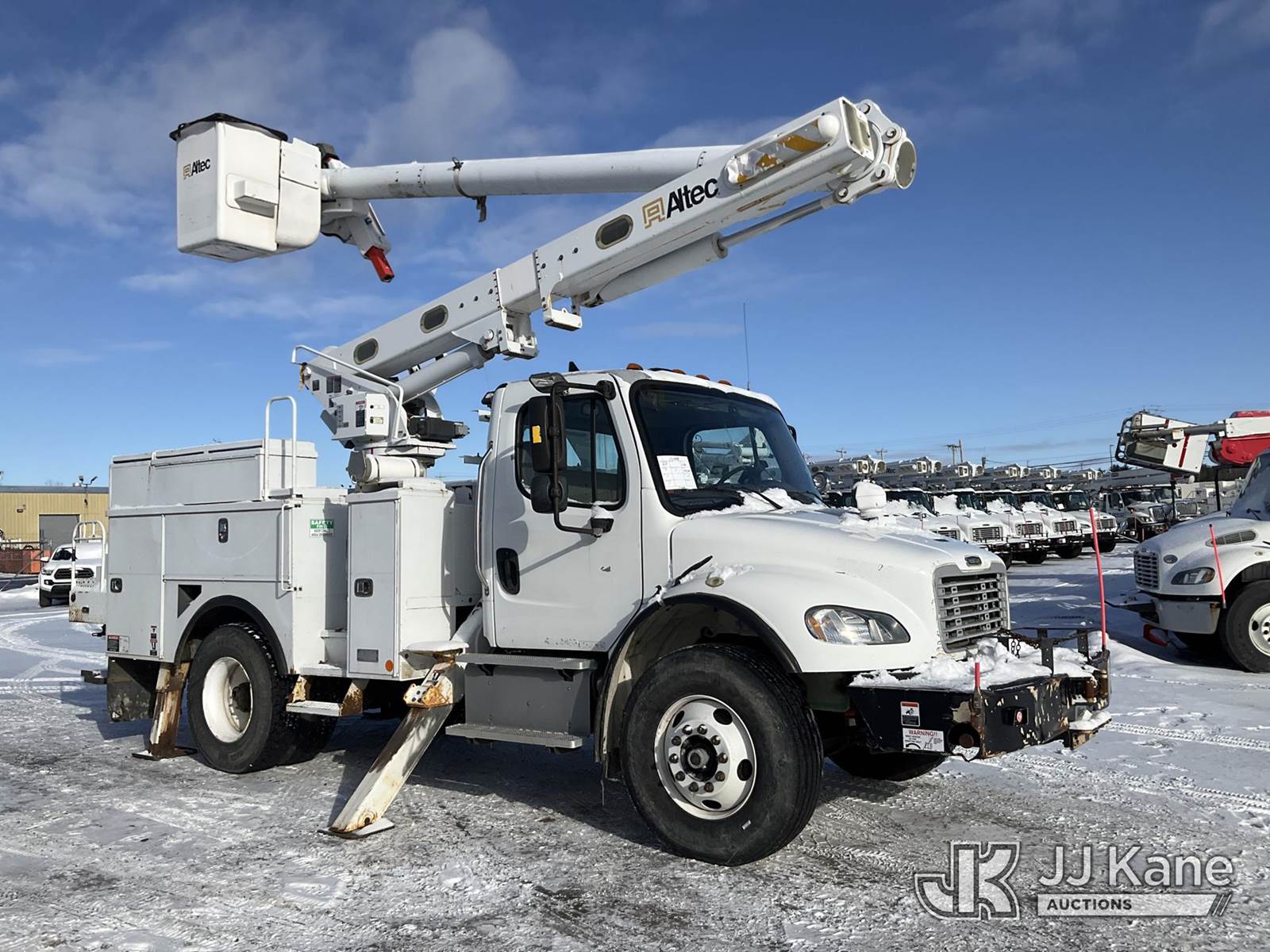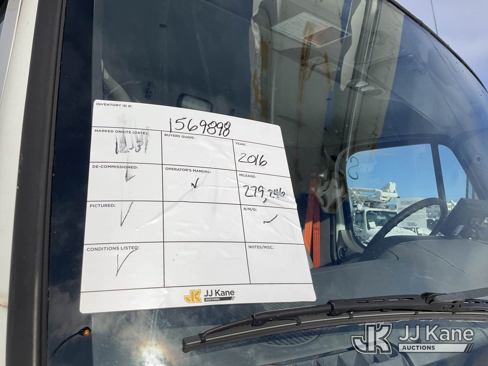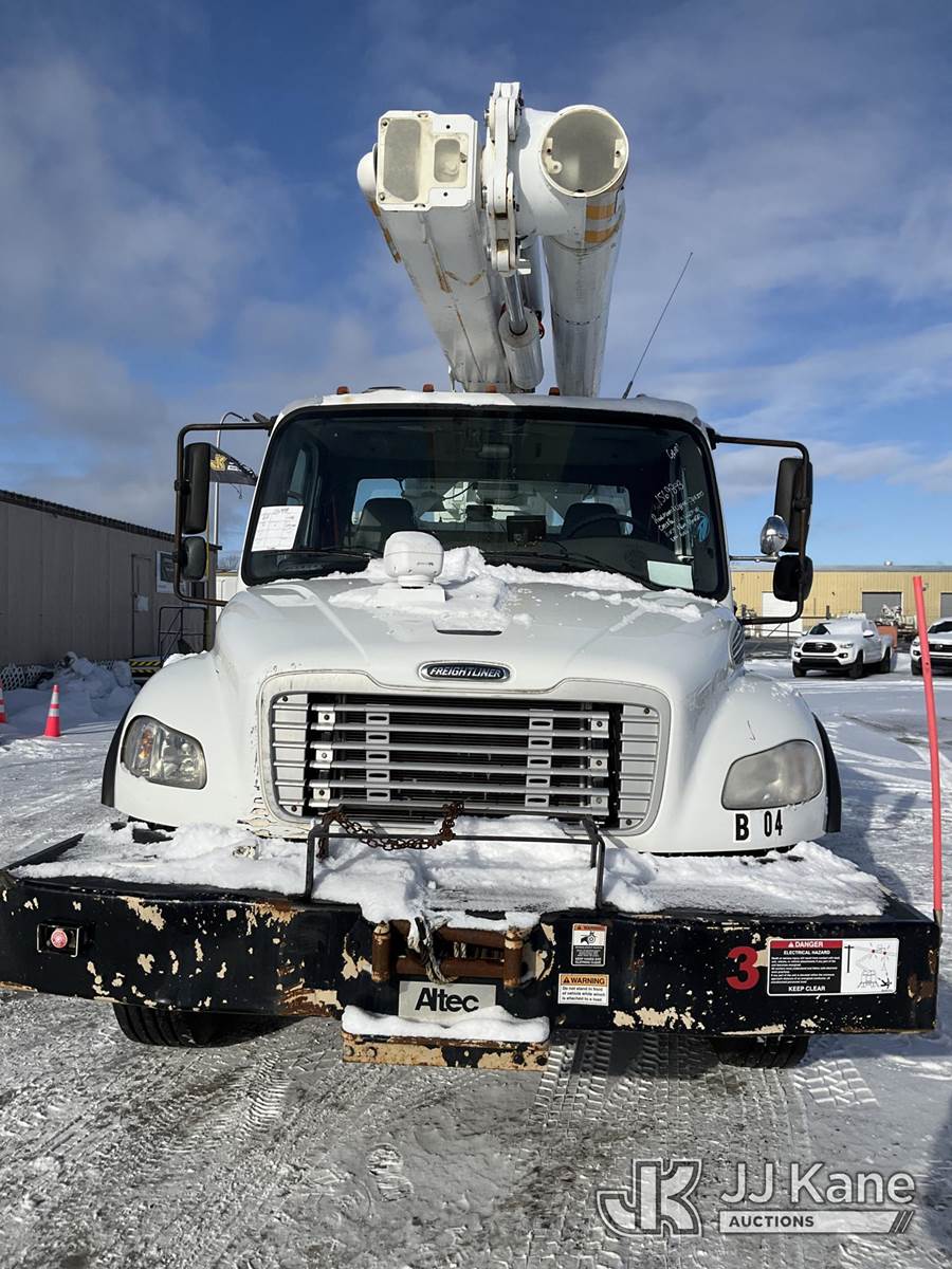 Altec L42M, 47 ft, Over-Center Material Handling Bucket Truck s/n 0815DQ1071, with Two-Man Bucket & 4 Outriggers, center mounted on 2016 Freightliner M2 106 Utility Truck, 6.7L Auto, diesel, A/C, with Front Winch, (279,246 miles) (Runs, Moves & Upper Operates, Check Engine Light On, Body & Rust Damage, Low Fuel) (Reads 12,757 hours) This is a Titled Item NOTE: This unit is being sold AS IS/WHERE IS via Timed Auction and is located in Rome, NY. Inspection & preview days for this unit are the 2 business days prior to the first day of items closing for this auction, item is located at 5835 Success Dr Rome, NY 13440 and hours of operations are 8a-4p. For pre-sale questions, please contact Ryan Jackson @ (315) 749-3790 or Ryan.Jackson@jjkane.com. (Manuals provided in cab) (Buyer is responsible for removal. Assistance by consignor or JJ Kane Auctions is not assured.)