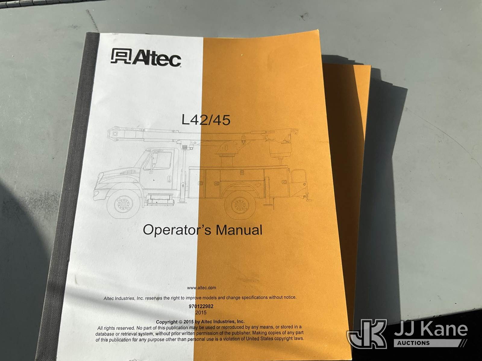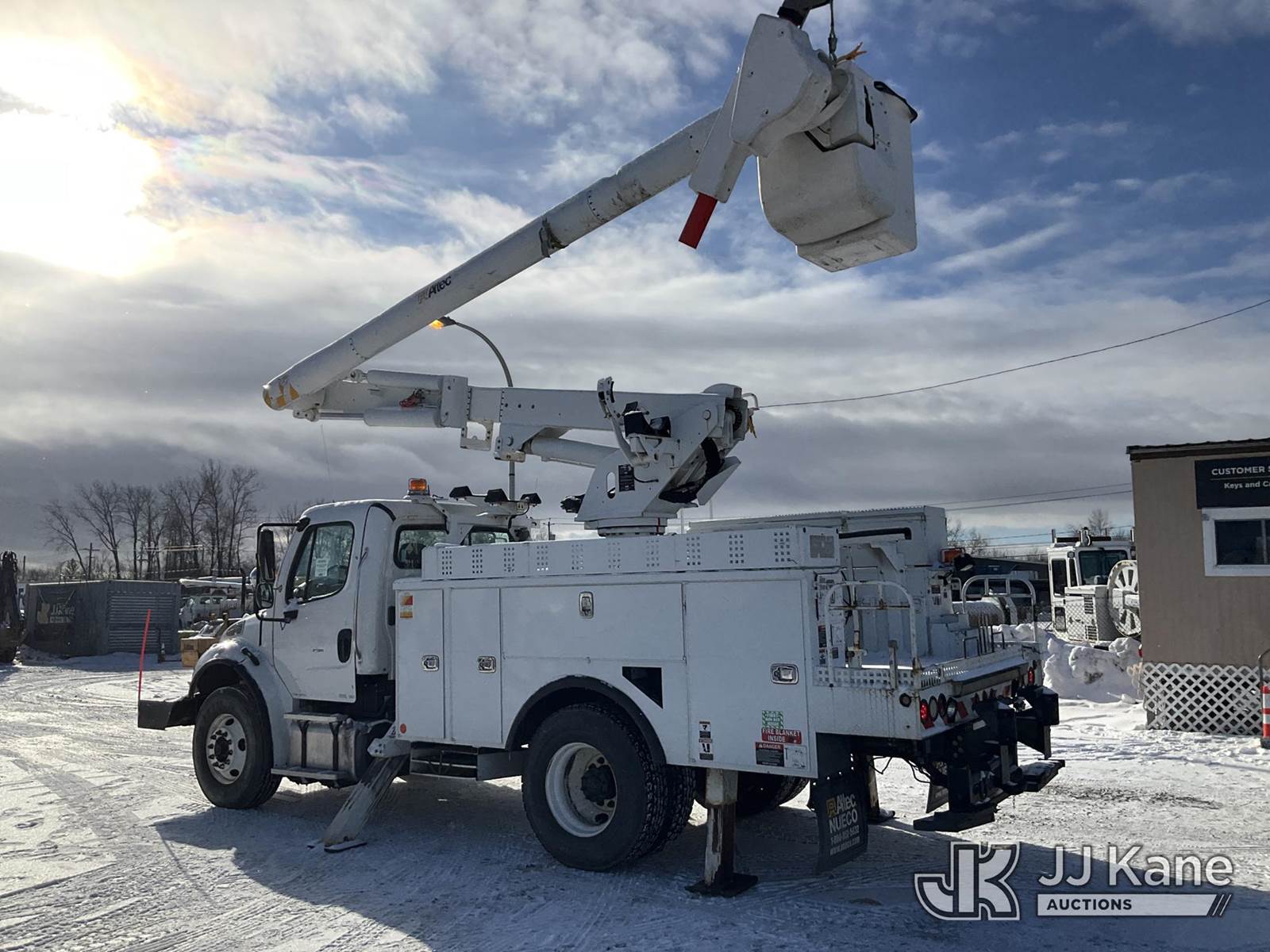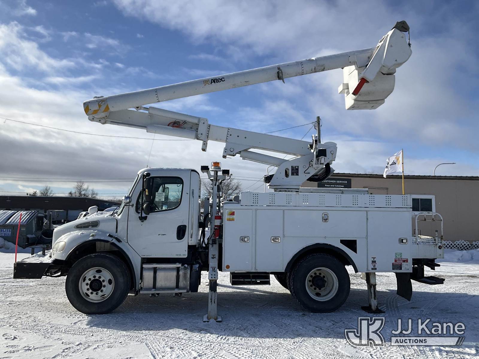 Altec L42M, 47 ft, Over-Center Material Handling Bucket Truck s/n 0815DQ1071, with Two-Man Bucket & 4 Outriggers, center mounted on 2016 Freightliner M2 106 Utility Truck, 6.7L Auto, diesel, A/C, with Front Winch, (279,246 miles) (Runs, Moves & Upper Operates, Check Engine Light On, Body & Rust Damage, Low Fuel) (Reads 12,757 hours) This is a Titled Item NOTE: This unit is being sold AS IS/WHERE IS via Timed Auction and is located in Rome, NY. Inspection & preview days for this unit are the 2 business days prior to the first day of items closing for this auction, item is located at 5835 Success Dr Rome, NY 13440 and hours of operations are 8a-4p. For pre-sale questions, please contact Ryan Jackson @ (315) 749-3790 or Ryan.Jackson@jjkane.com. (Manuals provided in cab) (Buyer is responsible for removal. Assistance by consignor or JJ Kane Auctions is not assured.)