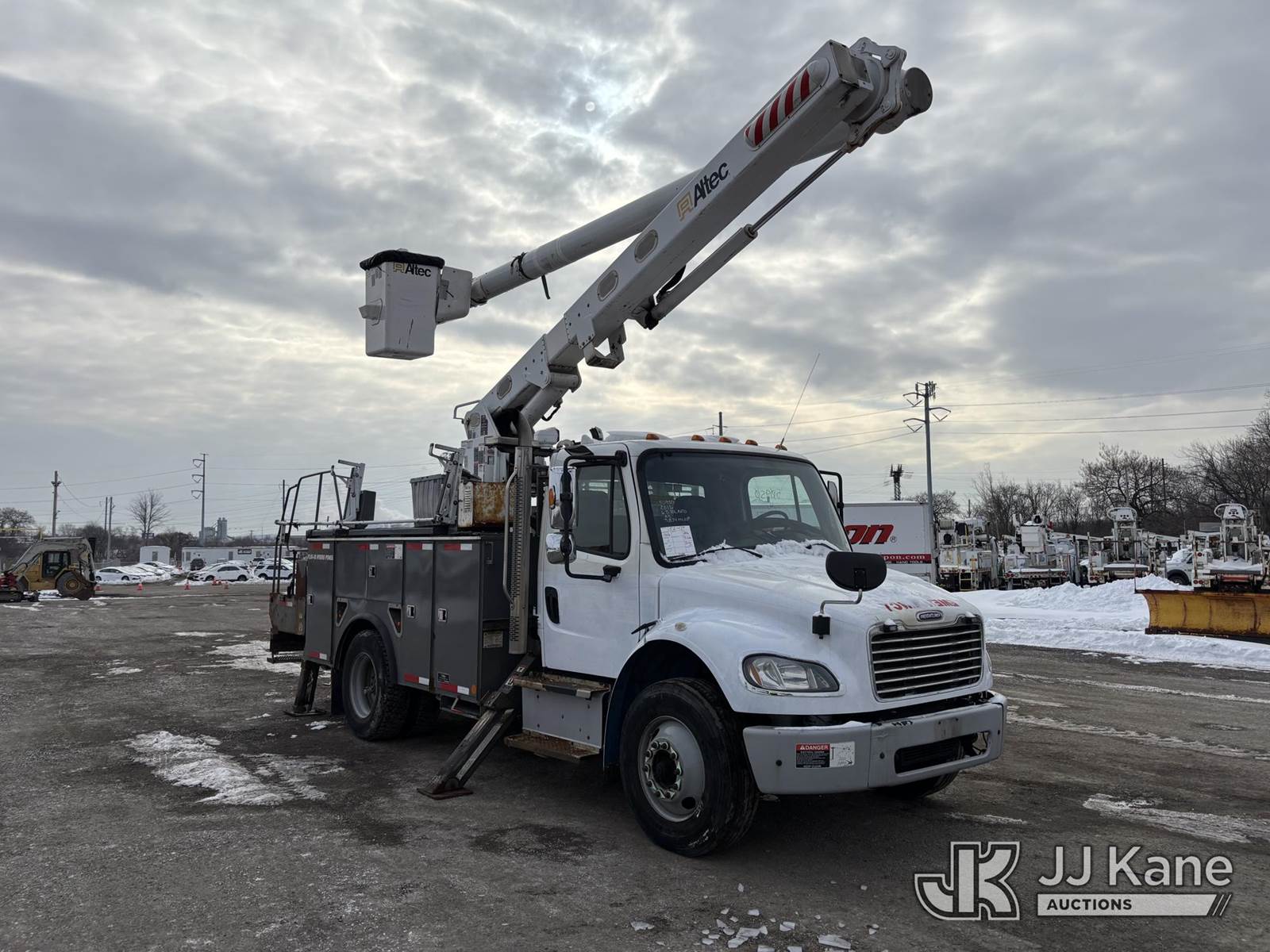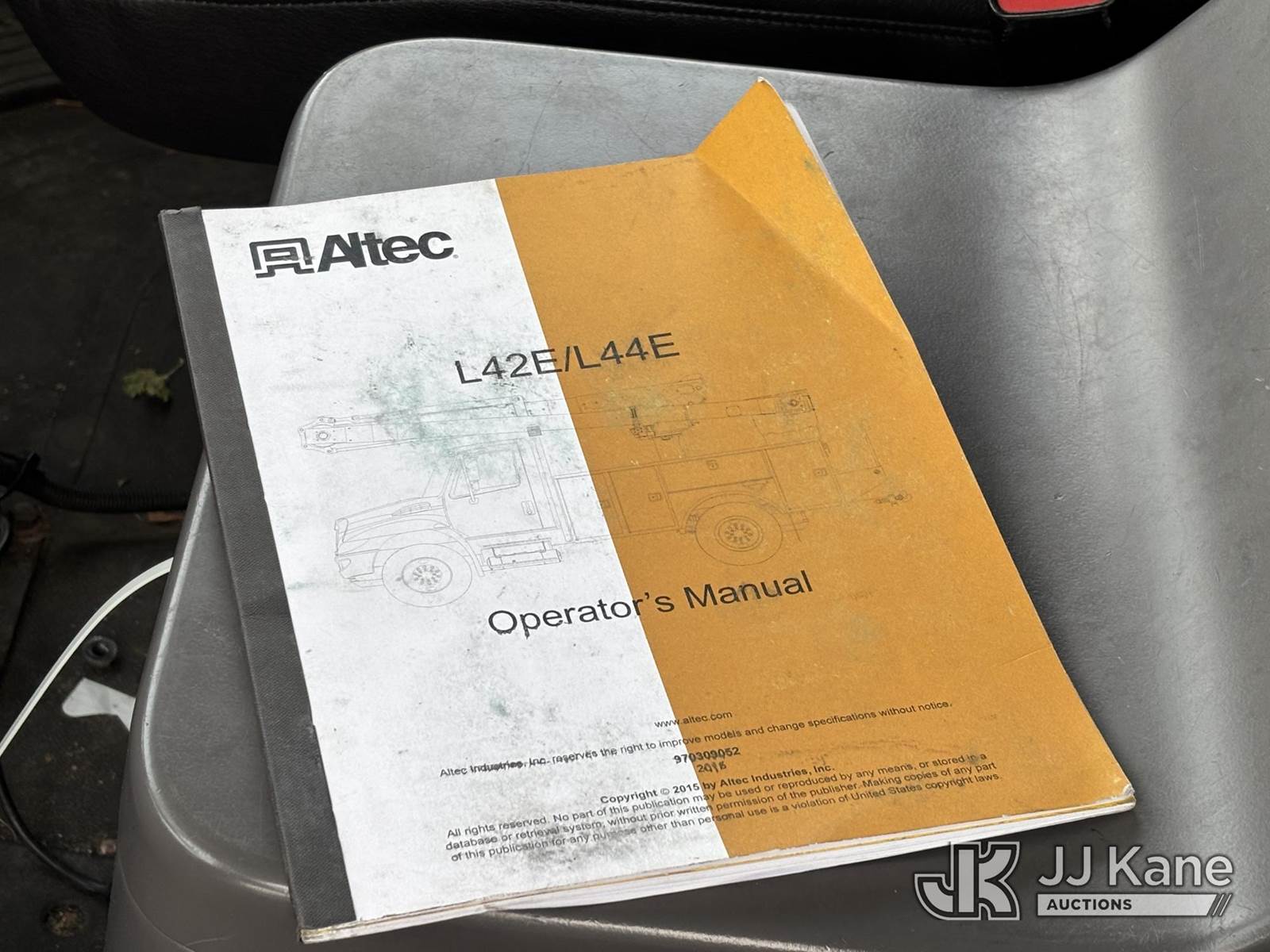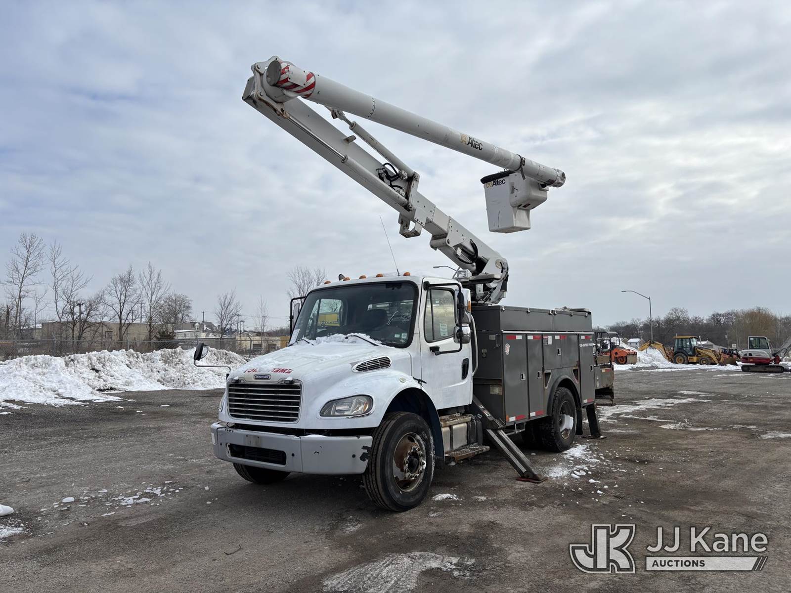 Altec L44E, 49 ft, Over-Center Bucket Truck s/n 1015BQ0206, with single-man bucket, center mounted on 2016 Freightliner M2 106 Utility Truck, 6.7L diesel, Auto, A/C, (71,834 miles) (Runs Moves & Upper Operates, Rust Damage) This is a Titled Item NOTE: This unit is being sold AS IS/WHERE IS via Timed Auction and is located in Plymouth Meeting, PA. For pre-sale questions, please contact Bruce Thomas at bruce.thomas.jr@jjkane.com. JJ Kane Plymouth Meeting yard is open for inspection on the Friday and Monday before the sale date from 9:00 am to 3:00 pm. REMOVAL: 10 days after the sale, Wednesday thru Friday 10 days (Excluding Saturday & Sunday. Excluding Holidays, Yard is closed Weekends) All items must be removed by the 10th day or a storage fee of $25 per item /per day will be applied. (Manuals provided in cab) (Buyer is responsible for removal. Assistance by consignor or JJ Kane Auctions is not assured.)