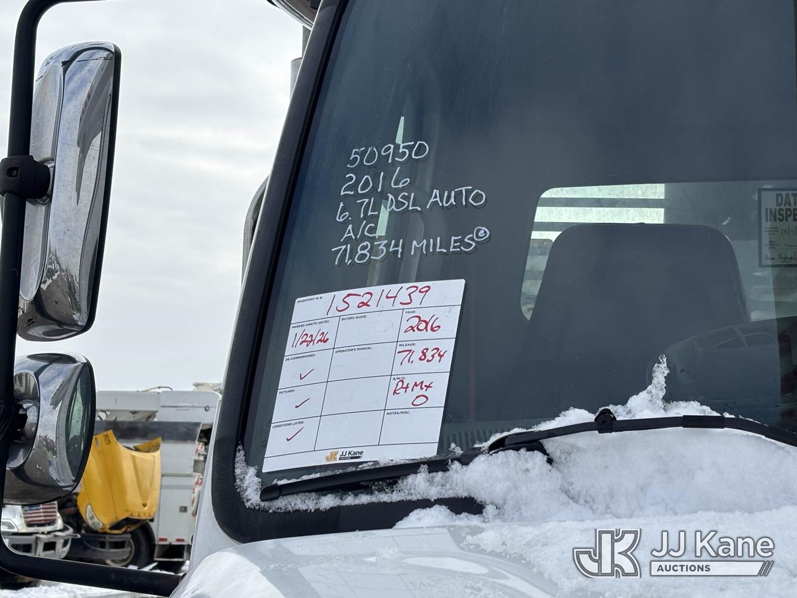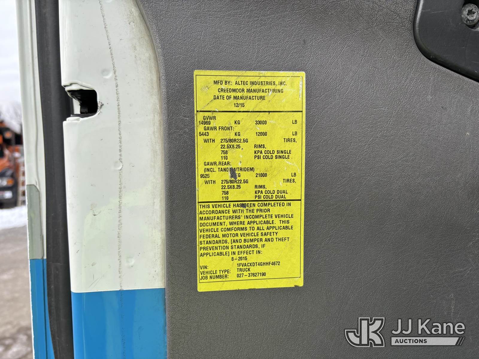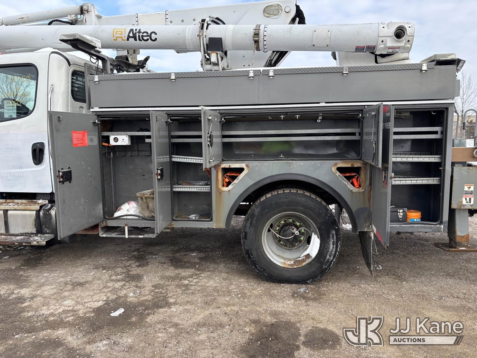 Altec L44E, 49 ft, Over-Center Bucket Truck s/n 1015BQ0206, with single-man bucket, center mounted on 2016 Freightliner M2 106 Utility Truck, 6.7L diesel, Auto, A/C, (71,834 miles) (Runs Moves & Upper Operates, Rust Damage) This is a Titled Item NOTE: This unit is being sold AS IS/WHERE IS via Timed Auction and is located in Plymouth Meeting, PA. For pre-sale questions, please contact Bruce Thomas at bruce.thomas.jr@jjkane.com. JJ Kane Plymouth Meeting yard is open for inspection on the Friday and Monday before the sale date from 9:00 am to 3:00 pm. REMOVAL: 10 days after the sale, Wednesday thru Friday 10 days (Excluding Saturday & Sunday. Excluding Holidays, Yard is closed Weekends) All items must be removed by the 10th day or a storage fee of $25 per item /per day will be applied. (Manuals provided in cab) (Buyer is responsible for removal. Assistance by consignor or JJ Kane Auctions is not assured.)