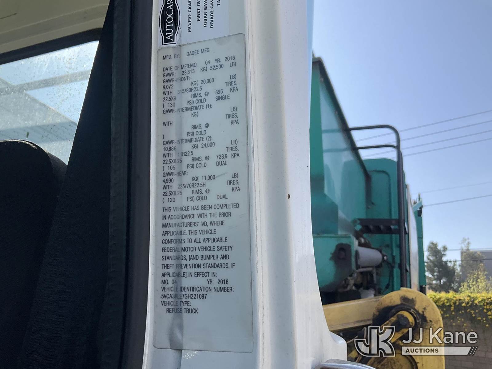 2016 Autocar Xpeditor Trash Truck, Cummins CNG Only, Auto, with Aluminum Wheels , (74,044 miles) (Runs & Moves ) This is a Titled Item NOTE: This unit is being sold AS IS/WHERE IS via Timed Auction and is located in Jurupa Valley, CA. Inspection & preview days for this unit are the 2 business days prior to the first day of items closing for this auction, item is located at 4510 Muth Way Jurupa Valley, CA 92509 and hours of operations are 8a-4p. For pre-sale questions, please contact please contact Office Staff @ (310) 353-7140. Dealer License Number 45696. (Buyer is responsible for removal. Assistance by consignor or JJ Kane Auctions is not assured.)