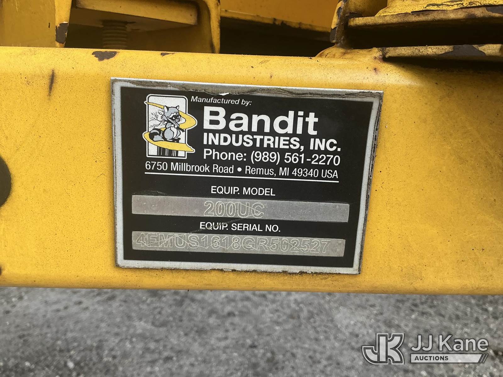 2016 Bandit 200UC Chipper (12in Disc), diesel, trailer mtd. (Not Running, Condition Unknown) This is a Titled Item NOTE: This unit is being sold AS IS/WHERE IS via Timed Auction and is located in Thonotosassa, FL. Inspection & preview days for this unit are the 2 business days prior to the first day of items closing for this auction, item is located at 11720 N US 301 Thonotosassa, Fl 33592 and hours of operations are 8a-4p. For pre-sale questions, please contact Office Staff @ (813) 986-2485. (Buyer is responsible for removal. Assistance by consignor or JJ Kane Auctions is not assured.)