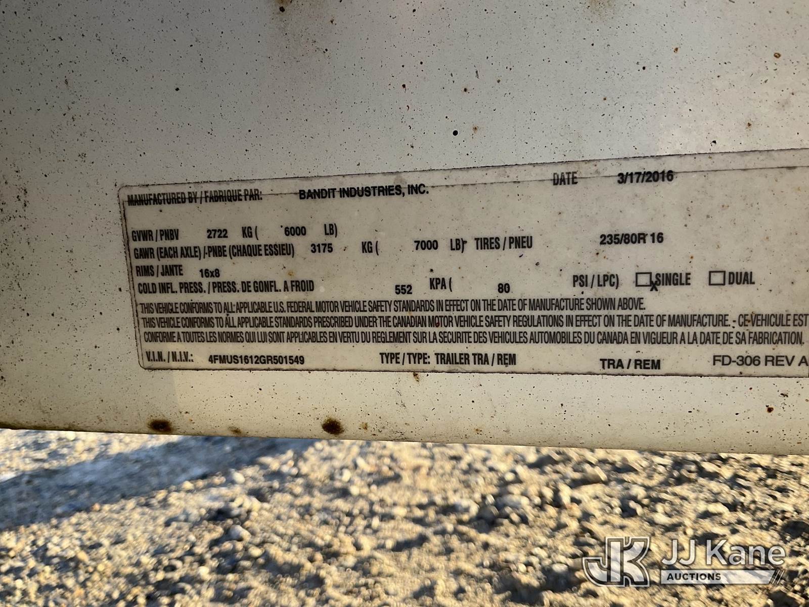 2016 Bandit 200+XP Chipper (12in Disc), PSI Gas, (Not Running, No Crank, Missing Safety Chain Hook, Rust Damage, Seller States: Inoperable Hour Meter) (Reads 728 hours) This is a Titled Item NOTE: This unit is being sold AS IS/WHERE IS via Timed Auction and is located in Shrewsbury, MA. Inspection & preview days for this unit are the 2 business days prior to the first day of items closing for this auction, item is located at 11 Fortune Blvd Shrewsbury, MA 01545 and hours of operations are 8a-4p. (Buyer is responsible for removal. Assistance by consignor or JJ Kane Auctioneers is not assured.)