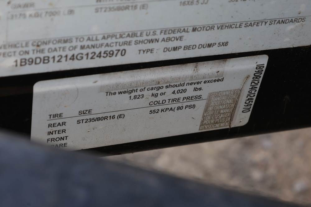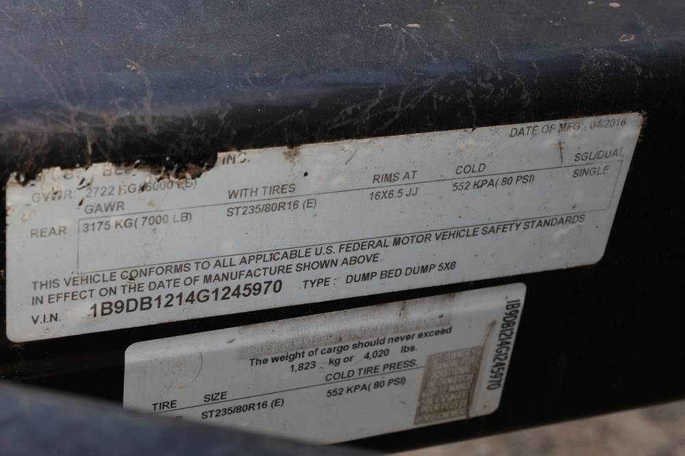 2016 Best Trailer model Dump 5x8 Trailer Dump 8' VIN: 1B9DB1214G1245970. Seller reports: Operates as intended. Seller ID # 769-19.