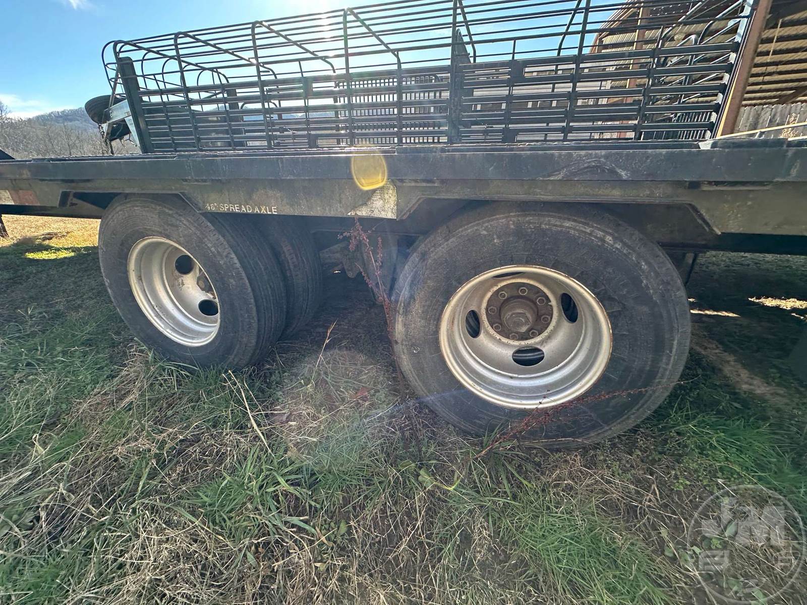 38' FLATBED TRAILER, 8'6" WIDE, 2 AXLE, ELECTRIC BRAKES, SPRING SUSPENSION, WOOD DECKING, DOVETAIL WITH RAMPS, SIDE STORAGE BOXES