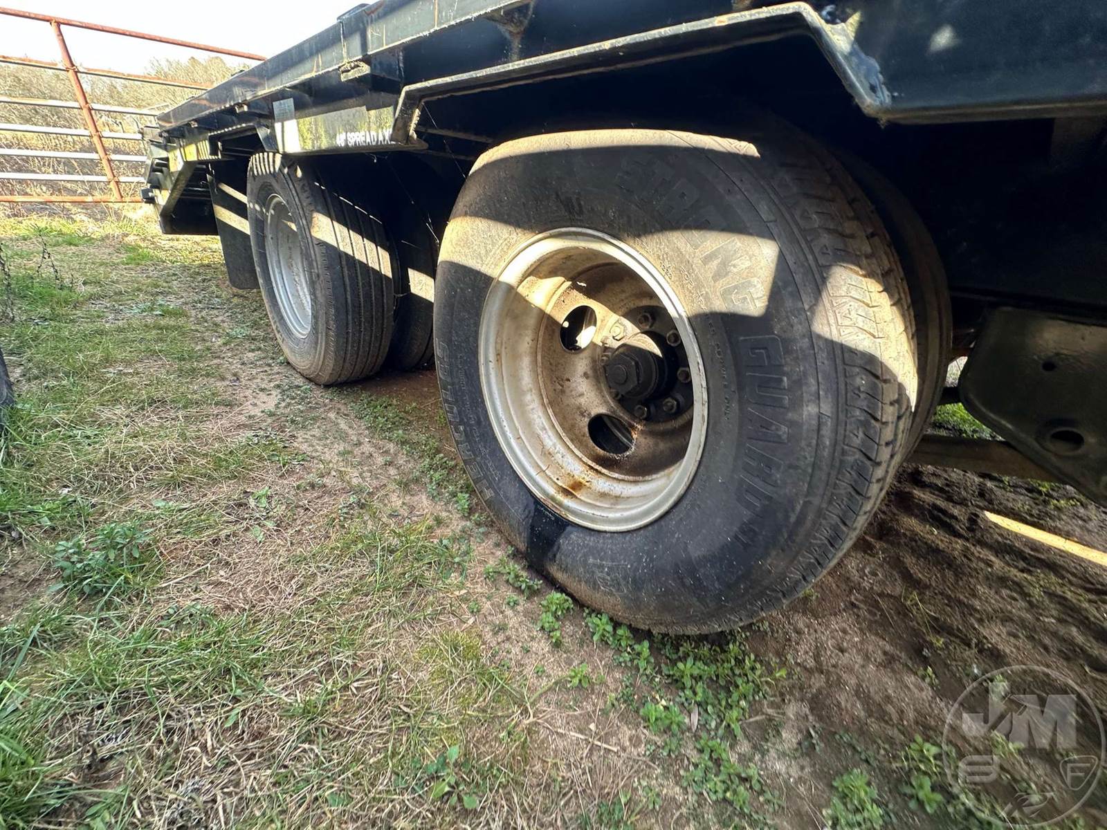 26' FLATBED TRAILER, Â8' WIDE, DUAL TANDEM AXLE, ELECTRIC BRAKES, SPRING SUSPENSION, WOOD DECKING, GOOSENECK HITCH, DOVETAIL WITH RAMPS,...