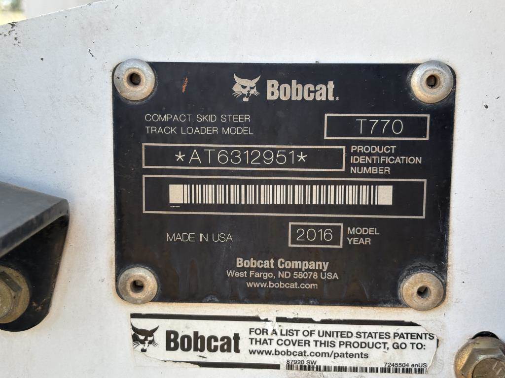 2016 Bobcat T770 Skid Steer Track Loader