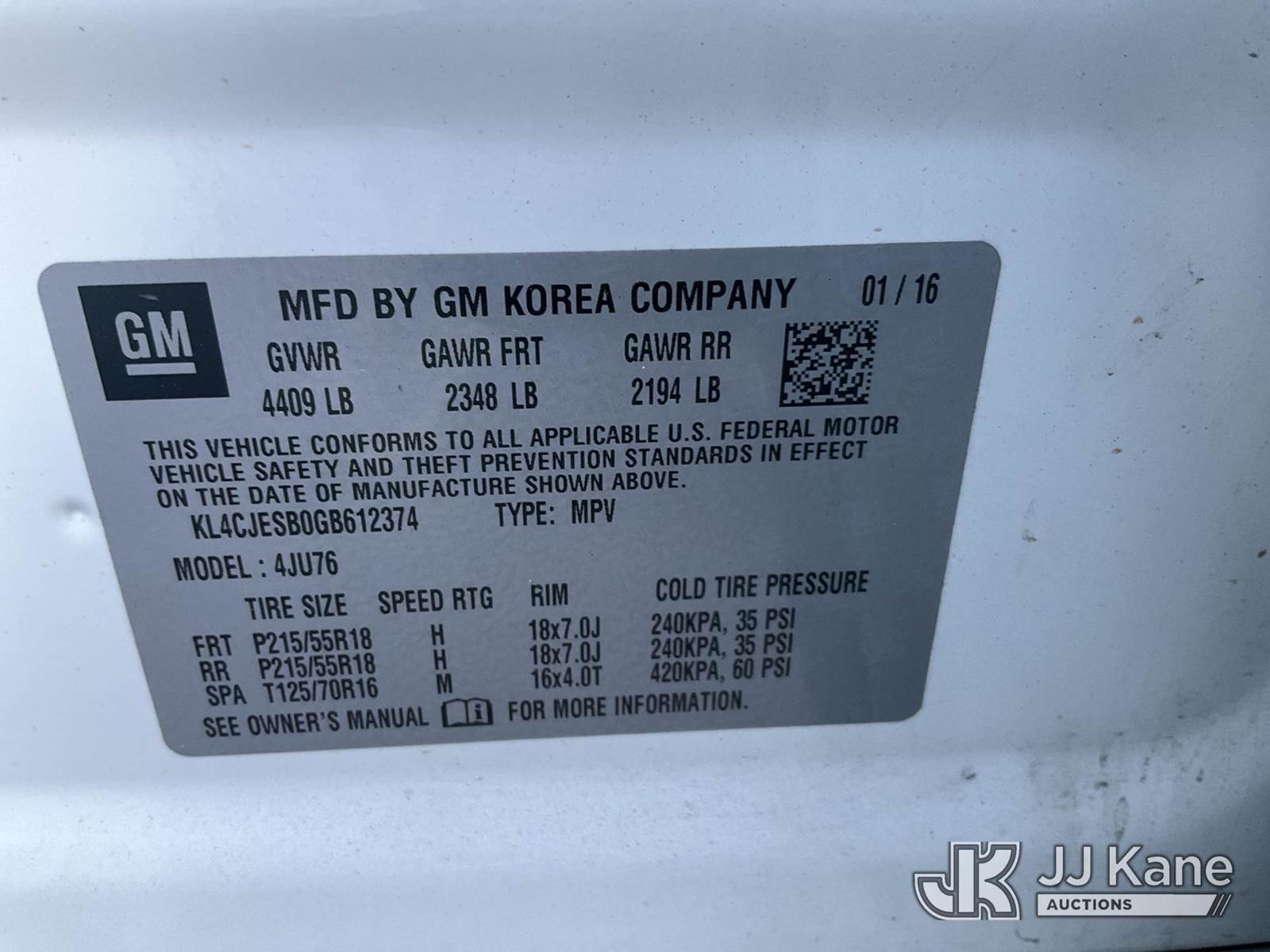 2016 Buick Encore 4-Door Sport Utility Vehicle, 4-cyl gas, Auto, A/C, (88,471 miles) (Runs & Moves) This is a Titled Item NOTE: This unit is being sold AS IS/WHERE IS via Timed Auction and is located in Las Vegas, NV. Inspection & preview days for this unit are the 2 business days prior to the first day of items closing for this auction, item is located at 14655 Grand Valley Pkwy Las Vegas, NV 89165 and hours of operations are 8a-4p. Titles executed exactly as bidder registered. Ensure your name and/or business name and address in JJ Kane and/or ProxiBid is correct before bidding. For pre-sale questions, please contact Office Staff @ (801) 519-0123 and provide sale date and lot number. Las Vegas Dealer License Number DLR000053086 / OHV000053094. (Buyer is responsible for removal. Assistance by consignor or JJ Kane Auctioneers is not assured.)