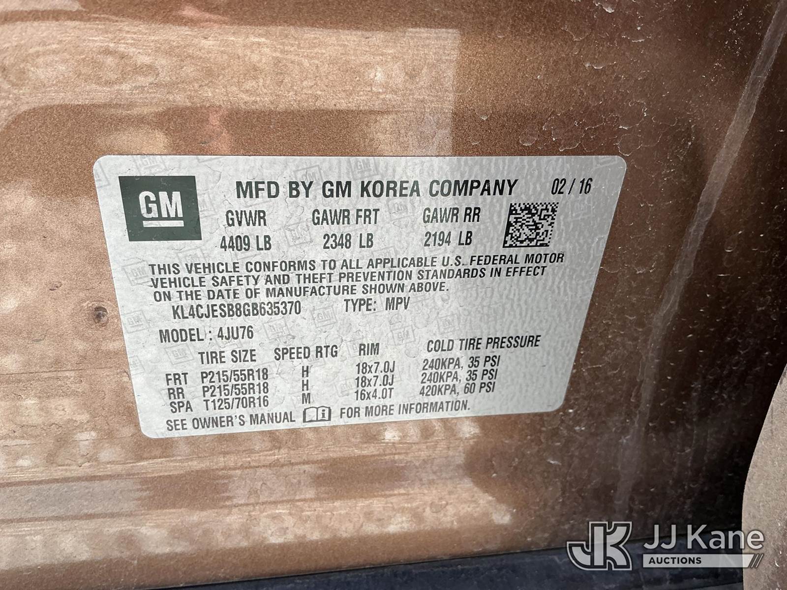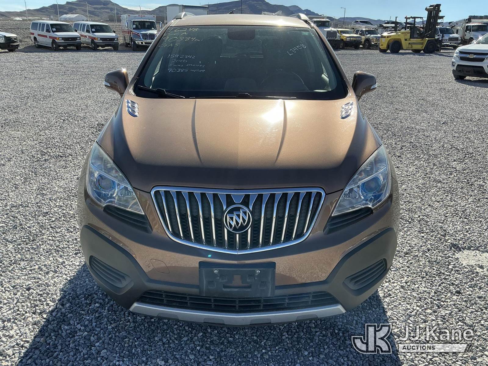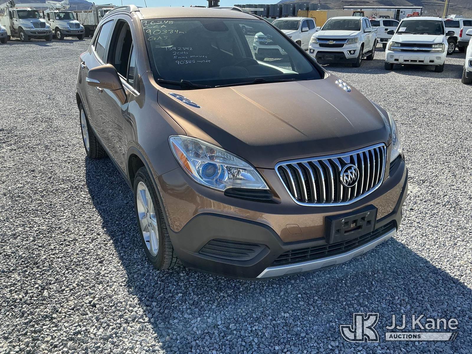 2016 Buick Encore 4-Door Sport Utility Vehicle, 1.4L L4 DOHC 16V TURBO gas, AWD, 6-Speed Automatic, A/C, (90,385 miles) (Runs & Moves) (Paint Damage) This is a Titled Item NOTE: This unit is being sold AS IS/WHERE IS via Timed Auction and is located in Las Vegas, NV. Inspection & preview days for this unit are the 2 business days prior to the first day of items closing for this auction, item is located at 14655 Grand Valley Pkwy Las Vegas, NV 89165 and hours of operations are 8a-4p. Titles executed exactly as bidder registered. Ensure your name and/or business name and address in JJ Kane and/or ProxiBid is correct before bidding. For pre-sale questions, please contact Office Staff @ (801) 519-0123 and provide sale date and lot number. Las Vegas Dealer License Number DLR000053086 / OHV000053094. (Buyer is responsible for removal. Assistance by consignor or JJ Kane Auctions is not assured.)