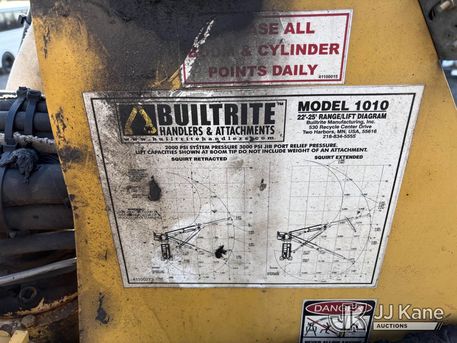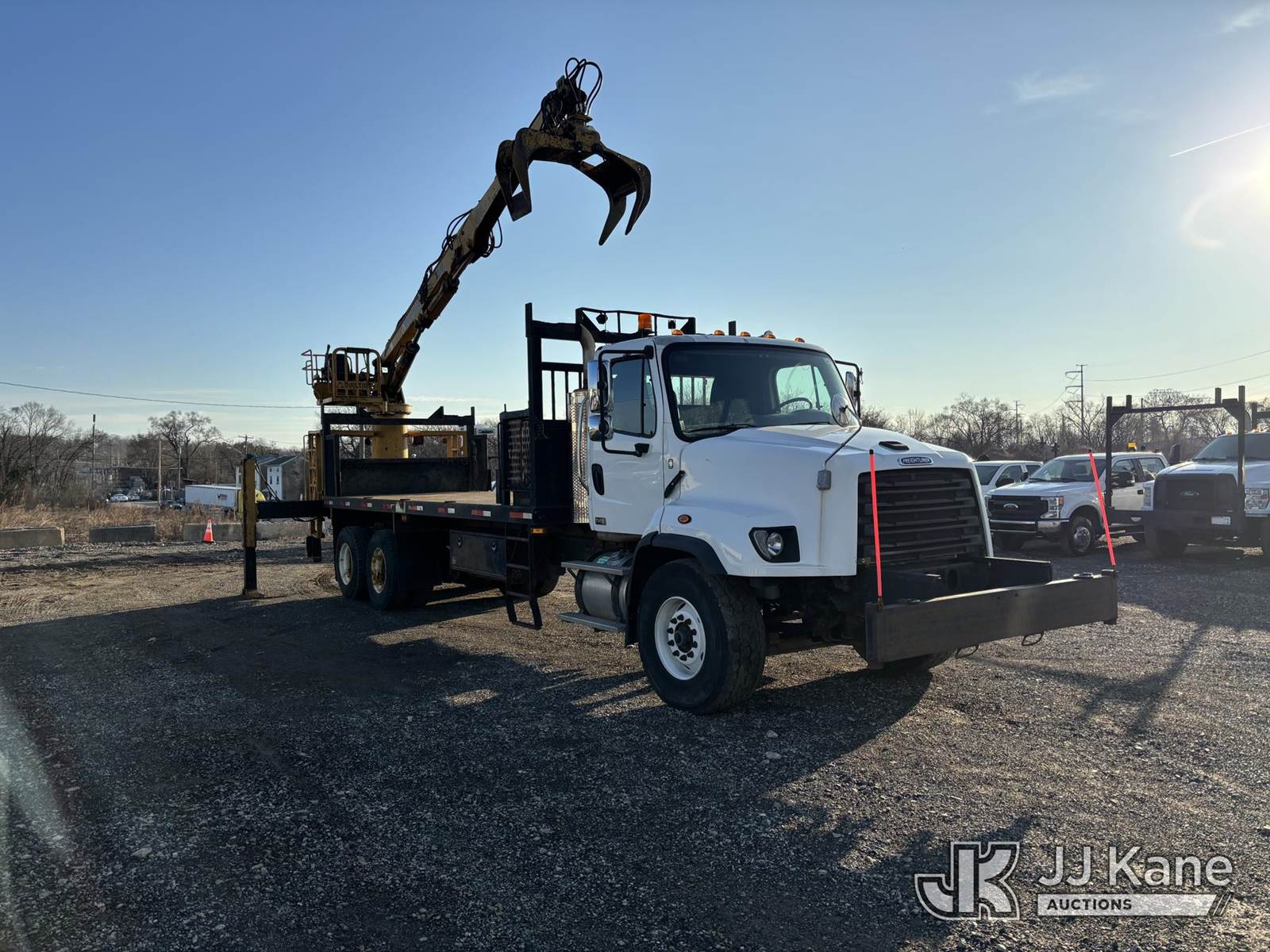 Built Rite Handlers 1010, 10,000 Lb Grappleboom Crane s/n NS-6374-8-1845, with 22-25ft telescopic boom, rotating grapple attachment, magnet, 2 outriggers, & riding console, mounted on 2016 Freightliner 114SD T/A Flatbed Truck, 12.8L diesel, 10-spd, A/C, (204,713 miles) (Danella Unit) (Runs Moves & Upper Operates) This is a Titled Item NOTE: This unit is being sold AS IS/WHERE IS via Timed Auction and is located in Plymouth Meeting, PA. Inspection & preview days for this unit are the 2 business days prior to the first day of items closing for this auction, item is located at 1402 Conshohocken Rd Plymouth Meeting, PA 19462 and hours of operations are 8a-4p. For pre-sale questions, please contact Bruce Thomas @ (267) 887-0392 or bruce.thomas.jr@jjkane.com. (Buyer is responsible for removal. Assistance by consignor or JJ Kane Auctions is not assured.)