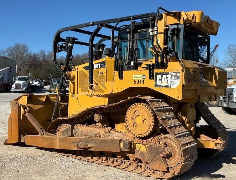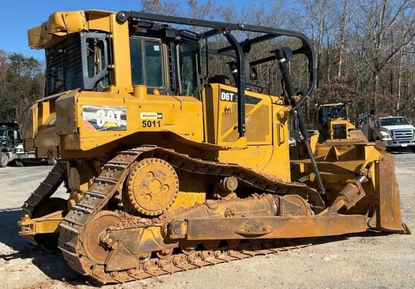 Enclosed Cab, Air Conditioner, Pre-Wired for Grade Control, Sweeps, 128 in Wide Semi-U Blade 24 in Single Grouser Track Shoes, Drawbar, Rear Auxiliary Hydraulics, Equipment-from-Twin-K-Construction. 2016 Cat D6T XL is a versatile, mid-size dozer with a Cat C9.3 ACERT engine (around 215 hp), meeting Tier 4 Final standards, featuring an auto-shift transmission for efficiency, and typically weighing around 45,000-47,000 lbs.