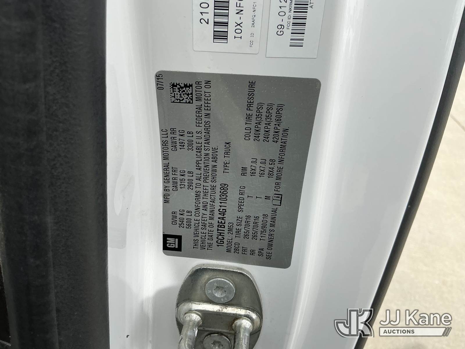2016 Chevrolet Colorado Work Truck Ext. Cab 4WD Extended-Cab Pickup Truck, s/n 1GCHTBEA4G1103689, 2.5L L4 DOHC 16V GAS, 6-Speed Automatic, A/C, with bed cover, (182,286 miles) (Runs & Moves) This is a Titled Item NOTE: This unit is being sold AS IS/WHERE IS via Timed Auction and is located in Dixon, CA. Inspection & preview days for this unit are the 2 business days prior to the first day of items closing for this auction, item is located at 8668 Sparling Ln Dixon, CA 95620 and hours of operations are 8a-4p. For pre-sale questions, please contact JJ Kane Staff at (707) 678-8060 (dixon@jjkane.com). Dealer License Number 45696. (Buyer is responsible for removal. Assistance by consignor or JJ Kane Auctions is not assured.)