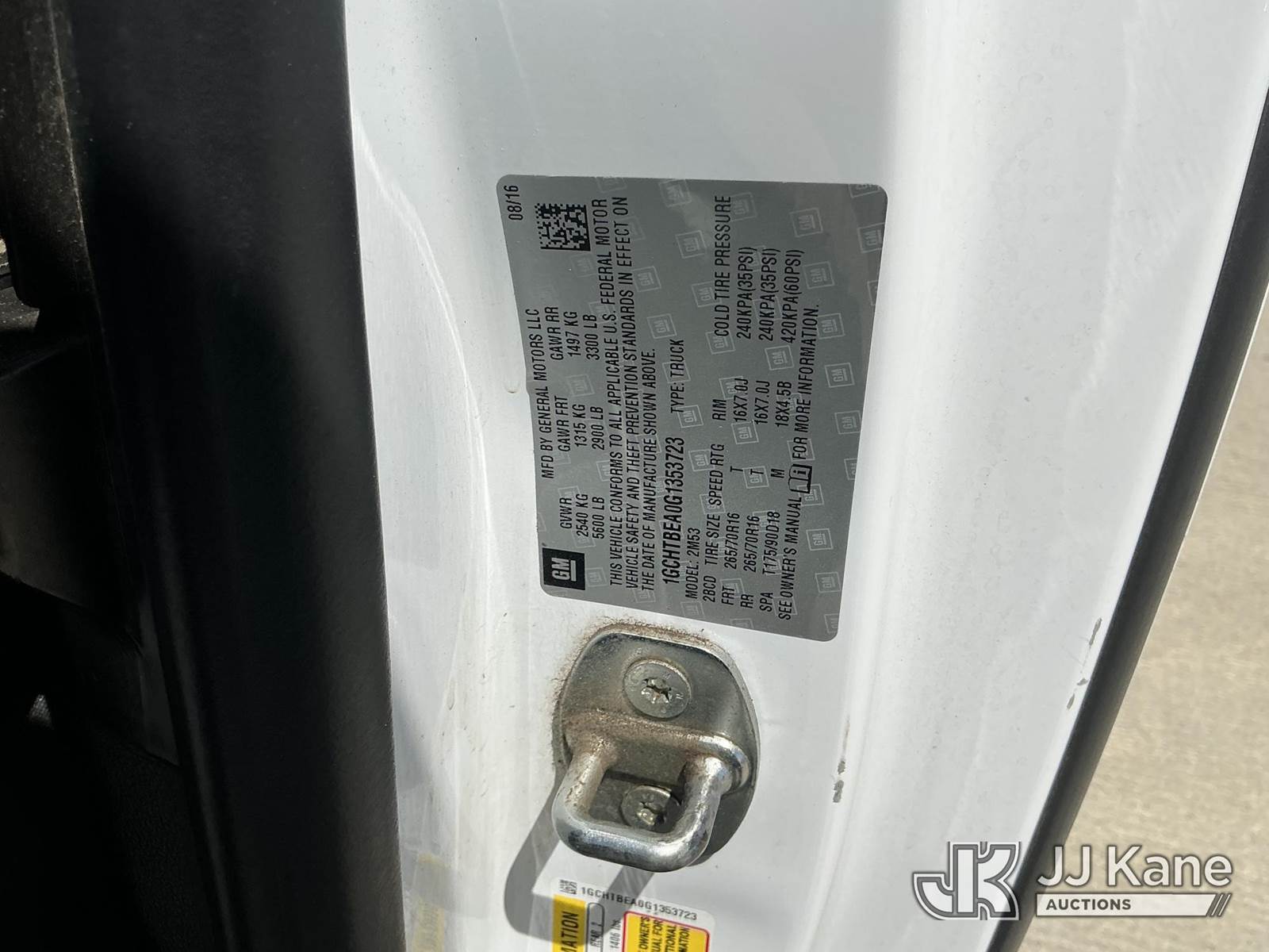 2016 Chevrolet Colorado Work Truck Ext. Cab 4WD Extended-Cab Pickup Truck, s/n 1GCHTBEA0G1353723, 2.5L L4 DOHC 16V gas, 6-Speed Automatic, A/C, (193,931 miles) (Runs & Moves)(Passenger Side Rear Bumper Damaged) This is a Titled Item NOTE: This unit is being sold AS IS/WHERE IS via Timed Auction and is located in Dixon, CA. Inspection & preview days for this unit are the 2 business days prior to the first day of items closing for this auction, item is located at 8668 Sparling Ln Dixon, CA 95620 and hours of operations are 8a-4p. For pre-sale questions, please contact JJ Kane Staff at (707) 678-8060 (dixon@jjkane.com). Dealer License Number 45696. (Buyer is responsible for removal. Assistance by consignor or JJ Kane Auctions is not assured.)