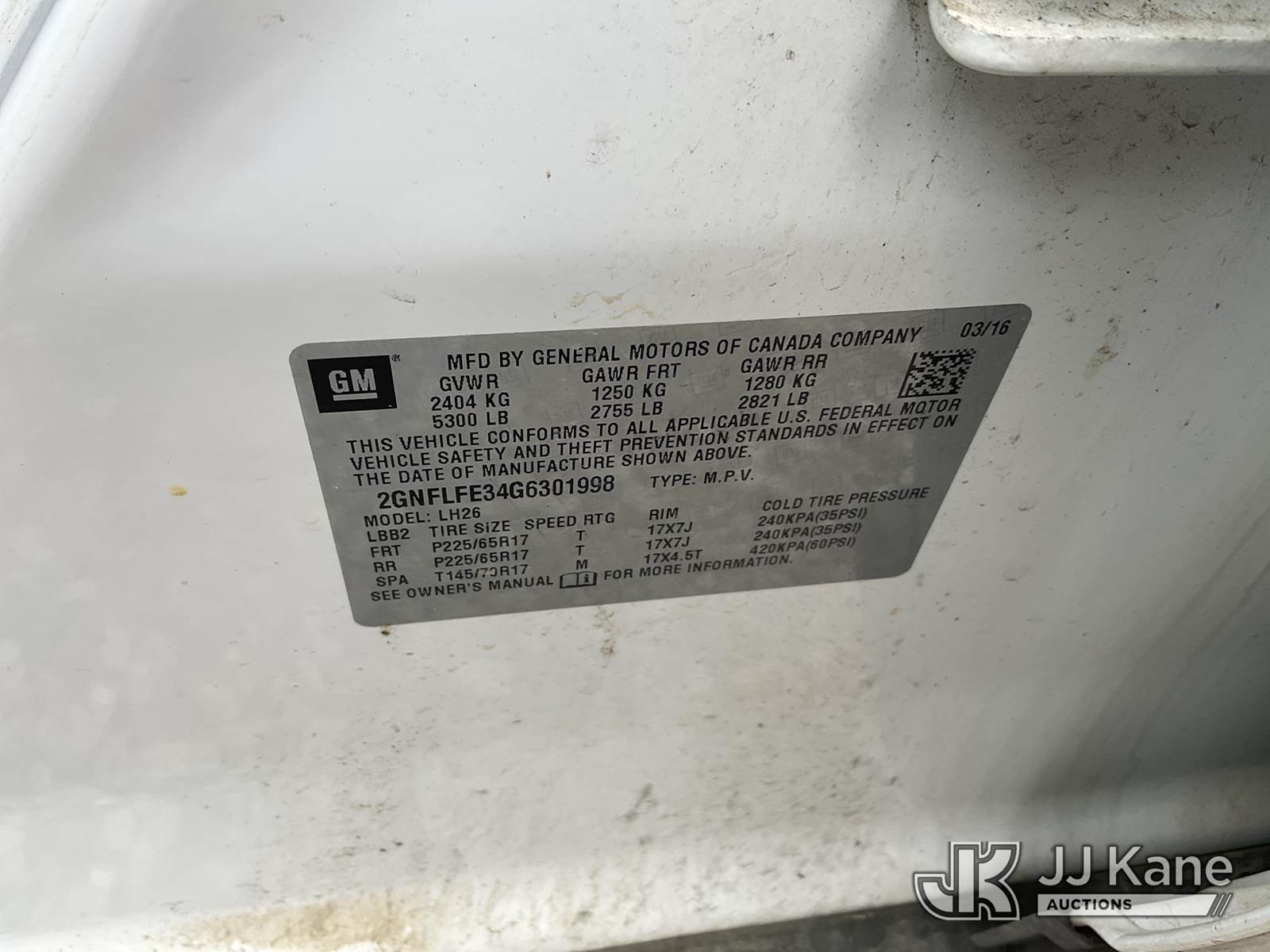 2016 Chevrolet Equinox LT AWD 4-Door Sport Utility Vehicle, 3.6L V6 DOHC 24V Gas, Auto, A/C, (130,916 miles) (Runs & Moves) This is a Titled Item NOTE: This unit is being sold AS IS/WHERE IS via Timed Auction and is located in Verona, KY. Inspection & preview days for this unit are the 2 business days prior to the first day of items closing for this auction, item is located at 2841 Verona-Mudlick Rd Ste B Verona, KY 41092 and hours of operations are 8a-4p. For pre-sale questions, please contact Office Staff @ (502) 612-5080. Auctioneer Michael Whitebread / License # 256617. (Buyer is responsible for removal. Assistance by consignor or JJ Kane Auctions is not assured.)