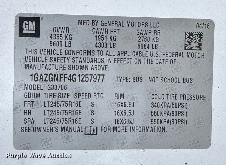 VIN: 1GAZGNFF4G1257977